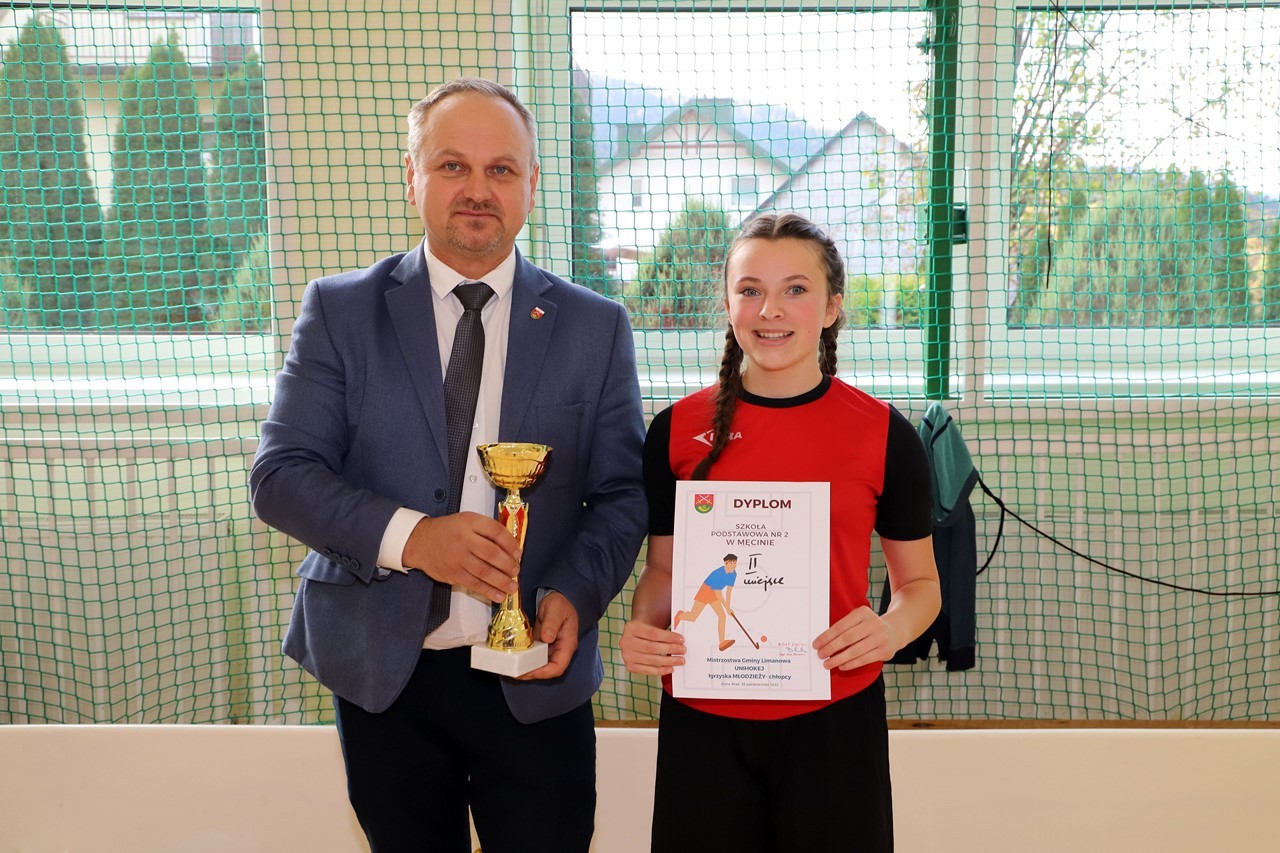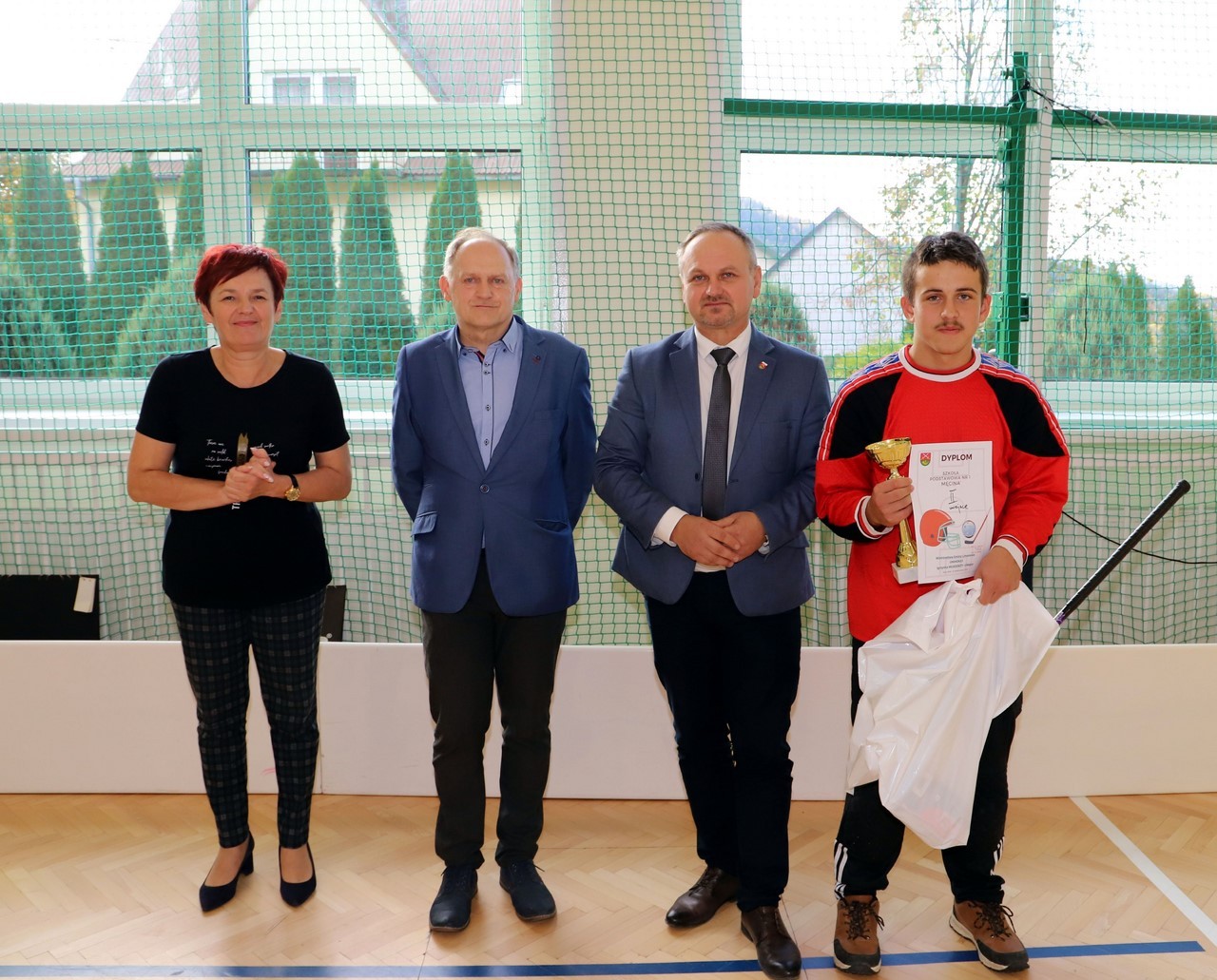 Nagrody wraz z pucharami wręczyli Wójt Gminy Limanowa Jan Skrzekut oraz dyrektor Szkoły Podstawowej nr 2 w Starej Wsi Marek Twaróg.