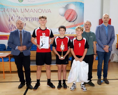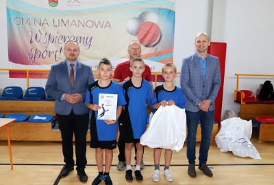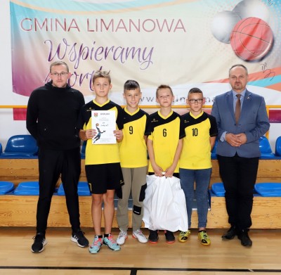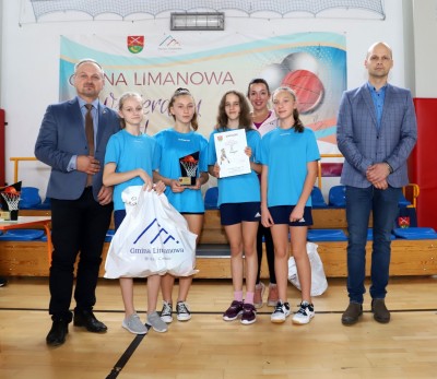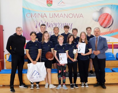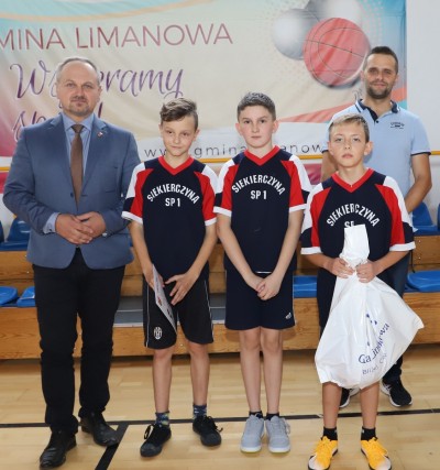 Wręczenie nagród oraz pucharów uczestnikom rozgrywek koszykarskich dokonał Wójt Gminy Limanowa Jan Skrzekut jak również Dyrektor Szkoły Podstawowej w Pasierbcu Zbigniew Król.