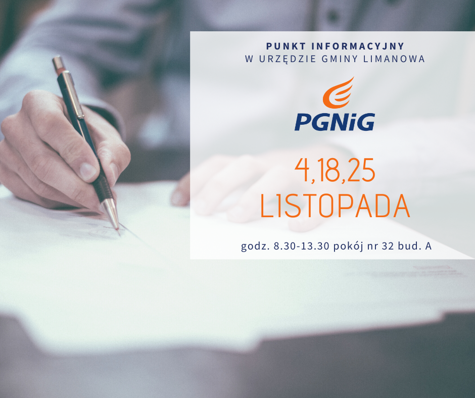 Od listopada 2021 r. doradca PGNiG przyjmuje interesantów w Urzędzie Gminy Limanowa w pokoju 32 w budynku A - jest to pomieszczenie sąsiadujące z oddziałem Banku Spółdzielczego. Do budynku A można wejść również bezpośrednio z ulicy Matki Boskiej Bolesnej.