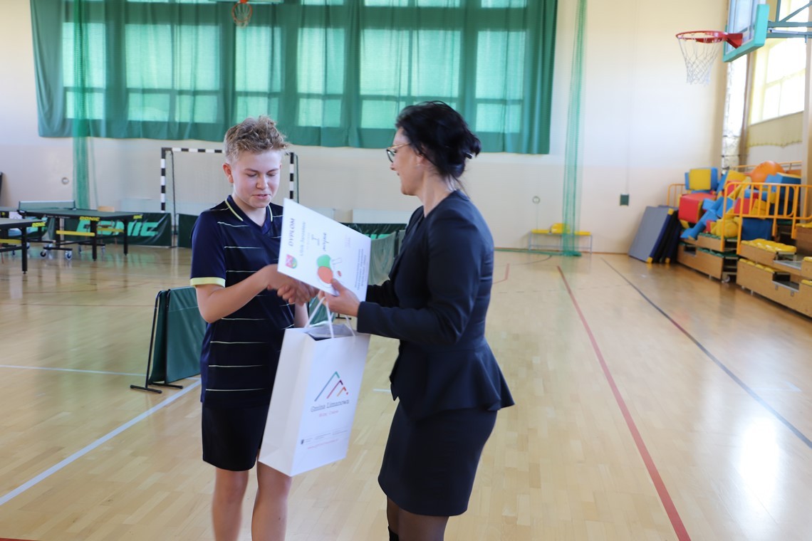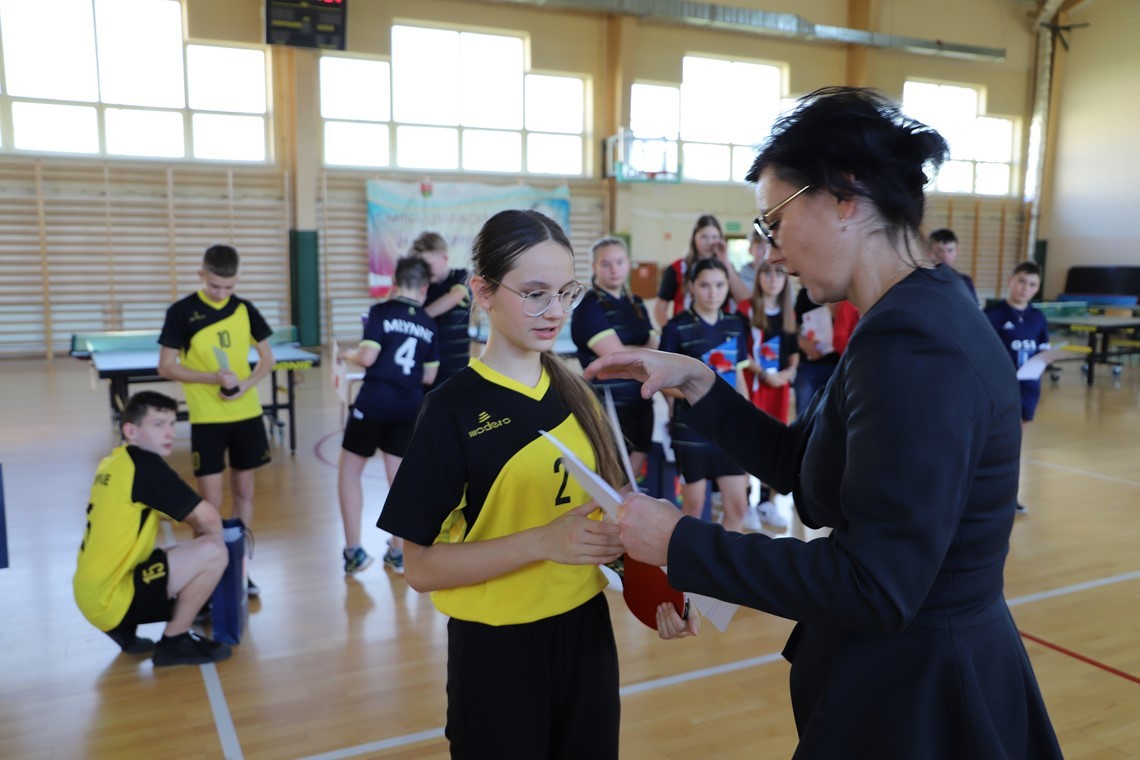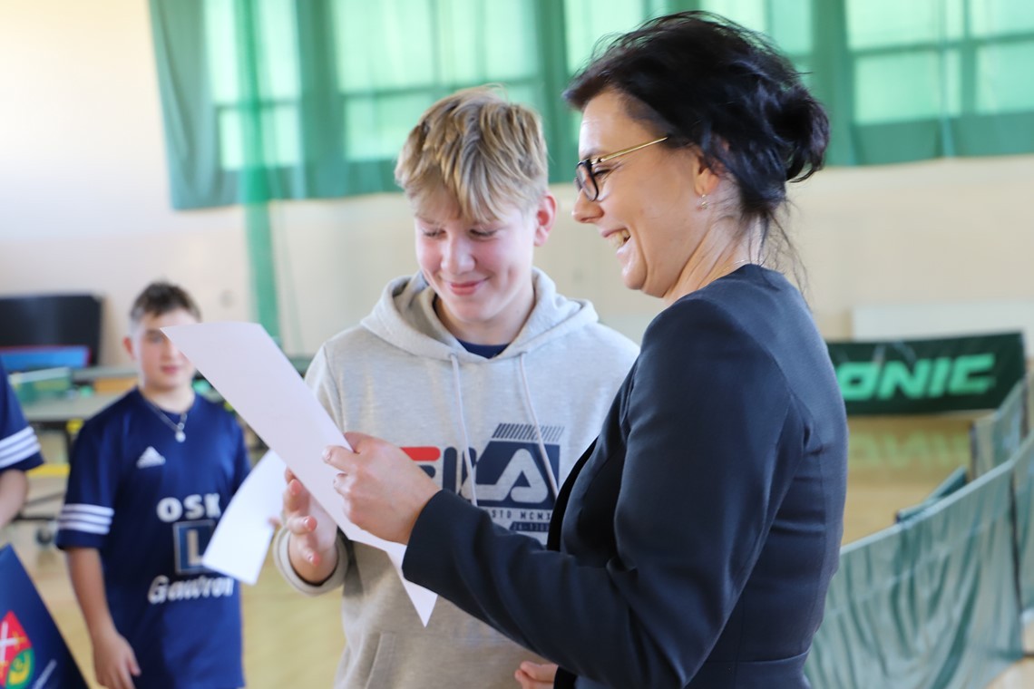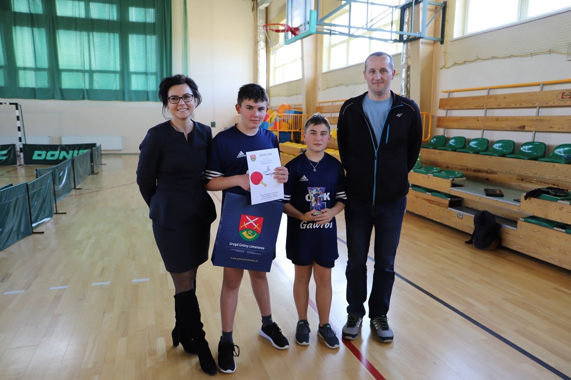Wręczenie nagród oraz pucharów uczestnikom rozgrywek w tenisie stołowym dokonała Dyrektor Gminnego Zespołu Obsługi Szkół Edyta Król oraz Dyrektor Szkoły Podstawowej w Rupniowie Robert Piwowarczyk. Nagrody otrzymali również najlepsi zawodnicy w rozgrywkach indywidualnych.