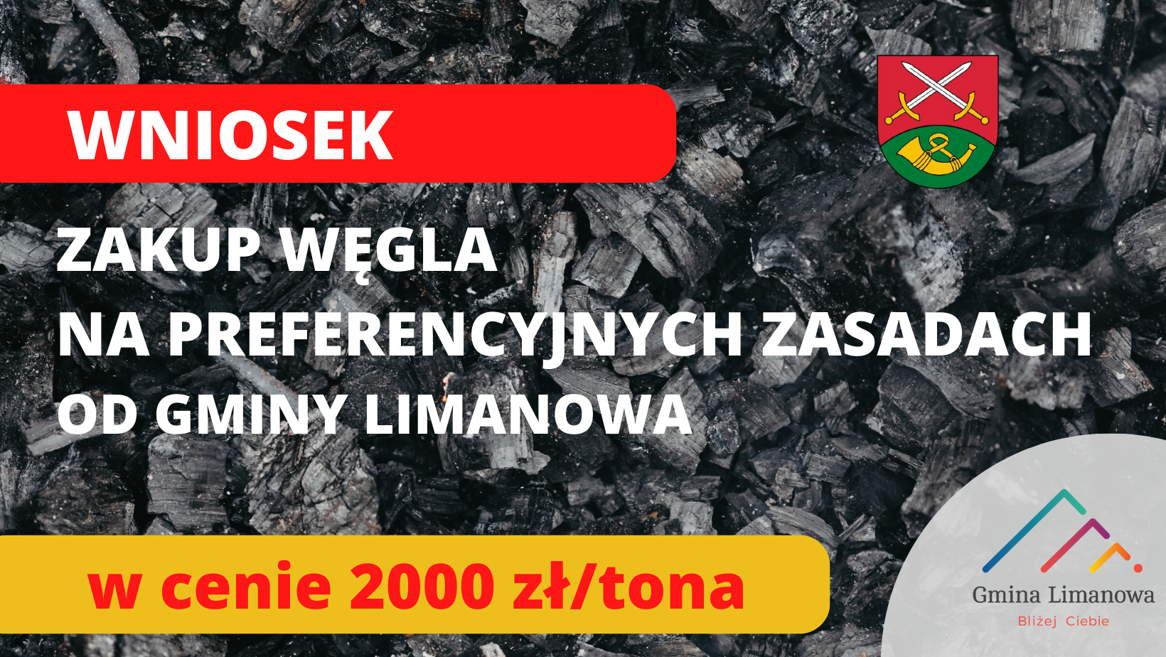 - Jeśli wniosek zostanie zweryfikowany pomyślnie, osoba z Urzędu skontaktuje się z wnioskodawcą na numer telefonu podany we wniosku, celem potwierdzenia i podania sposobu płatności za węgiel. Wnioskodawca zostanie poproszony o uiszczenie zapłaty za węgiel (2000 zł/tonę) na konto Gminy Limanowa numer: 40880400000000000007230053, a w tytule przelewu koniecznie należy wpisać: WĘGIEL - imię i nazwisko wnioskodawcy wraz z adresem gospodarstwa domowego, na który jest złożony wniosek. Numer konta bankowego będzie podany również na stronie internetowej Gminy: www.gminalimanowa.pl.