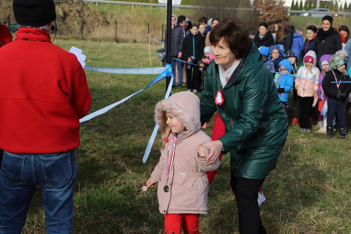 Najmłodszą zawodniczką XXIV Biegu Niepodległości była Wiktoria Domiter , a najmłodszym zawodnikiem Dominik Janór, którzy otrzymali pamiątkowe puchary z rąk fundatora - Dyrektor Bożeny Golonka.