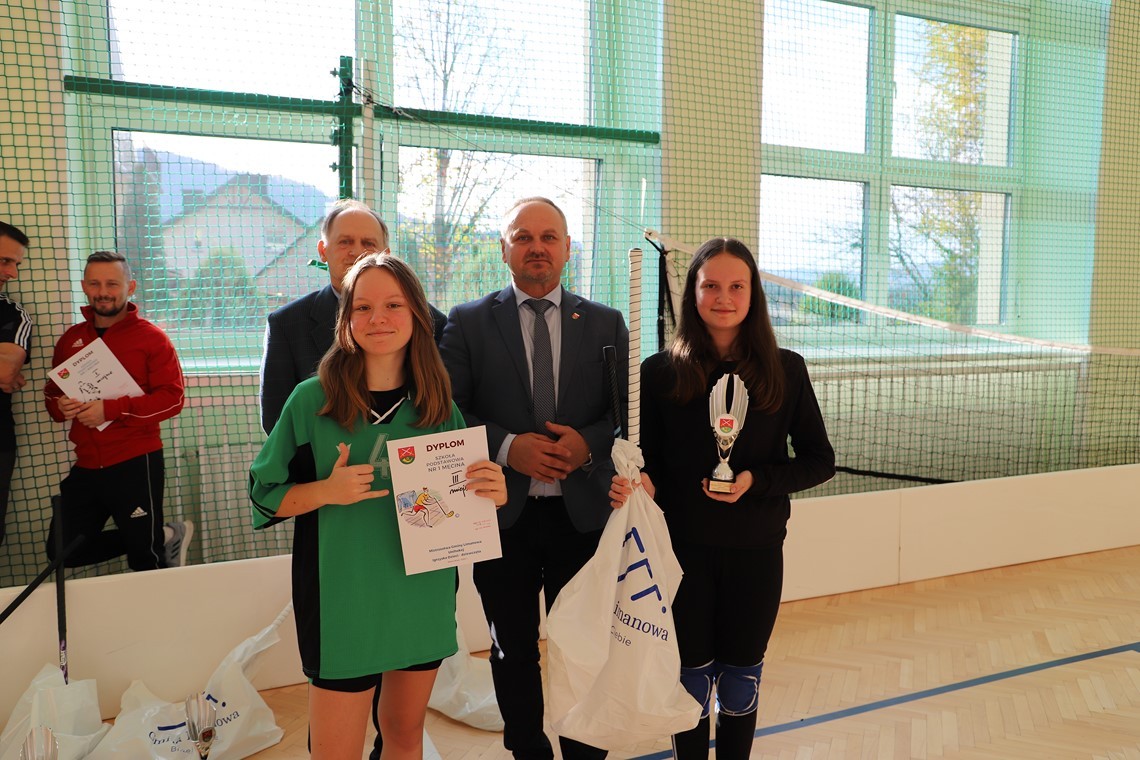 Nagrody wraz z pucharami wręczyli Wójt Gminy Limanowa Jan Skrzekut oraz dyrektor Szkoły Podstawowej nr 2 w Starej Wsi Marek Twaróg.
