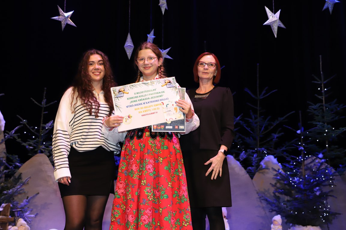 I miejsce: Amelia Flig „Mario, czy ty wiesz...” Szkoła podstawowa im. Tadeusza Kościuszki w Łętowem. II miejsce: Nikola Papież „Najpiękniejsza nocka” Szkoła Podstawowa im. Ks. Józefa Górszczyka w Pisarzowej. III miejsce: 15.55. Julia pazdur „Gdy śliczna panna” Zespół Szkolno-Przedszkolny w Jodłowniku. Wyróżnienie: Zuzanna Gacek „A kiedy wigilii przyjdie czas” Szkoła Podstawowa im.ks. Piotra Skargi w Warzycach. Wyróżnienie: Jagoda Król „Gore gwiazda jezusowi” Szkoła Podstawowa nr 2 w Siekierczynie.