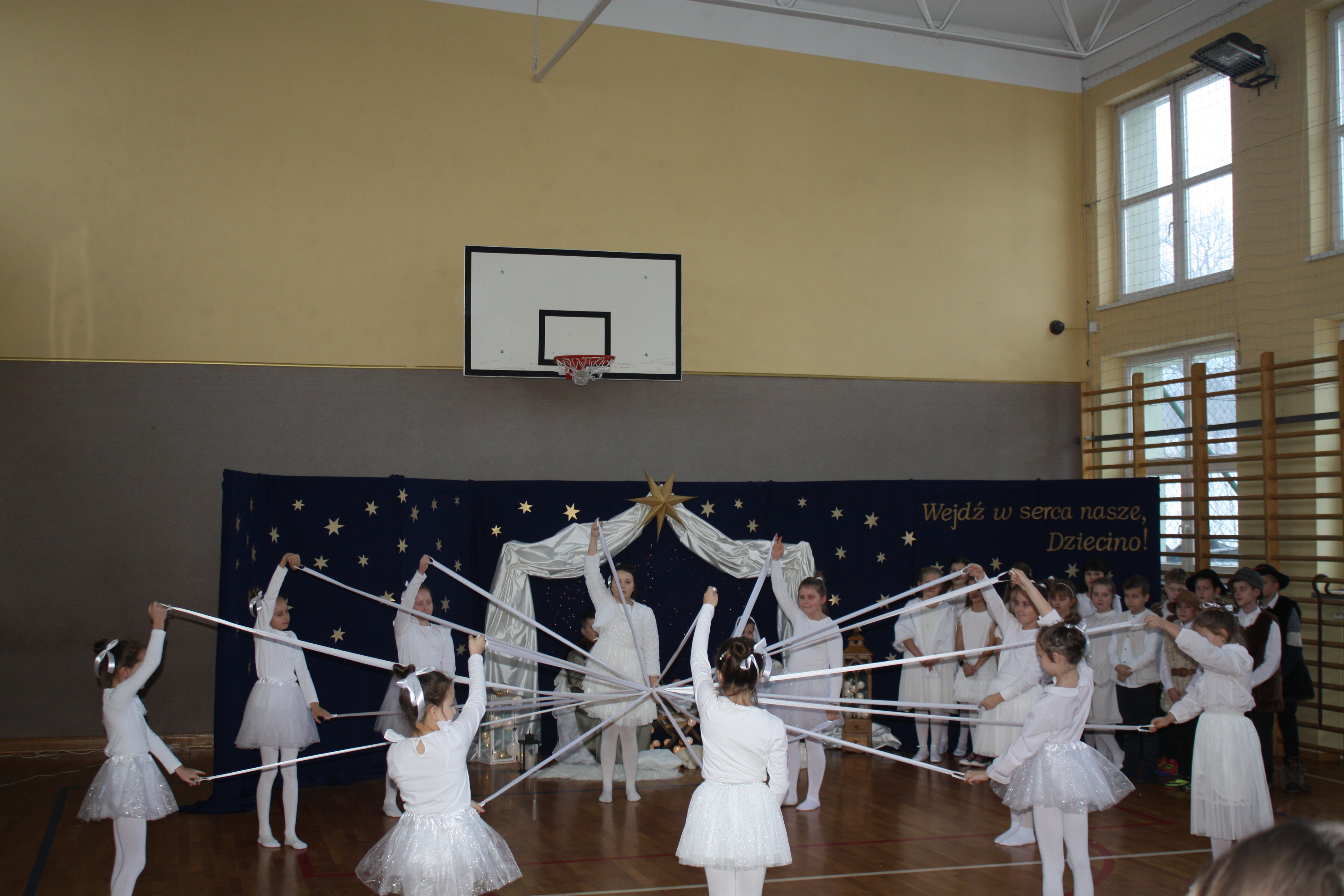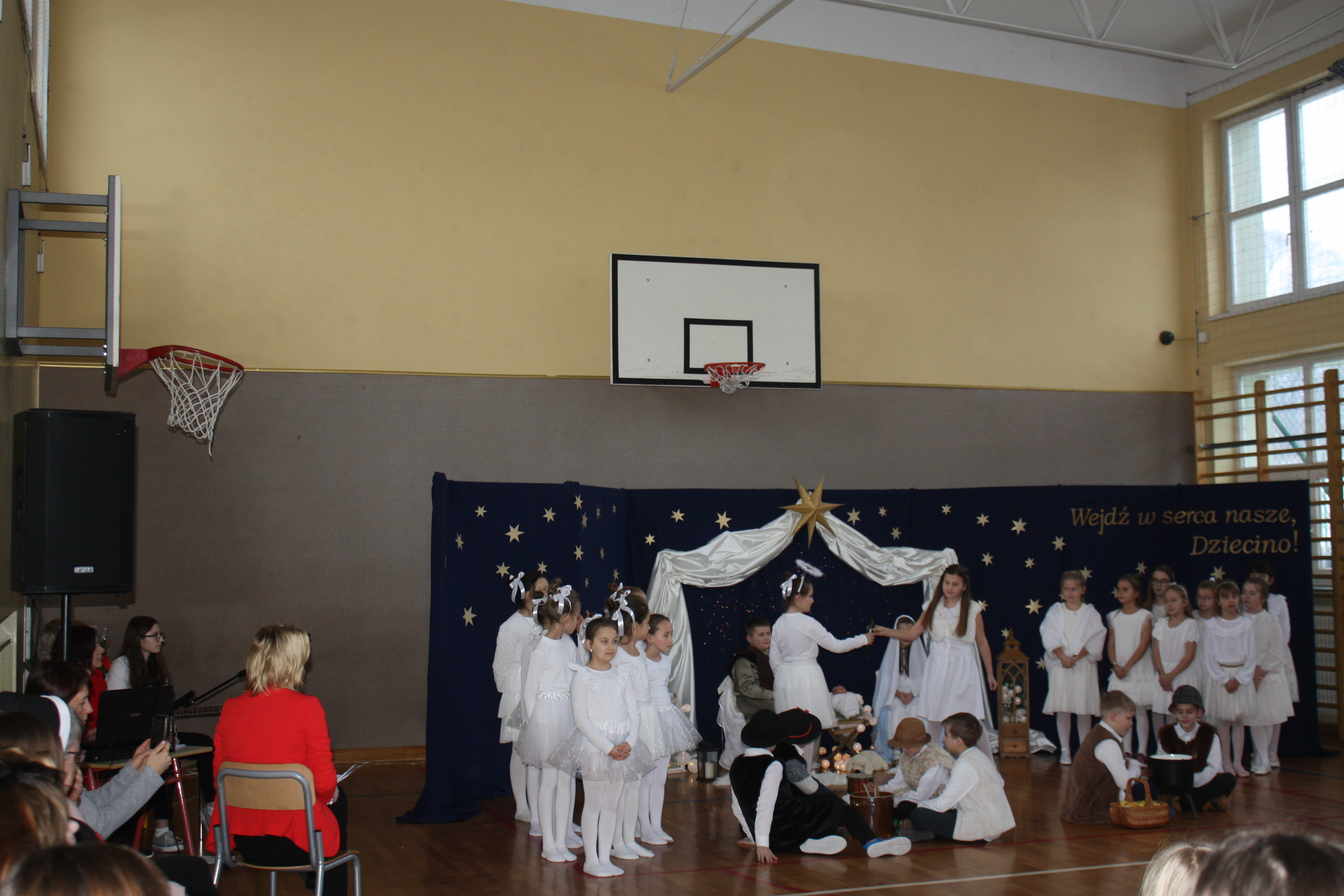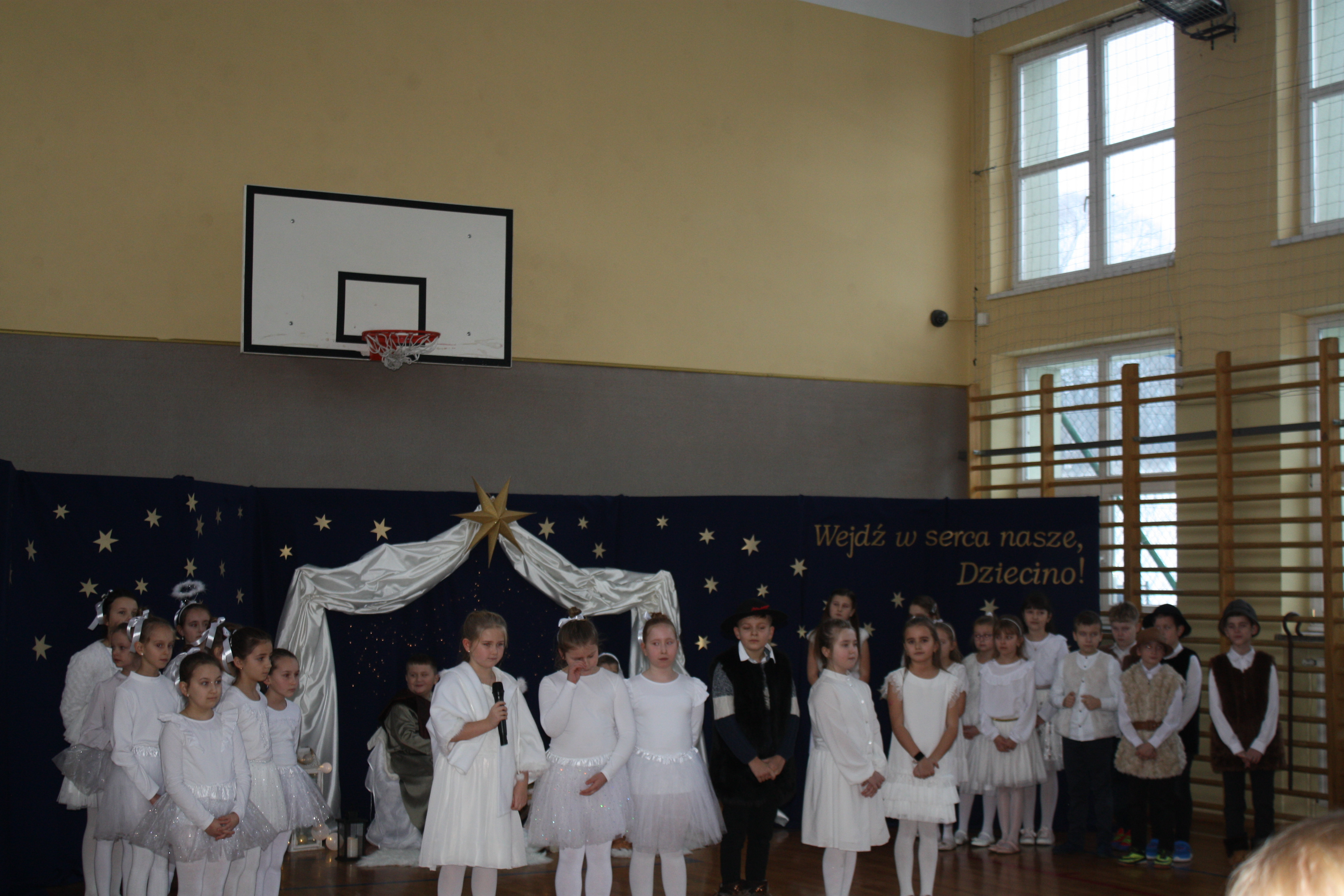Ponadto uczniowie klas trzecich uświetnili ten dzień, prezentując przedstawienie o tematyce nawiązującej do historii związanej z przyjściem na świat Zbawiciela. Aktorski kunszt młodych wychowanków, piękny śpiew kolęd i pastorałek przy wtórze melodii przygrywanych przez uczniów klas ósmych: Alicję, Oliwię, Wiktorię, Emilię, Ewelinę, Seweryna, Jana i Szymona pozwolił przenieść się widzom w czasy narodzenia Bożej Dzieciny, przypominając istotę Jego przyjścia na świat.