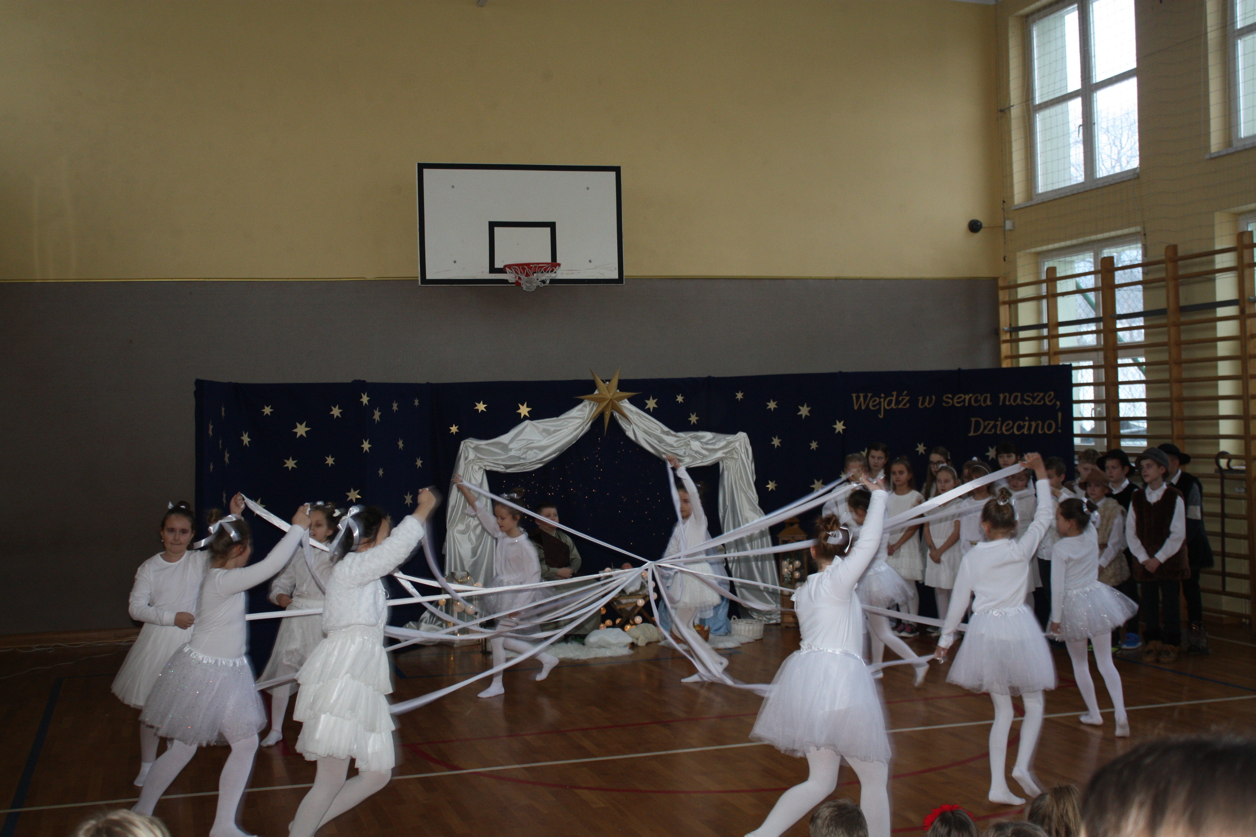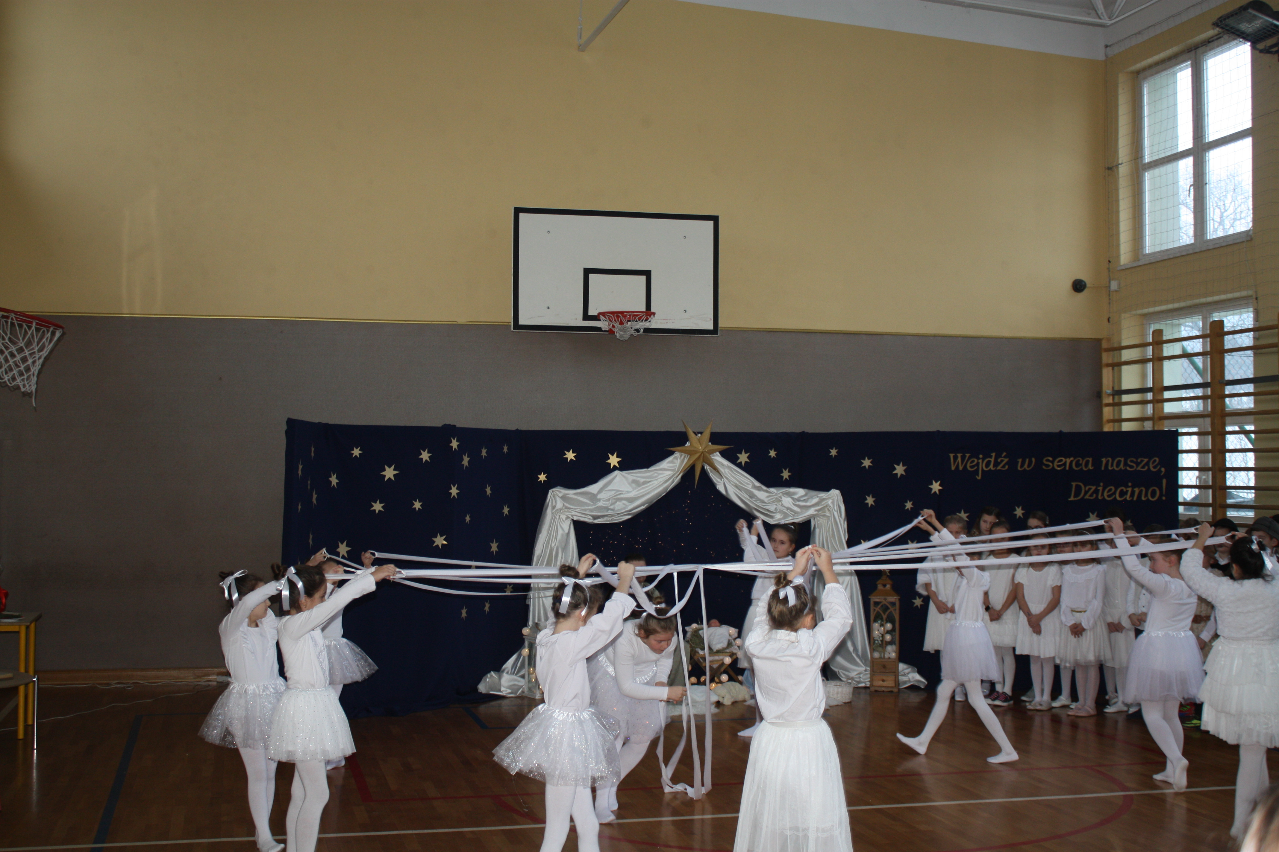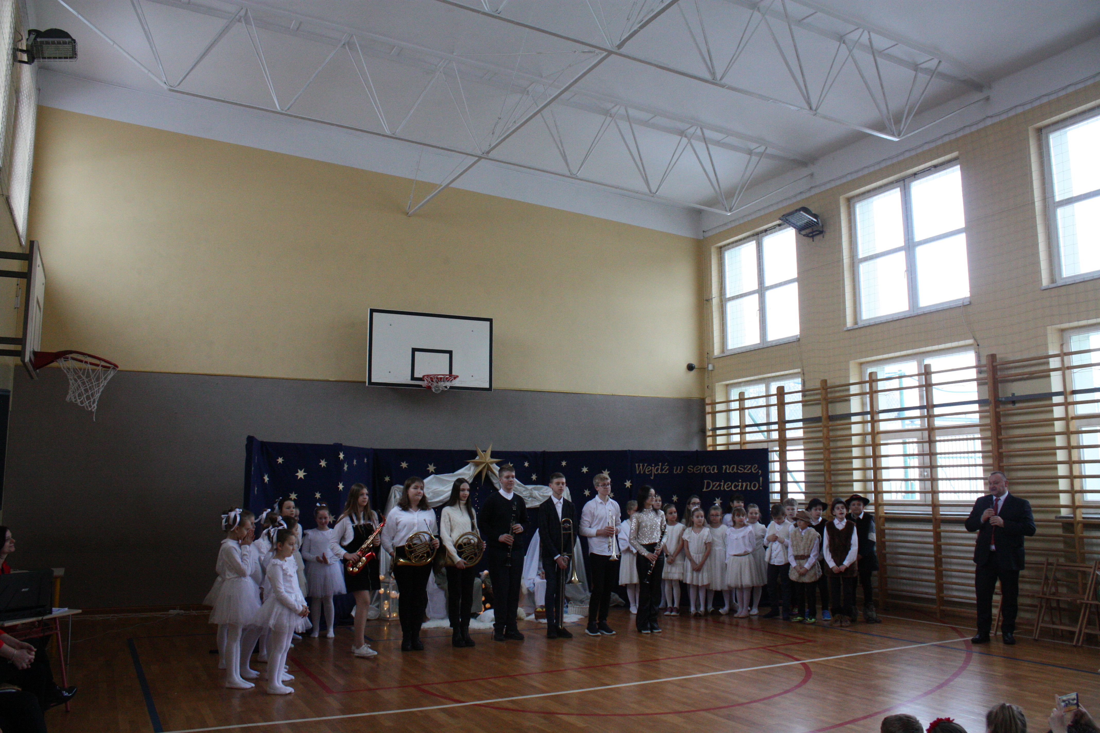 Ponadto uczniowie klas trzecich uświetnili ten dzień, prezentując przedstawienie o tematyce nawiązującej do historii związanej z przyjściem na świat Zbawiciela. Aktorski kunszt młodych wychowanków, piękny śpiew kolęd i pastorałek przy wtórze melodii przygrywanych przez uczniów klas ósmych: Alicję, Oliwię, Wiktorię, Emilię, Ewelinę, Seweryna, Jana i Szymona pozwolił przenieść się widzom w czasy narodzenia Bożej Dzieciny, przypominając istotę Jego przyjścia na świat.