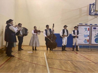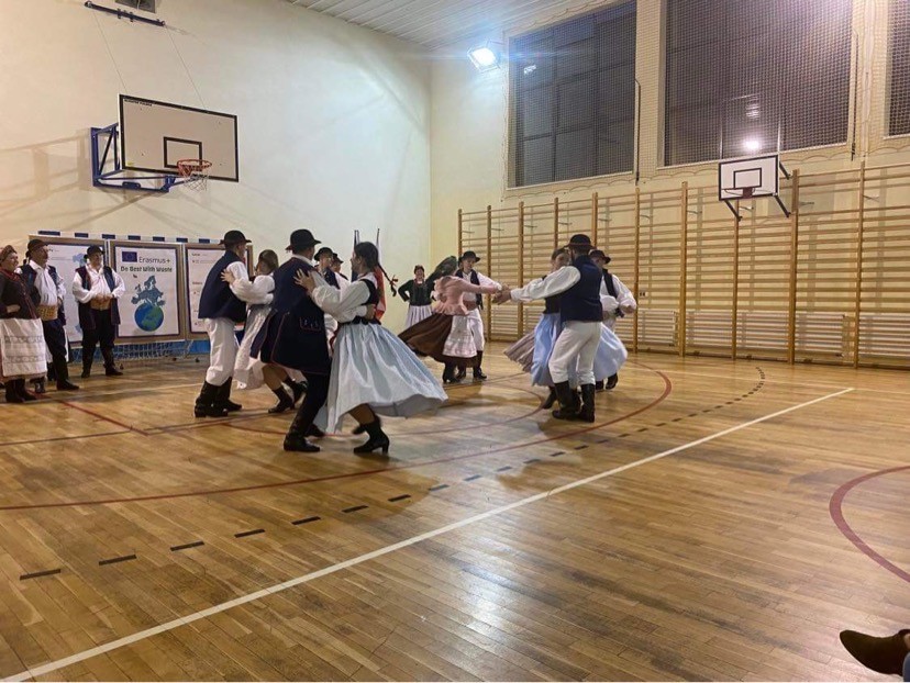 Przed kolacją ufundowaną dla naszych gości przez rodziców dzieci, które były w partnerskich szkołach, wystąpił zespół Starowiejski HYR pod kierownictwem Agnieszki Pławeckiej.
