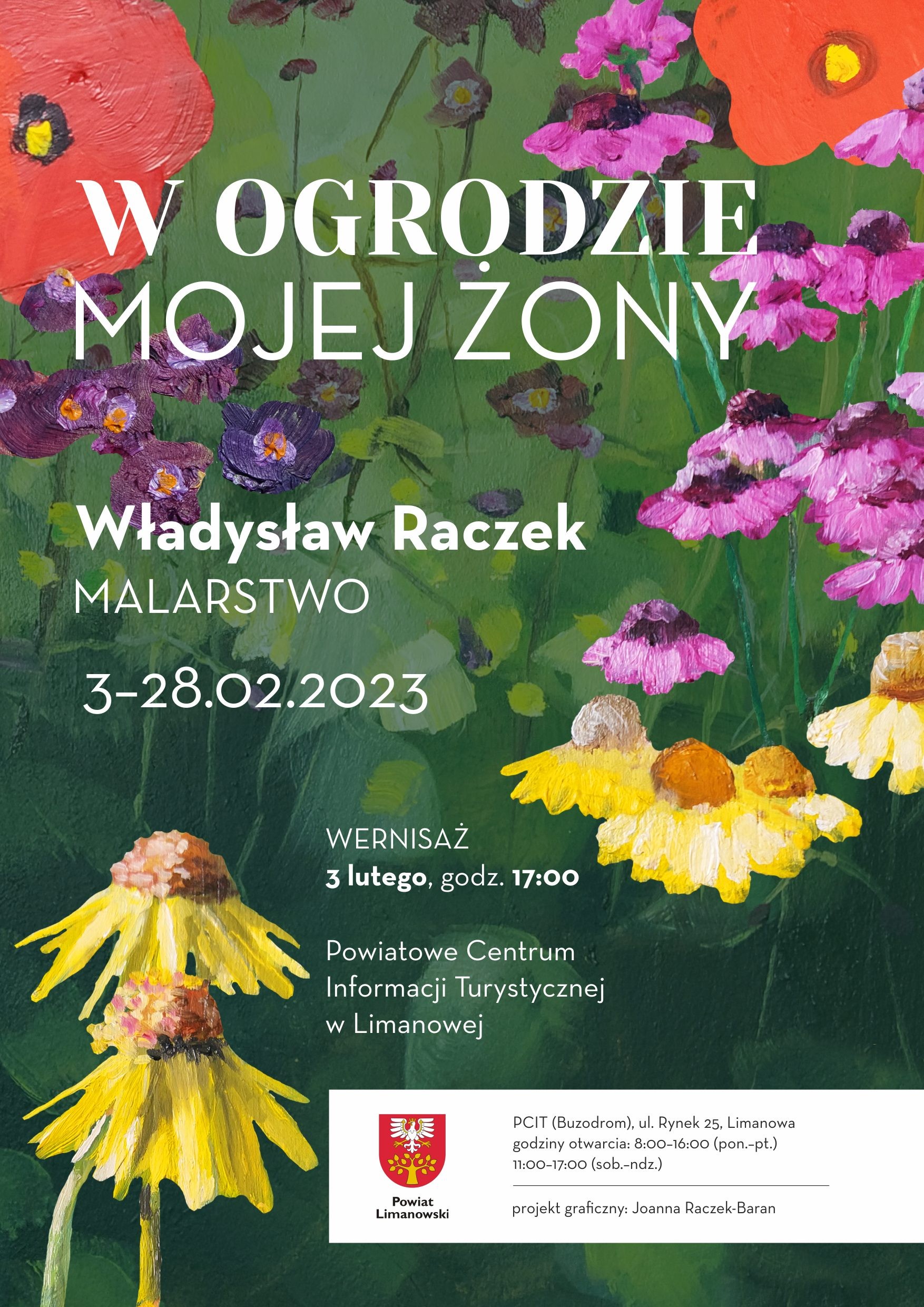 Wystawa prac Władysława Raczka „W ogrodzie mojej żony” będzie dostępna do zwiedzania w mini galerii Powiatowego Centrum Informacji Turystycznej w Limanowej (Rynek 25) od 3 do 28 lutego 2023 r. Zapraszamy!