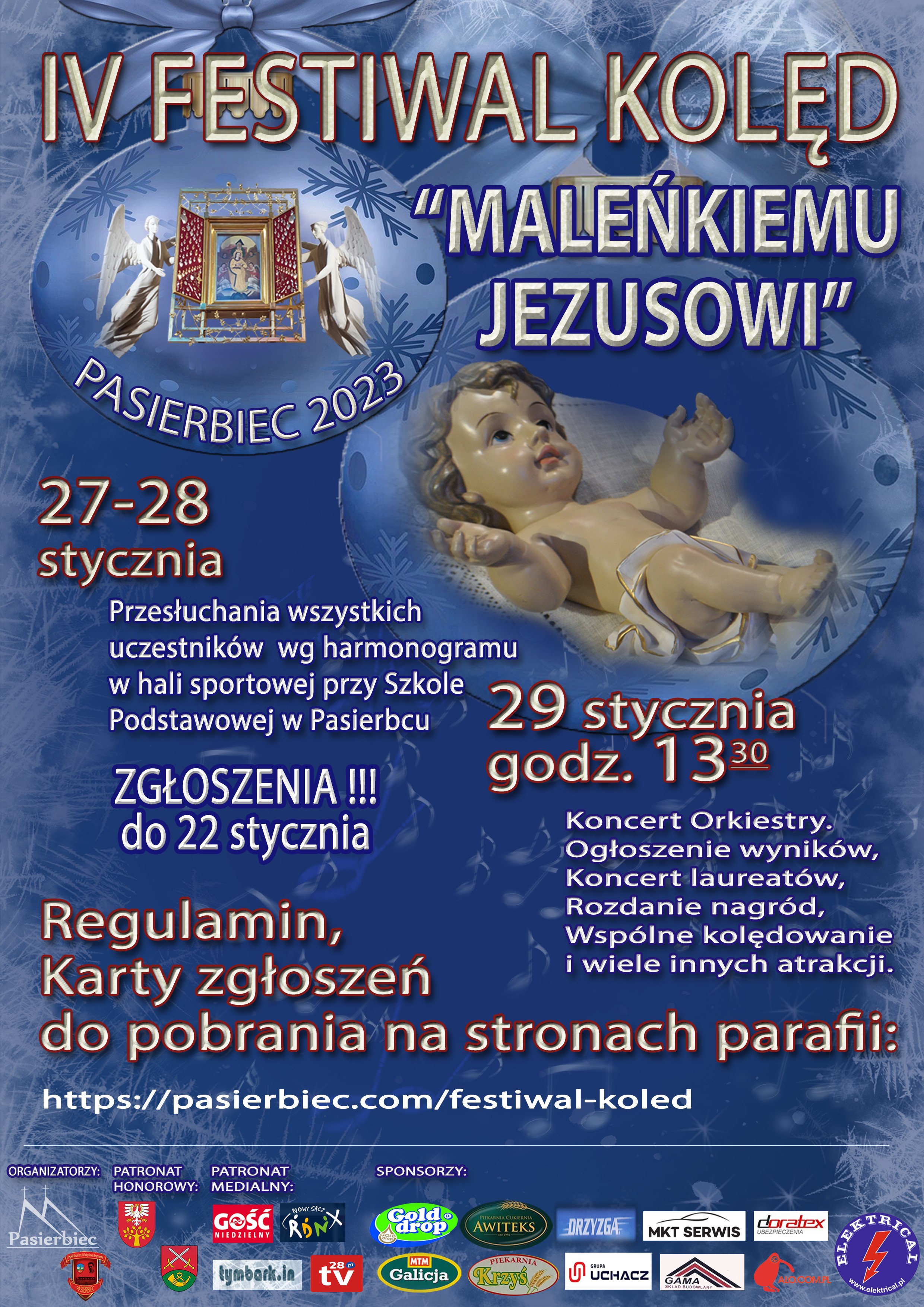 - Zgłoszenia są do pobrania ze strony internetowej Parafii Pasierbiec http://pasierbiec.com zakładki Festiwal Kolęd.