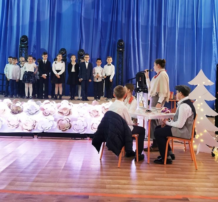 W przygotowanie programu artystycznego dla Gości oraz organizację tego szczególnego dnia zaangażowani byli uczniowie wszystkich klas oraz oddziałów przedszkolnych. Przedszkolaki oraz uczniowie klas młodszych pięknie tańczyli, śpiewali piosenki i recytowali wiersze. Był także czas na wspólne kolędowanie przy akompaniamencie szkolnej kapeli oraz krótki koncert uczniów szkoły muzycznej.