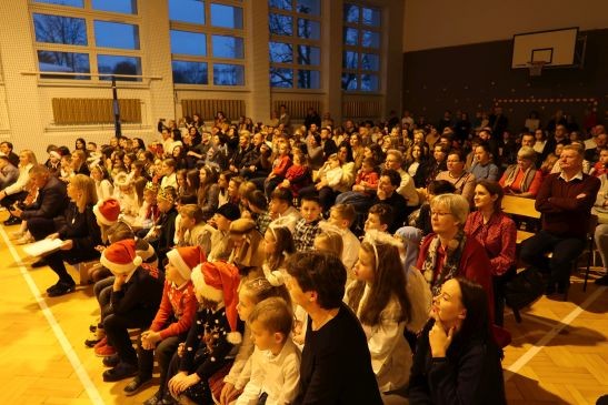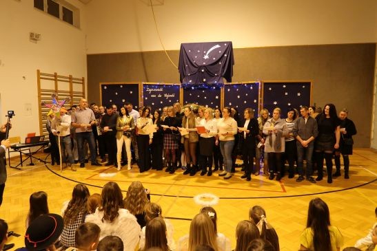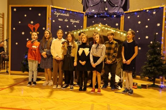 Niezwykły nastrój udzielił się wszystkim zebranym, dlatego bez tremy kolejno na scenie prezentowali się uczniowie poszczególnych klas oraz dzieci z oddziałów przedszkolnych, śpiewając najpiękniejsze polskie kolędy i pastorałki, zachęcając publiczność do wspólnego kolędowania. Nie zabrakło również występu nauczycieli i pracowników obsługi oraz rodziców.