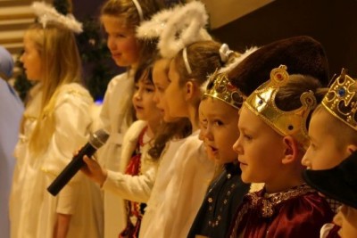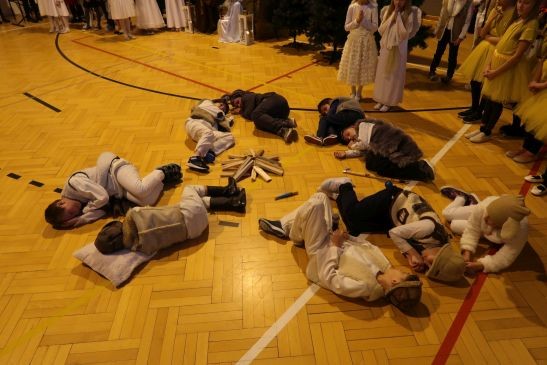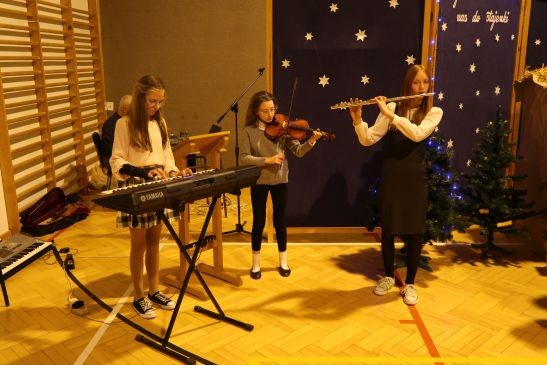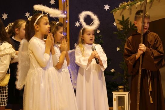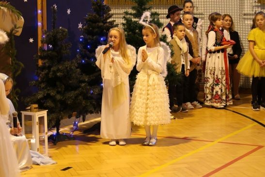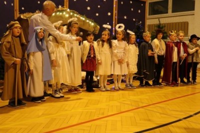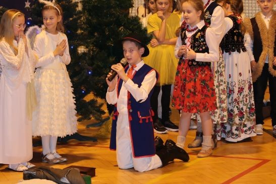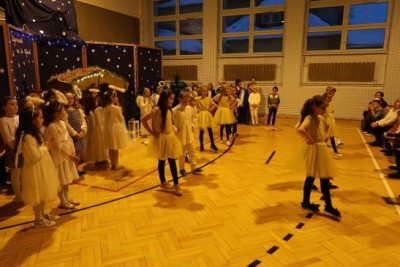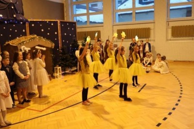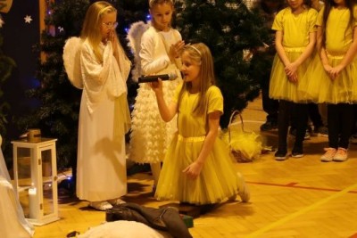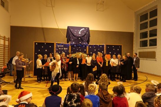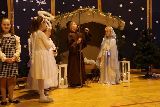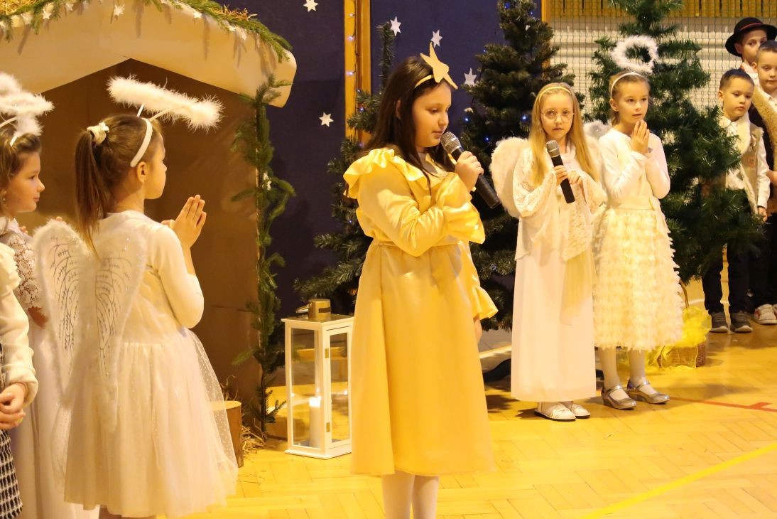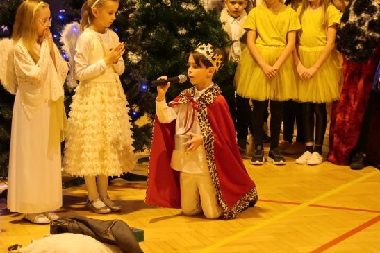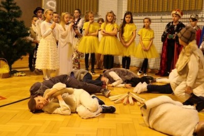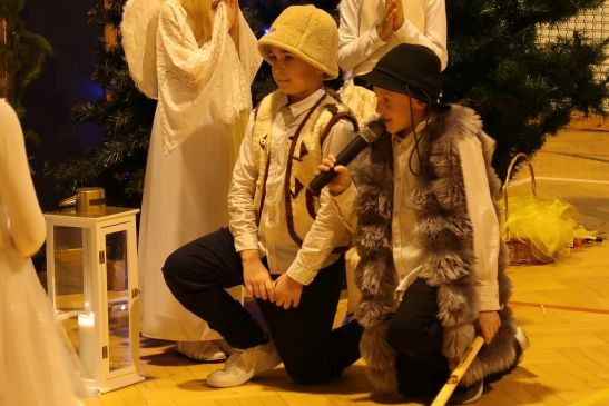 Ten niepowtarzalny koncert poprzedzony był przedstawieniem jasełkowym w wykonaniu uczniów klas 2a, 2b i 3. Uboga stajenka ze Świętą Rodziną i wędrujący do niej pastuszkowie, trzej królowie, dzieci, aniołowie i roztańczone gwiazdki z nieba obudziły prawdziwą magię świąt.