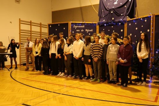 Święta Bożego Narodzenia to wyjątkowy czas w roku przepełniony ciepłem, radością i miłością, to także okazja do wspólnego przebywania ze sobą. W tym właśnie niezwykłym czasie 21 grudnia w zimowe mroźne popołudnie uczniowie naszej szkoły, nauczyciele, pracownicy obsługi oraz rodzice zebrali się na koncercie kolęd, pastorałek.