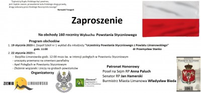 Zaproszenie na Rocznicowe Obchody Wybuchu Powstania Styczniowego