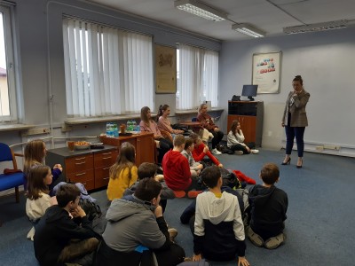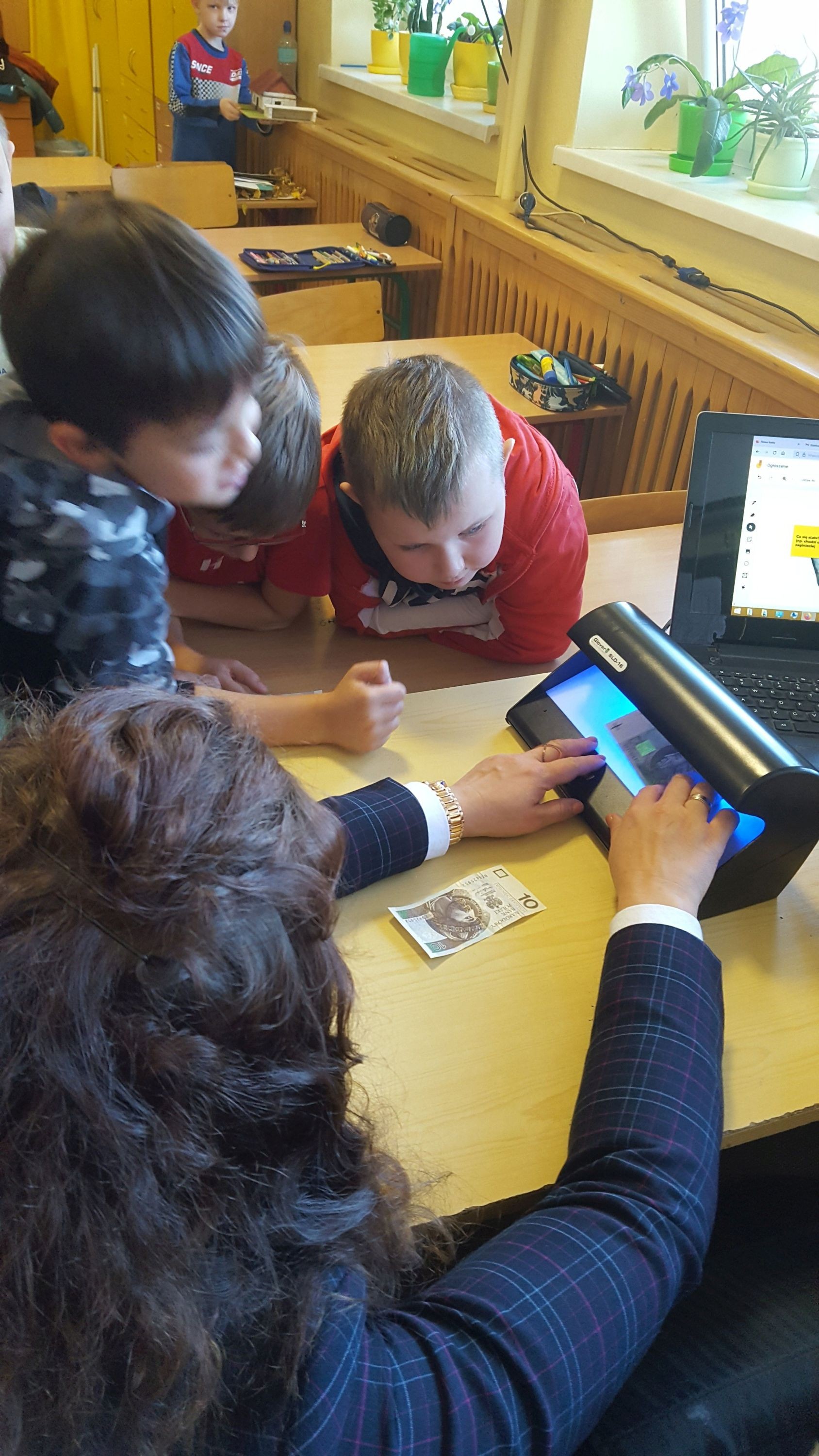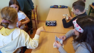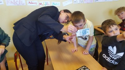 W kolejnej lekcji o finansach wzięli udział uczniowie klasy Vb. Ta lekcja odbyła się w Oddziale nr 1 banku PKO BP w Limanowej. Podczas wizyty uczniowie dowiedzieli się, jak funkcjonują banki, poszerzyli swoją wiedzę na temat pieniądza, zabezpieczeń na banknotach i co oznaczają skróty m.in. ROR czy NRB. Uczestnicy wycieczki zadawali wiele pytań pracownikowi banku, aby rozwiać swoje wątpliwości lub poszerzyć swoją wiedzę. Na końcu zajęć uczniowie mogli sprawdzić się z ekonomii rozwiązując krzyżówkę i wykonując obliczenia. Najlepsi zostali nagrodzeni, ale każdy uczestnik otrzymał upominek i słodki poczęstunek.