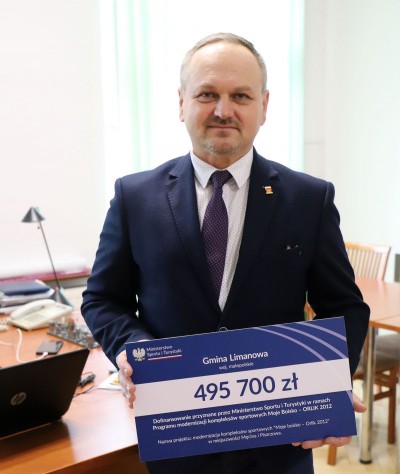 20 stycznia w limanowskim biurze poselskim wiceministra Andrzeja Guta-Mostowego samorządowcy z Limanowszczyzny odebrali promesy na inwestycje w zakresie modernizacji obiektów sportowych. Promesy dla Gminy Limanowa odebrał Jan Skrzekut Wójt Gminy Limanowa.