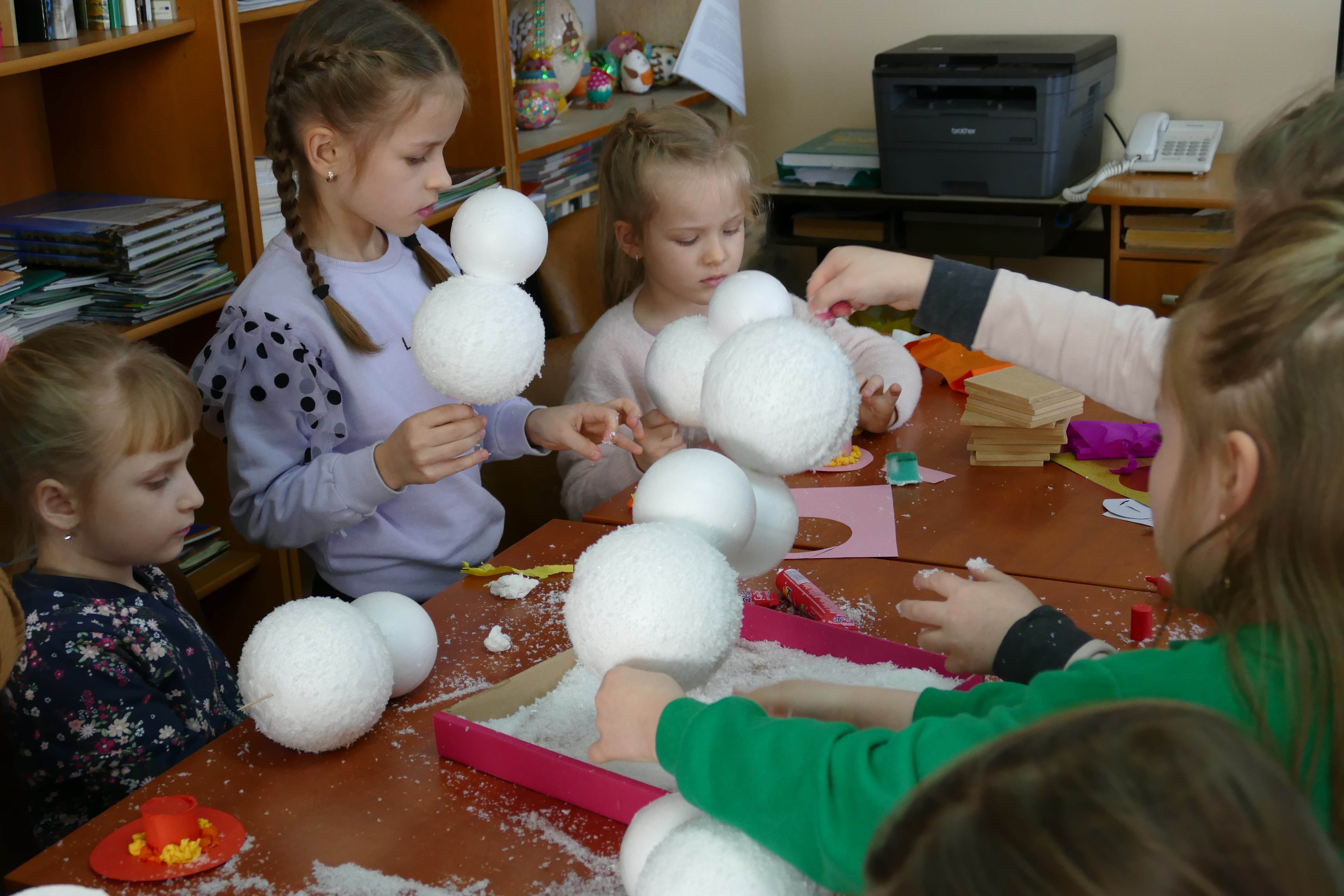 Nożyczki, styropianowe kule, sztuczny śnieg, wstążki, papier kolorowy i mnóstwo radości – to idealny przepis na zimowe warsztaty. Najmłodsi czytelnicy biblioteki w Rupniowie