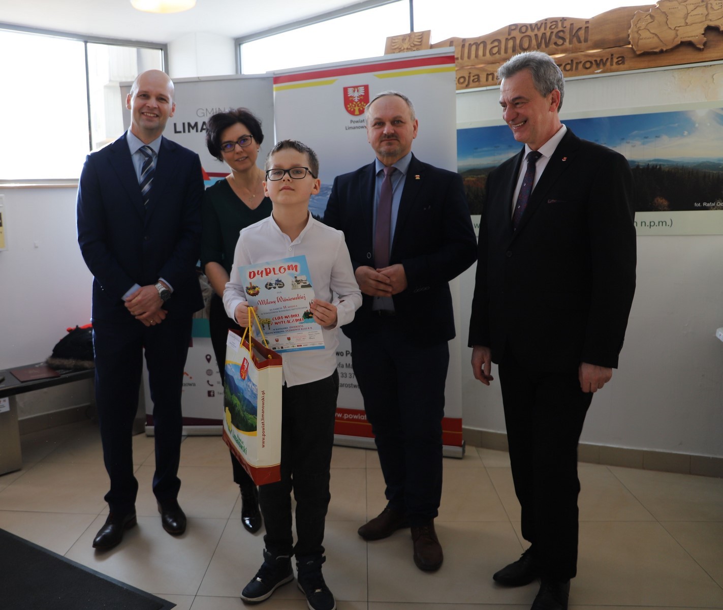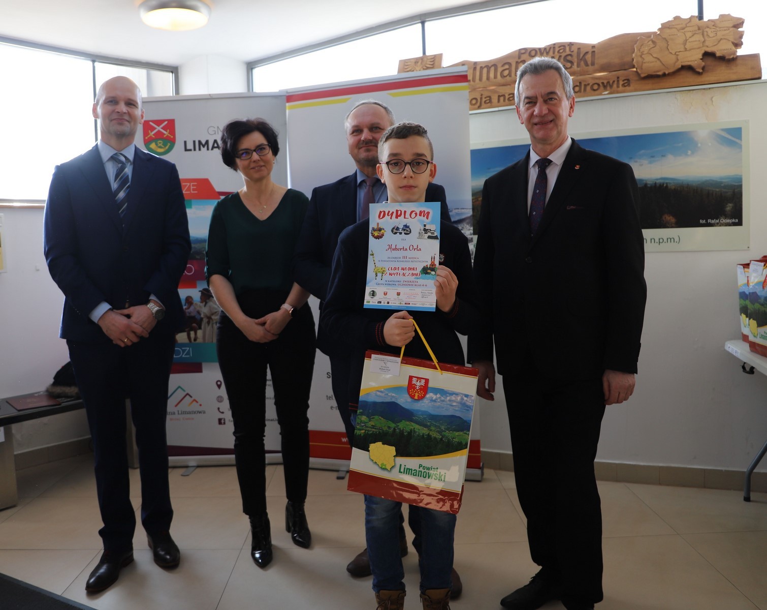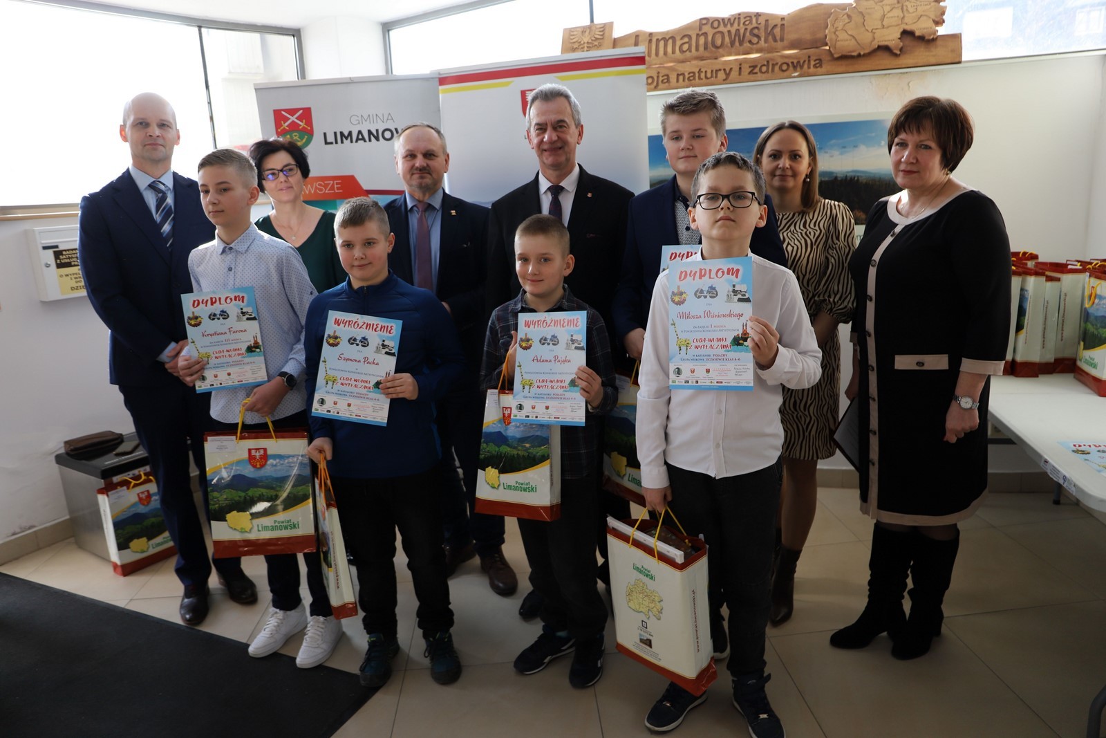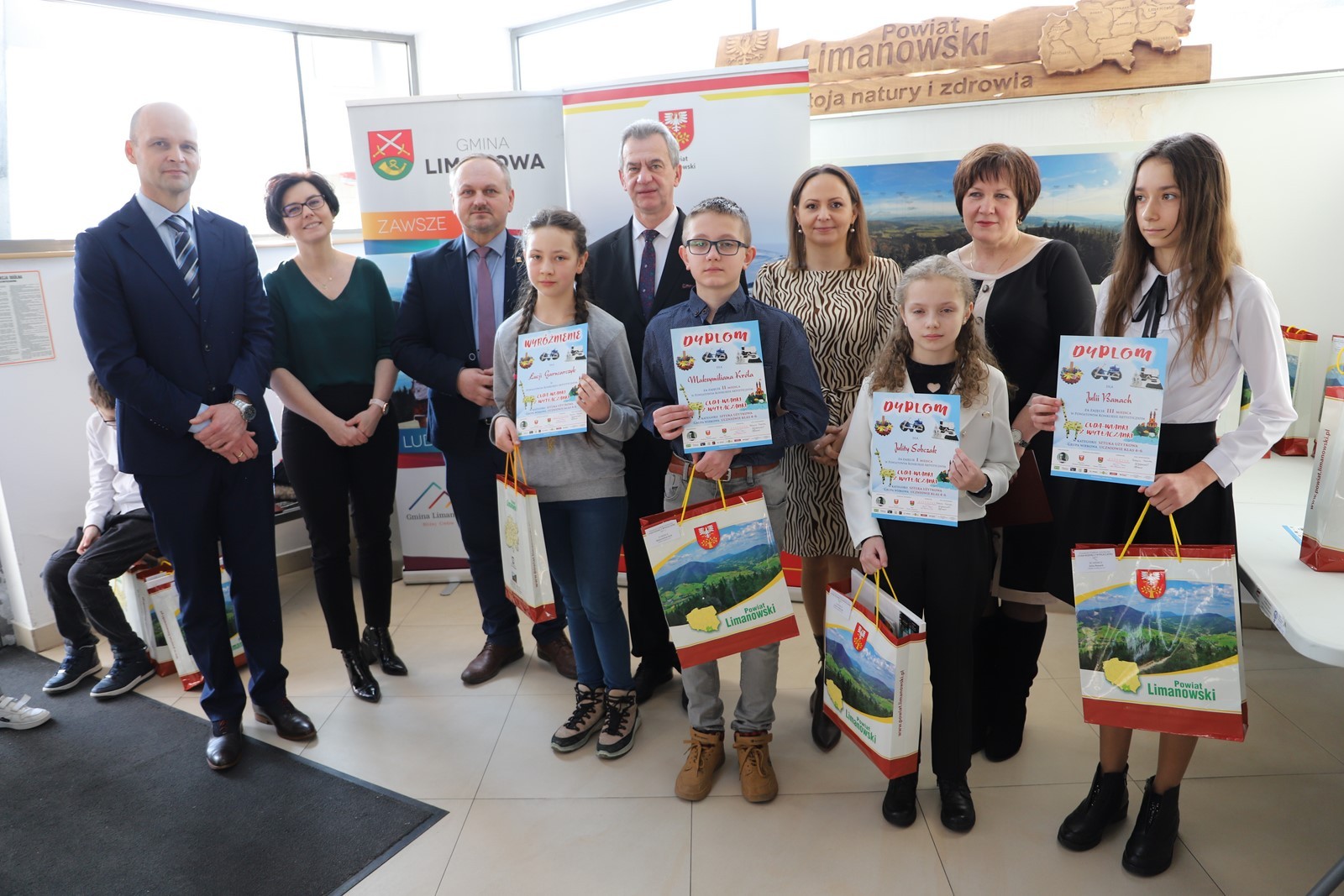 Podczas uroczystego rozstrzygnięcia konkursu w Powiatowym Centrum Informacji Turystycznej w Limanowej obecni byli: Mieczysław Uryga – Starosta Limanowski, Jan Skrzekut – Wójt Gminy Limanowa, Edyta Król – Dyrektor Gminnego Zespołu Obsługi Szkół, Wojciech Korabik - Kierownik Wydziału Kultury i Promocji Gminy Limanowa oraz Mateusz Pietrzak – Kierownik Biura Promocji, Kultury i Turystyki Powiatu Limanowskiego.