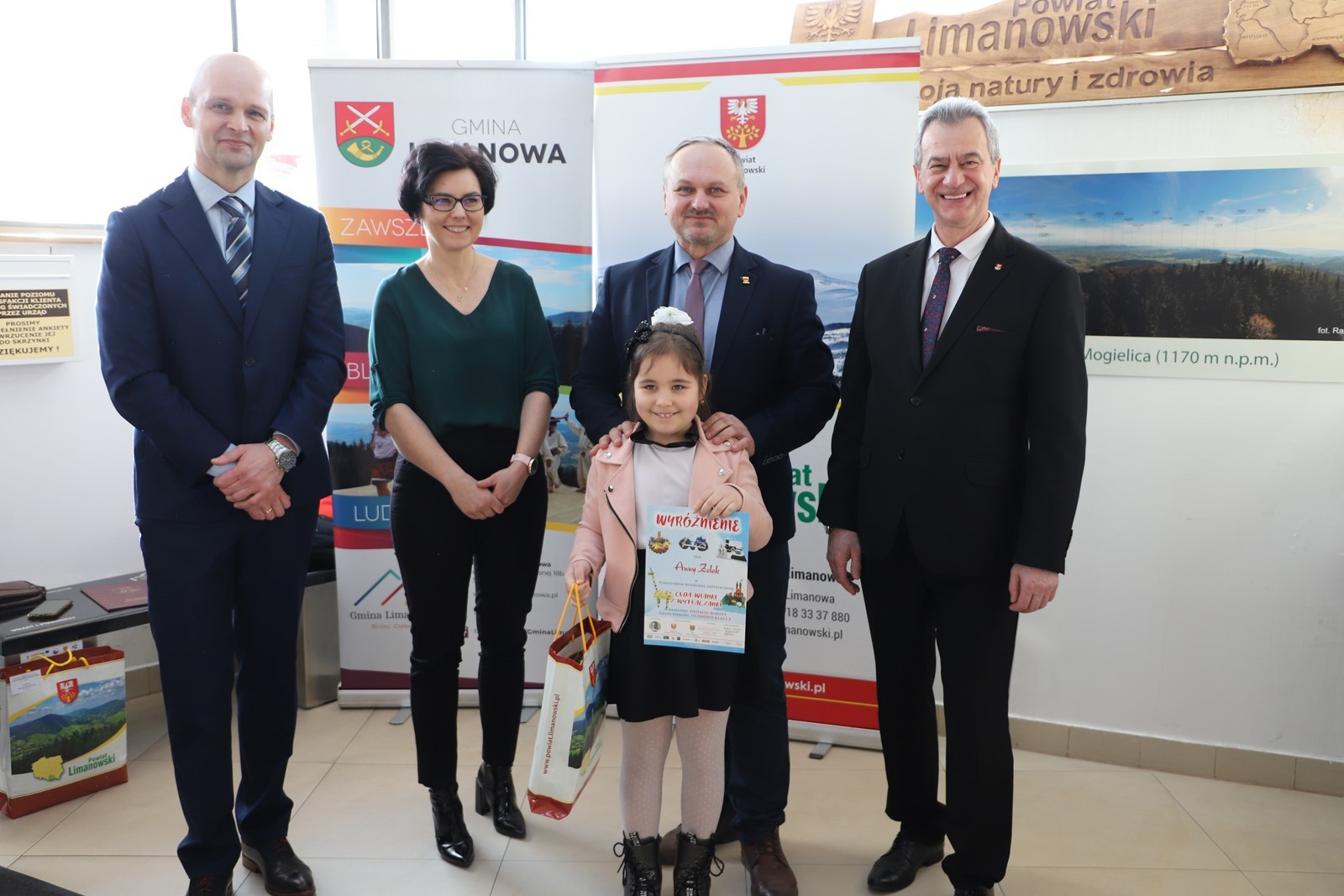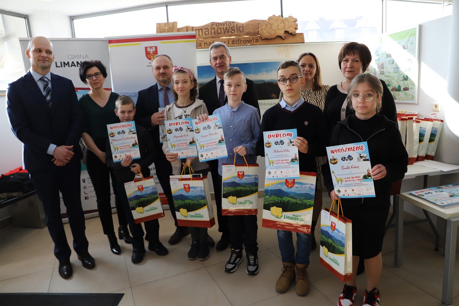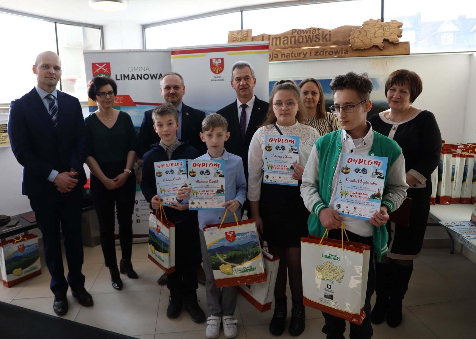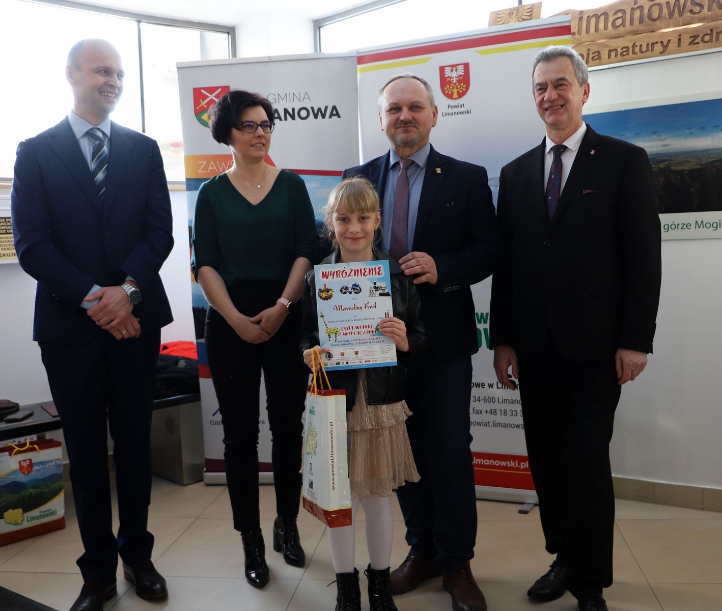 Podczas uroczystego rozstrzygnięcia konkursu w Powiatowym Centrum Informacji Turystycznej w Limanowej obecni byli: Mieczysław Uryga – Starosta Limanowski, Jan Skrzekut – Wójt Gminy Limanowa, Edyta Król – Dyrektor Gminnego Zespołu Obsługi Szkół, Wojciech Korabik - Kierownik Wydziału Kultury i Promocji Gminy Limanowa oraz Mateusz Pietrzak – Kierownik Biura Promocji, Kultury i Turystyki Powiatu Limanowskiego.