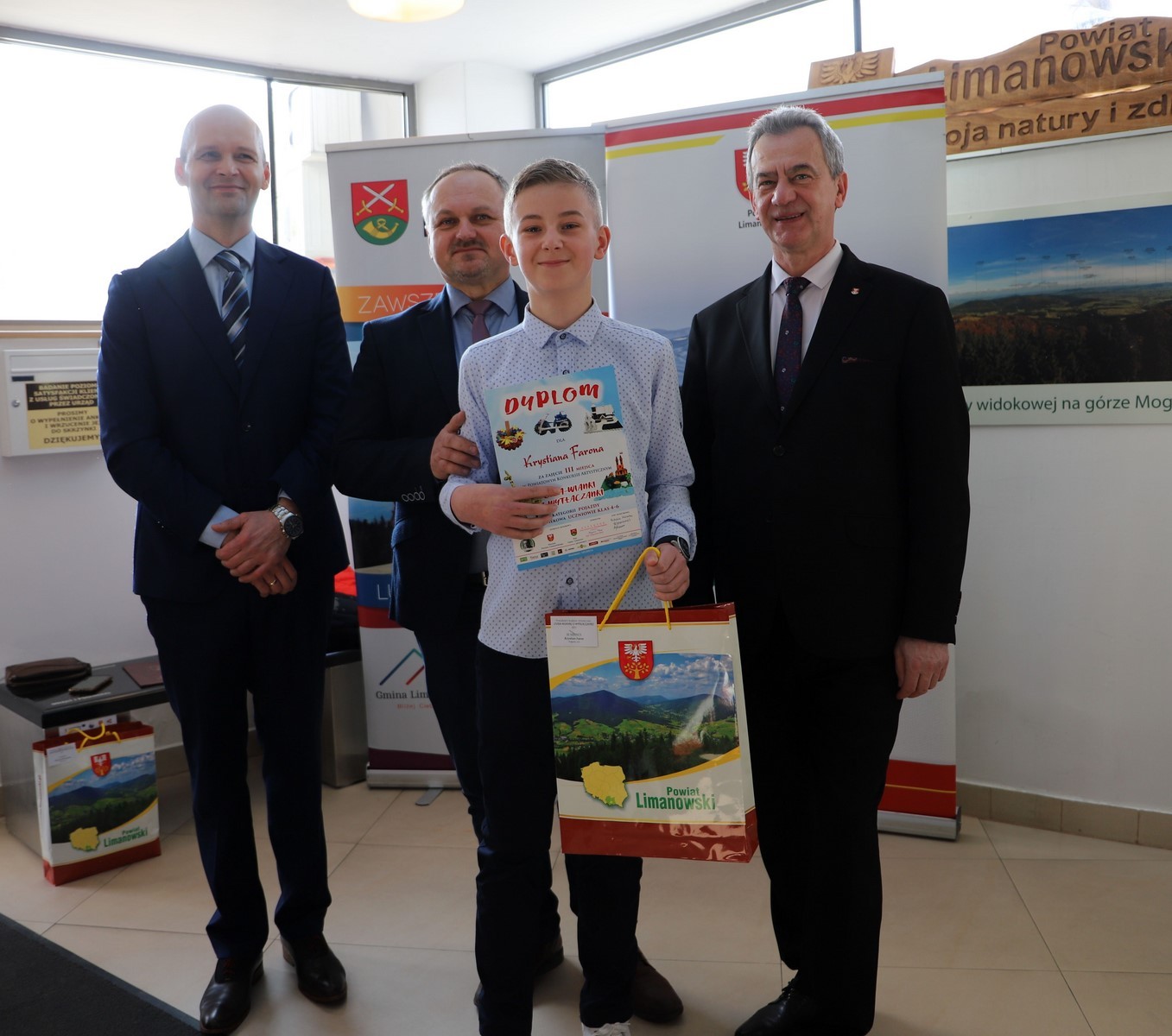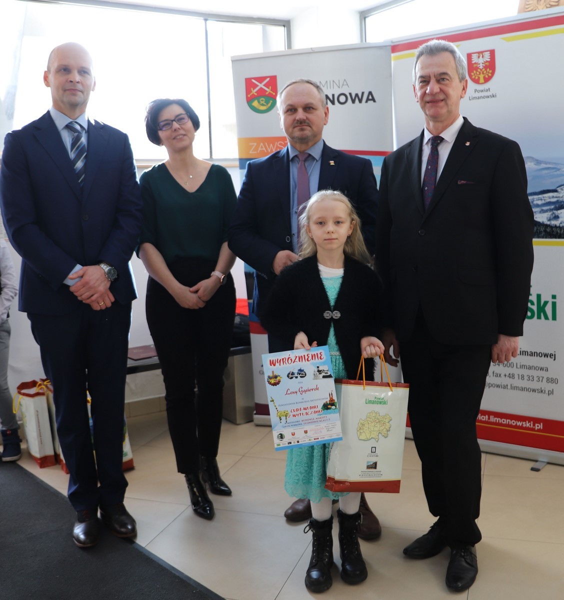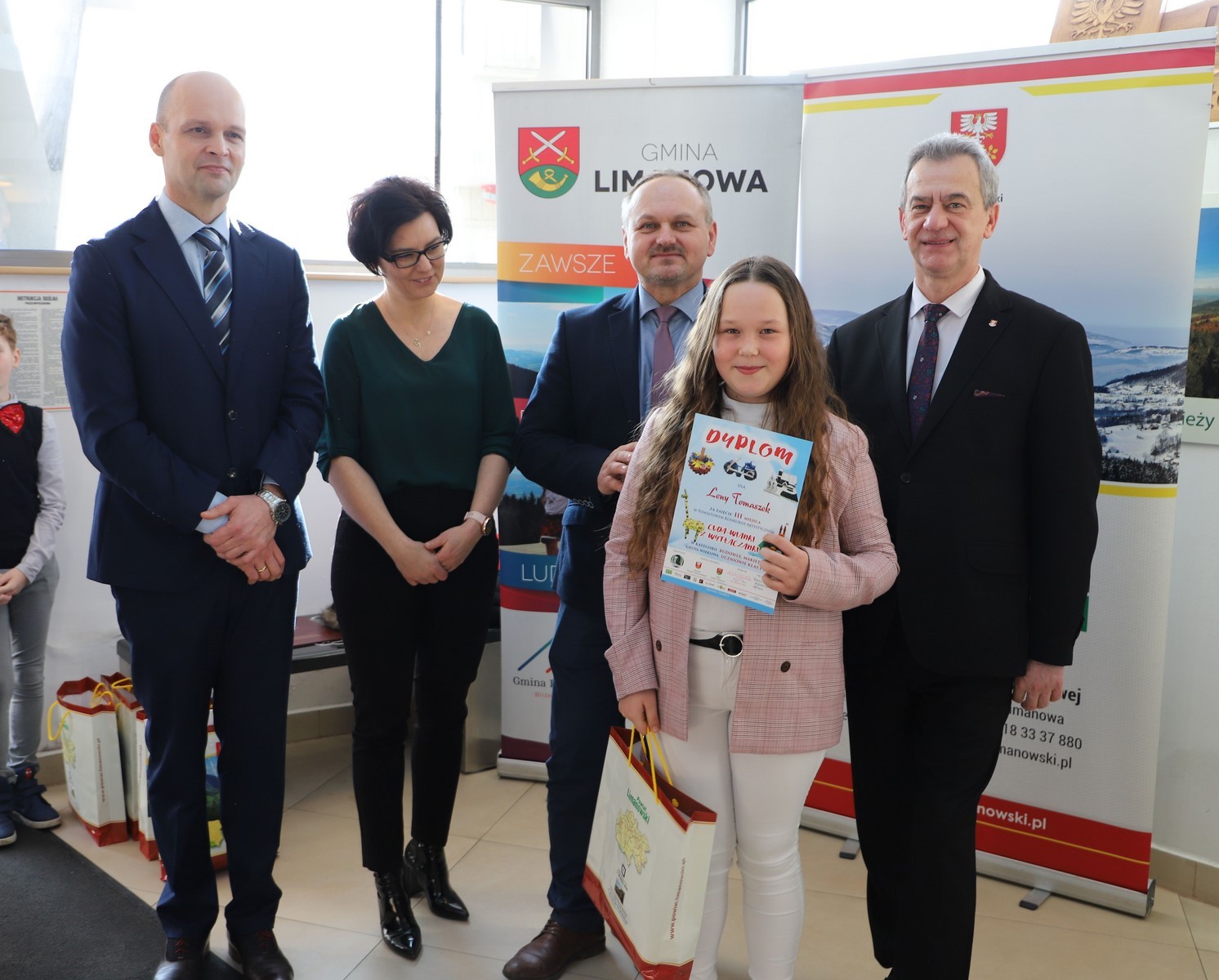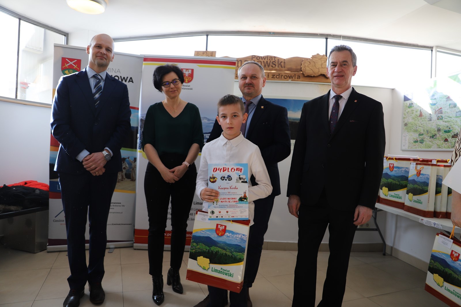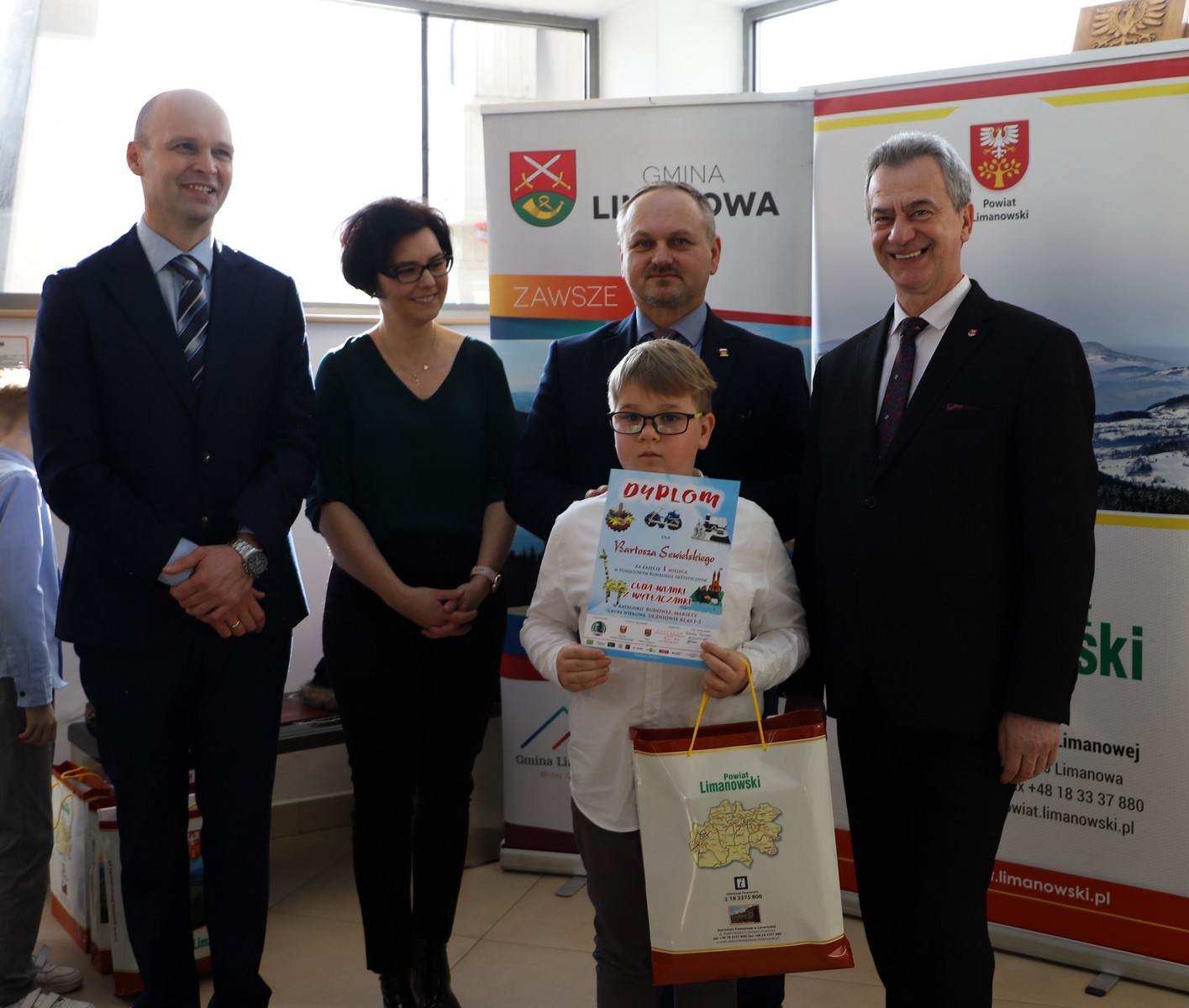 Podczas uroczystego rozstrzygnięcia konkursu w Powiatowym Centrum Informacji Turystycznej w Limanowej obecni byli: Mieczysław Uryga – Starosta Limanowski, Jan Skrzekut – Wójt Gminy Limanowa, Edyta Król – Dyrektor Gminnego Zespołu Obsługi Szkół, Wojciech Korabik - Kierownik Wydziału Kultury i Promocji Gminy Limanowa oraz Mateusz Pietrzak – Kierownik Biura Promocji, Kultury i Turystyki Powiatu Limanowskiego.