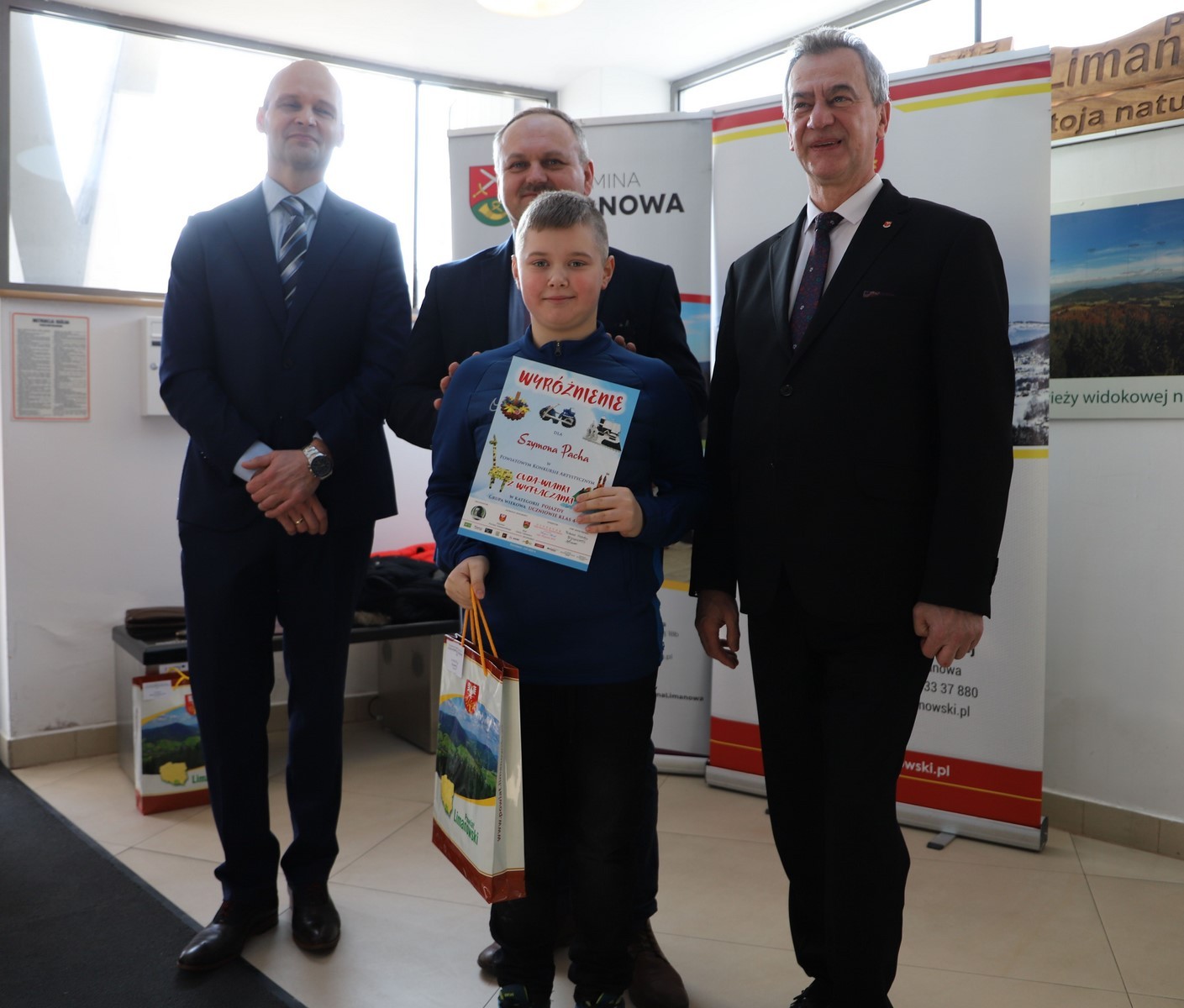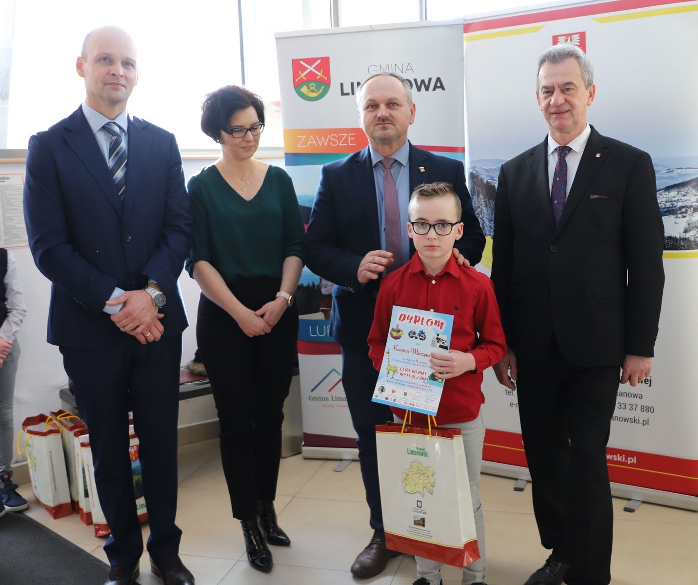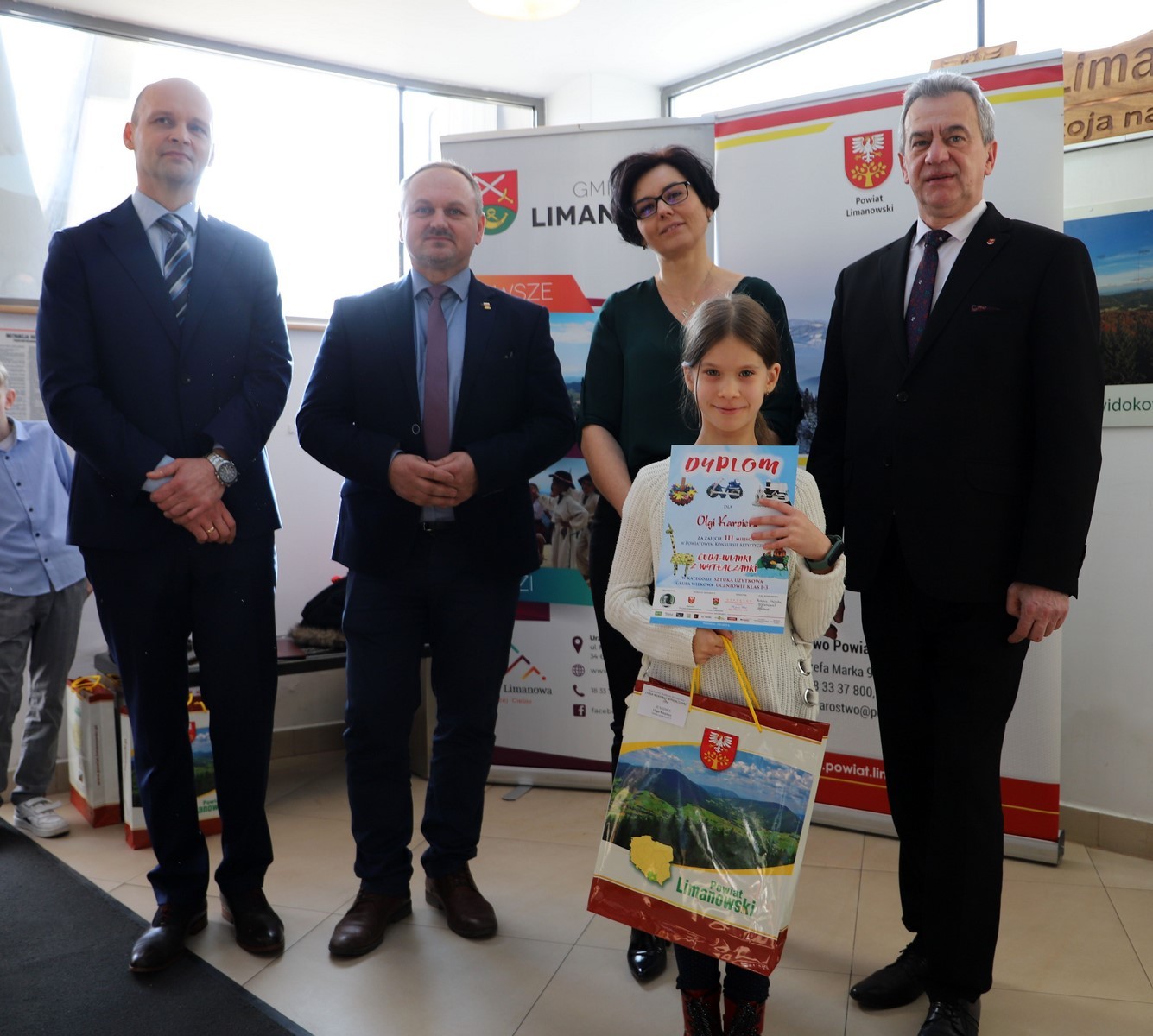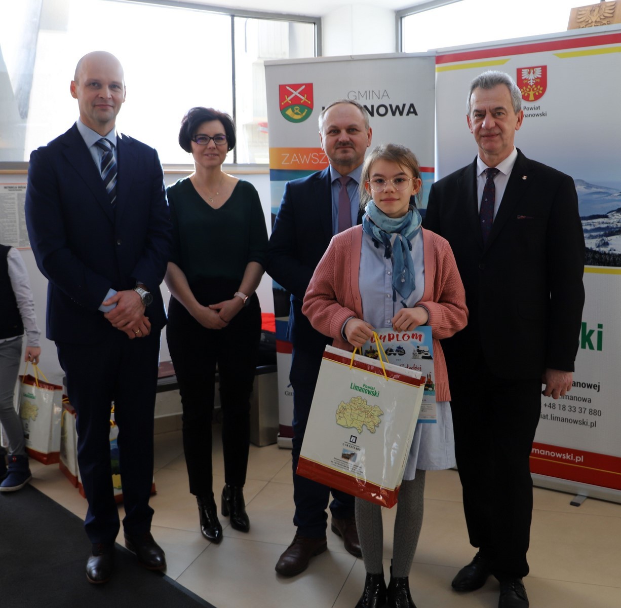 Podczas uroczystego rozstrzygnięcia konkursu w Powiatowym Centrum Informacji Turystycznej w Limanowej obecni byli: Mieczysław Uryga – Starosta Limanowski, Jan Skrzekut – Wójt Gminy Limanowa, Edyta Król – Dyrektor Gminnego Zespołu Obsługi Szkół, Wojciech Korabik - Kierownik Wydziału Kultury i Promocji Gminy Limanowa oraz Mateusz Pietrzak – Kierownik Biura Promocji, Kultury i Turystyki Powiatu Limanowskiego.