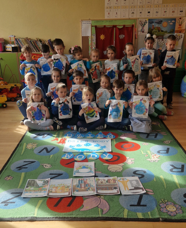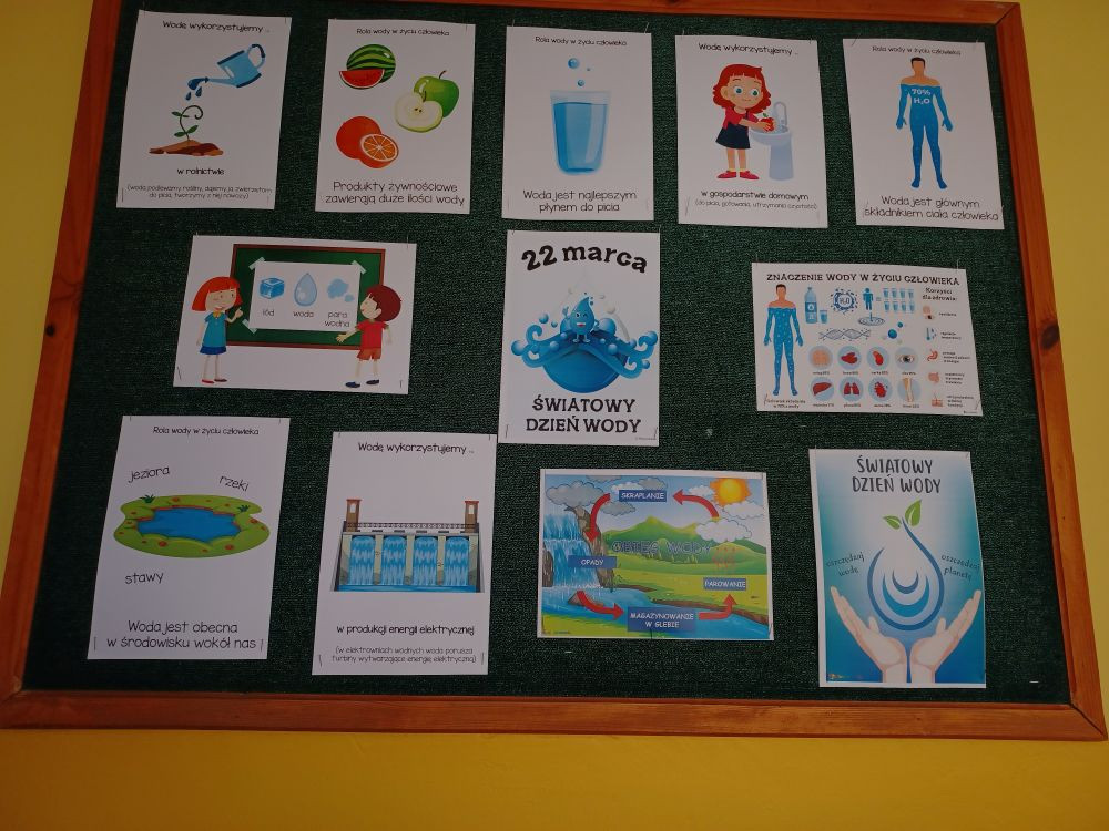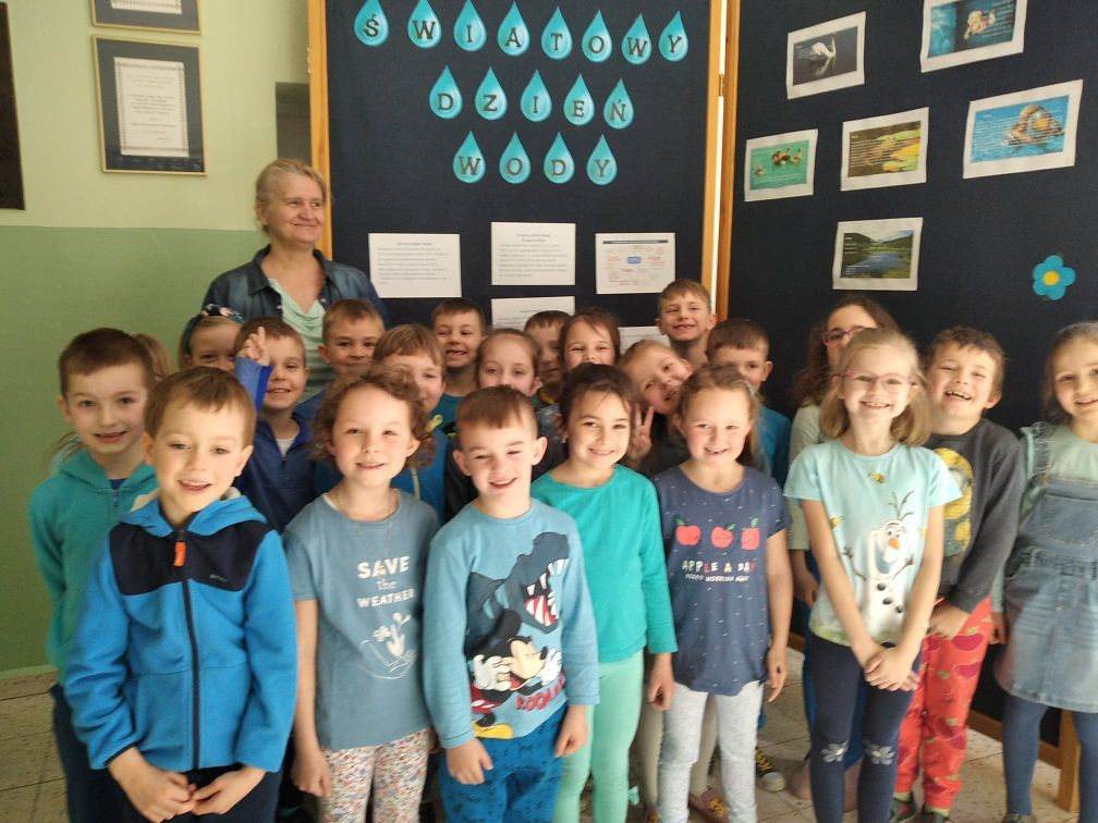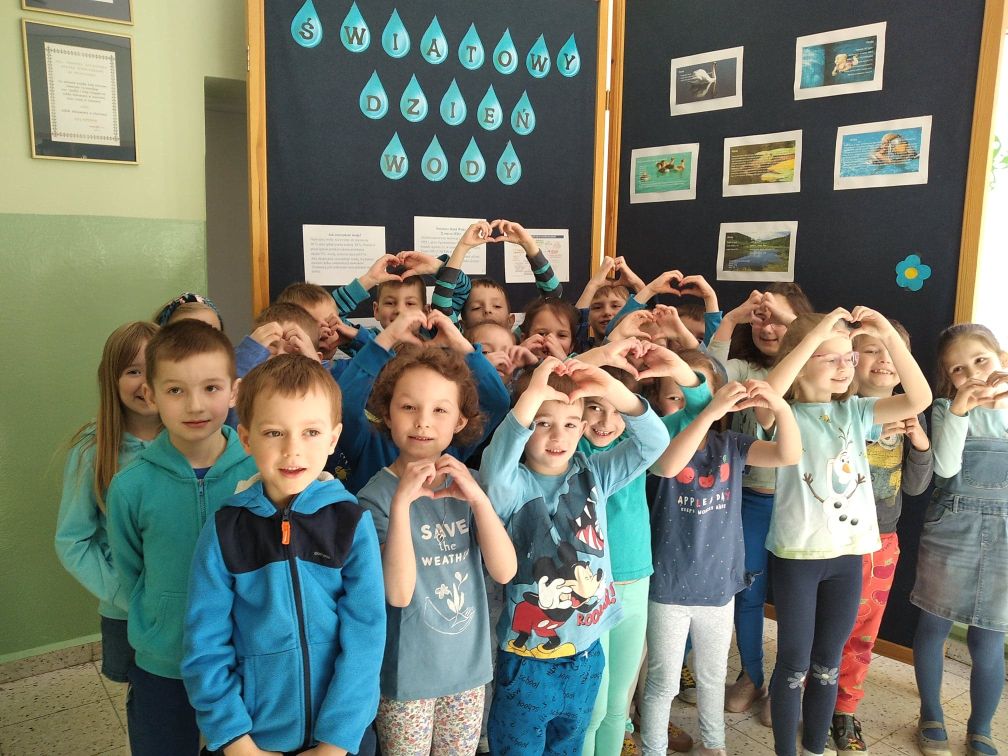 Światowy Dzień Wody to święto obchodzone 22 marca.W tym roku szkolnym uczniowie klas 4-8 wykonali plakaty zawierające wiele ciekawych informacji na temat wody.Plakaty te przygotowano pod hasłami:,,Woda wokół nas”, ,,Znaczenie wody w życiu człowieka”, ,,Sposoby oszczędzania wody” oraz ,, Źródła zanieczyszczenia wody”.Natomiast dzieci z oddziału przedszkolnego oraz uczniowie klas 1-3 przygotowywali wspólnie tematyczne plakaty i prace plastyczne, dzięki czemu zapoznali się ze znaczeniem wody w życiu człowieka oraz sposobami jej oszczędzania. Zdobyta wiedza, a także umiejętności plastyczne zostały zaprezentowane w holu szkoły, gdzie mogą być podziwiane przez całą społeczność szkolną.Na zakończenie obchodów Dnia Wody zostało wykonane wspólne zdjęcie dzieci ubranych na niebiesko, co było symbolem czystej wody wokół nas.Podczas obchodów zrealizowano również zadanie w ramach Międzynarodowego Projektu Edukacyjnego „Z kulturą mi do twarzy” z modułu 3.Prowadząc takie działania, można już od najmłodszych lat uczyć dzieci i młodzież oszczędzania wody i pokazać, jakie jest jej znaczenie dla życia na Ziemi.