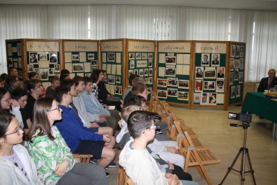 Oprócz wystawy 27 marca odbyło się już drugie spotkanie poświęcone przywracaniu pamięci Sprawiedliwych wśród Narodów Świata z naszej małej ojczyzny. W czerwcu 2022 roku uczniowie ówczesnych klas ósmych naszej szkoły mieli okazję usłyszeć historię rodziny Pana Józefa Jarosza, która w czasie II wojny światowej ocaliła 12-osobową grupę Żydów. Świadectwo ocalałych sprawiło, że rodzina Jaroszów została uhonorowana w 1990 roku orderem i tytułem Sprawiedliwi wśród Narodów Świata. W tym roku opowieść ta została przypomniana przez Kazimierę Jarosz. Natomiast Włodzimierz Król przybliżył dzieje swojej rodziny, która, podobnie jak Jaroszowie, została uhonorowana tytułem nadawanym przez Instytut Yad Vashem w Izraelu. Drzewo pamięci poświęcone dziewięcioosobowej rodzinie Królów w Ogrodzie Sprawiedliwych zostało posadzone w latach 80-tych XX wieku.