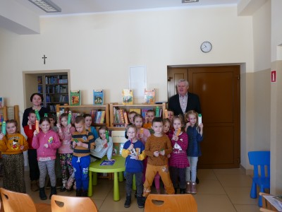 Większość dzieci była po raz pierwszy w bibliotece, dlatego też z ogromnym zainteresowaniem słuchały, jak Jacenty Musiał, dyrektor biblioteki wspólnie z Lidią Piegzą – bibliotekarką, mówili o historii biblioteki, roli książki i jej funkcji edukacyjno-czytelniczej. Dzieci zapoznano z regulaminem wypożyczania i zasadami szanowania książek. Ważne jest to, aby rodzicom uświadamiać o potrzebie czytania na głos dzieciom, przynajmniej 20 minut dziennie, co pozytywnie wpływa na rozwój najmłodszych. Książka ma ogromną moc oddziaływania na wiele dziecięcych zmysłów. Jest to ona także ważnym przyjacielem, szczególnie w dziecięcym okresie życia. Od najmłodszych lat trzeba dzieci wprowadzać w arkany korzystania z biblioteki, zwłaszcza, że instytucje kultury zawsze stoją otworem na potrzeby i oczekiwania najmłodszych czytelników.