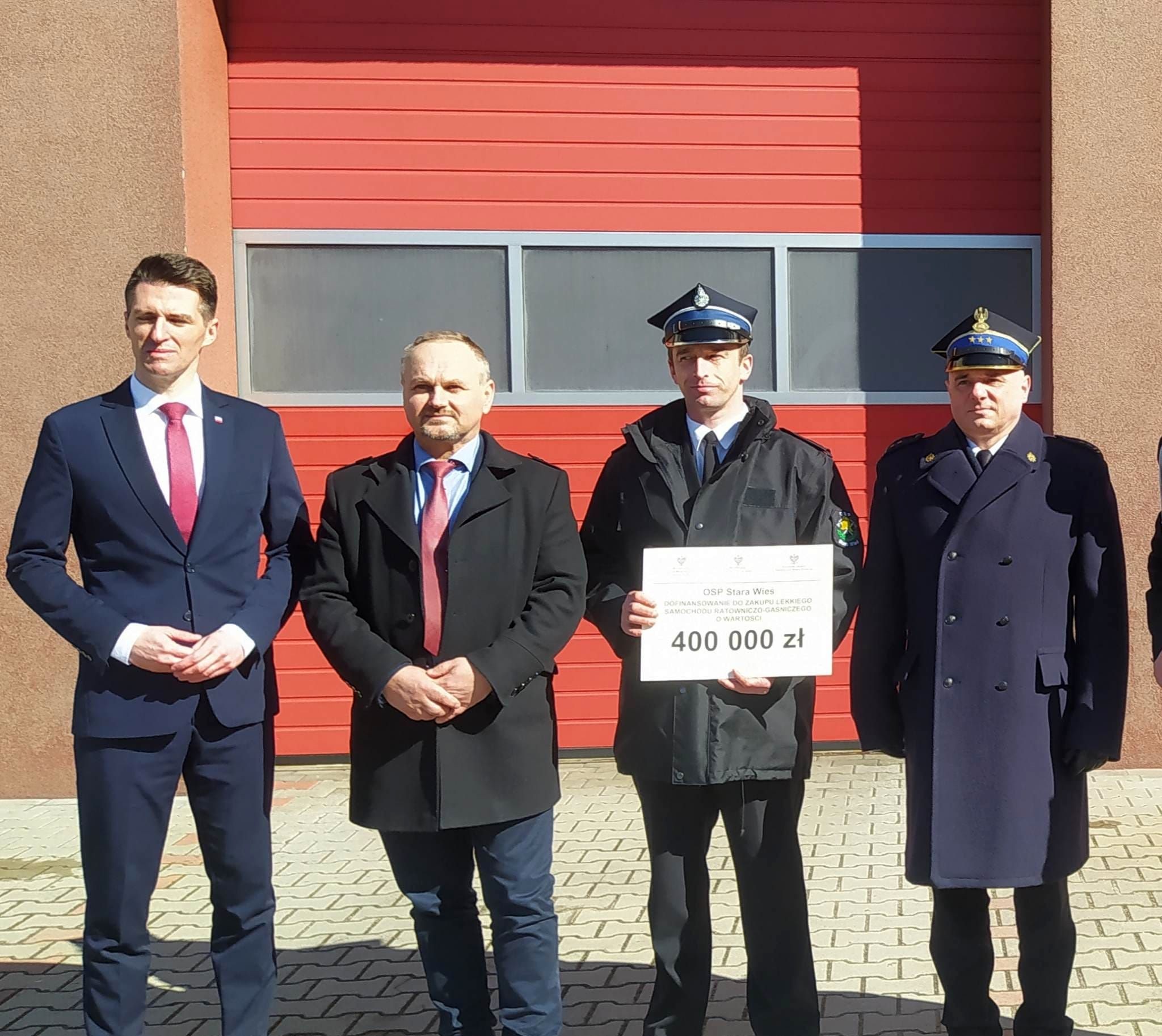 Promesę dla OSP Stara Wieś odebrał Wójt Gminy Limanowa Jan Skrzekut, Prezes Ochotniczej Straży Pożarnej w Starej Wsi Daniel Zagrodzki oraz skarbnik straży Grzegorz Szewczyk.