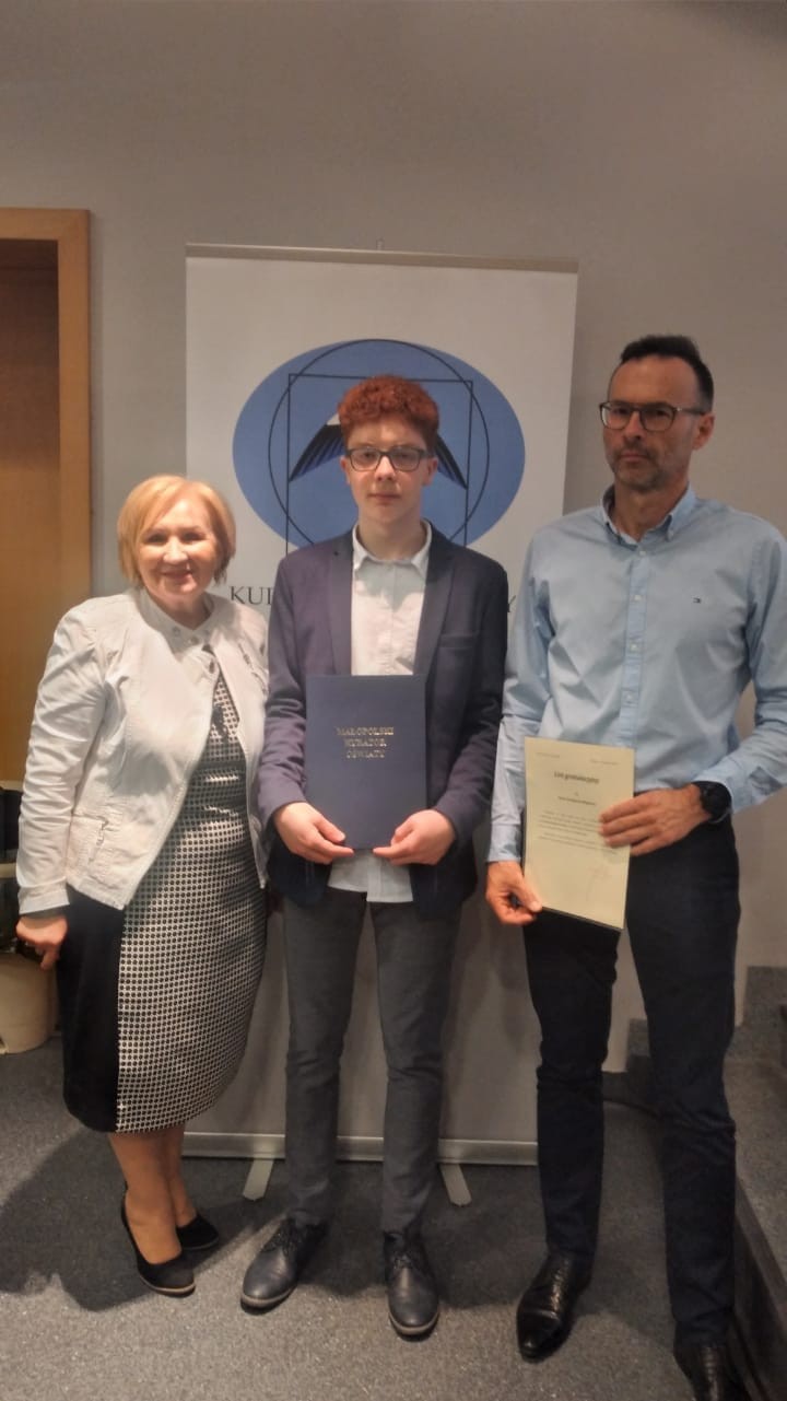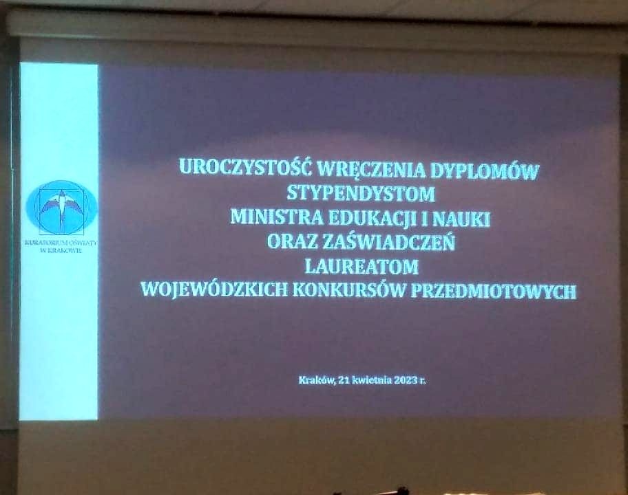 W piątek 21 kwietnia br. w Krakowie odbyła się uroczysta gala wręczenia tytułów laureatom tegorocznych konkursów przedmiotowych  organizowanych przez Małopolskie Kuratorium Oświaty.