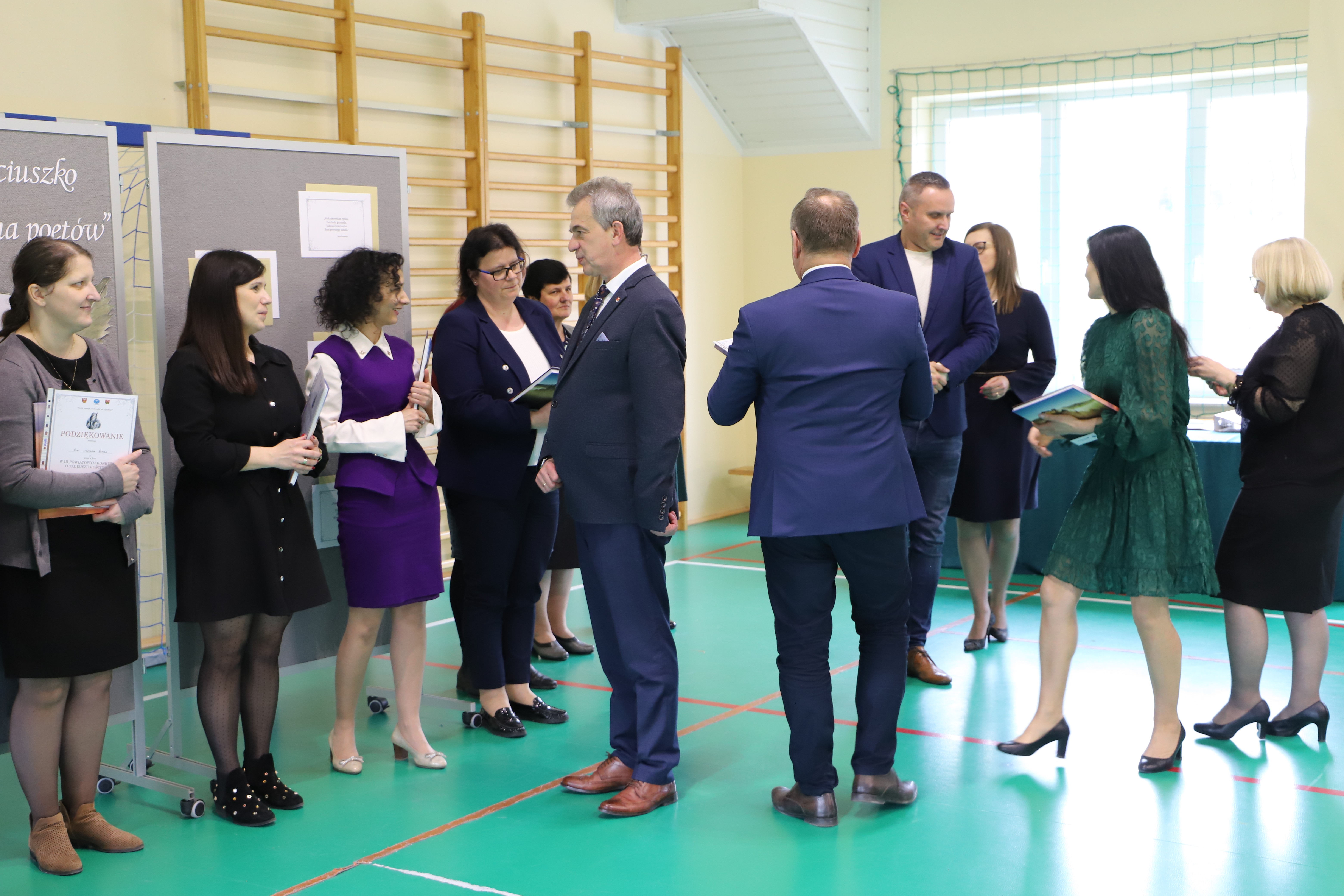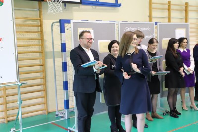 Starszy Wizytator Kuratorium Oświaty w Krakowie Delegatura Nowy Sacz-Sebastian Bielak, Wójt Gminy Limanowa Jan Skrzekut, Starosta Powiatu Limanowskiego Mieczysław Uryga, Dyrektor Gminnego Zespołu Obsługi Szkół Edyta Król, Dyrektor Szkoły Podstawowej nr 1 w Siekierczynie Wiesława Tudaj