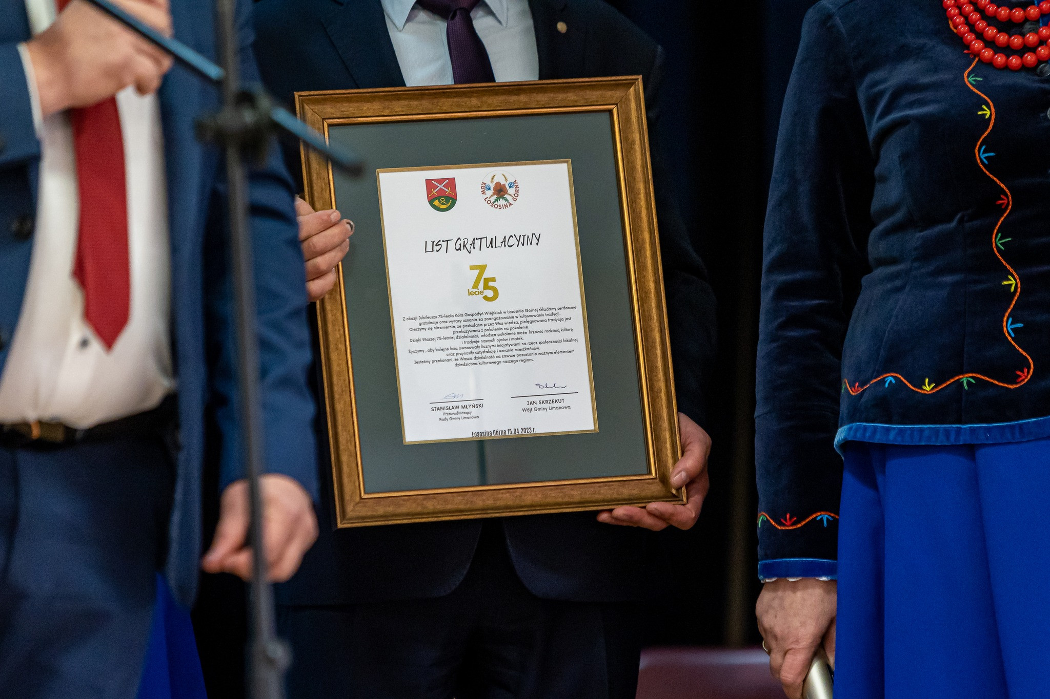Gmina Limanowa była reprezentowana przez : Wójta Gminy Limanowa Jana Skrzekuta, Przewodniczącego Rady Gminy Limanowa Stanisława Młyńskiego, Radnych Gminy Limanowa Daniela Łąckiego, Zuzanne Kolawę, Leszka Twaroga, oraz Kierownika Wydziału Kultury i Promocji Wojciecha Korabika. wójt gminy wraz z przewodniczącym rady oficjalne wręczyli Listy Gratulacyjne wszystkim członkiniom koła oraz złożyli życzenia: ” Z okazji Jubileuszu 75-lecia Koła Gospodyń Wiejskich w Łososinie Górnej składam serdeczne gratulacje oraz wyrazy uznania za zaangażowanie w kultywowaniu tradycji. Cieszę się niezmiernie, że posiadana przez Was wiedza, pielęgnowana tradycja jest przekazywana z pokolenia na pokolenie. Dzięki Waszej 75-letniej działalności, młodsze pokolenie może krzewić rodzimą kulturę i tradycje naszych ojców i matek. Jestem przekonany, że Wasza działalność na zawsze pozostanie ważnym elementem dziedzictwa kulturowego naszego regionu”