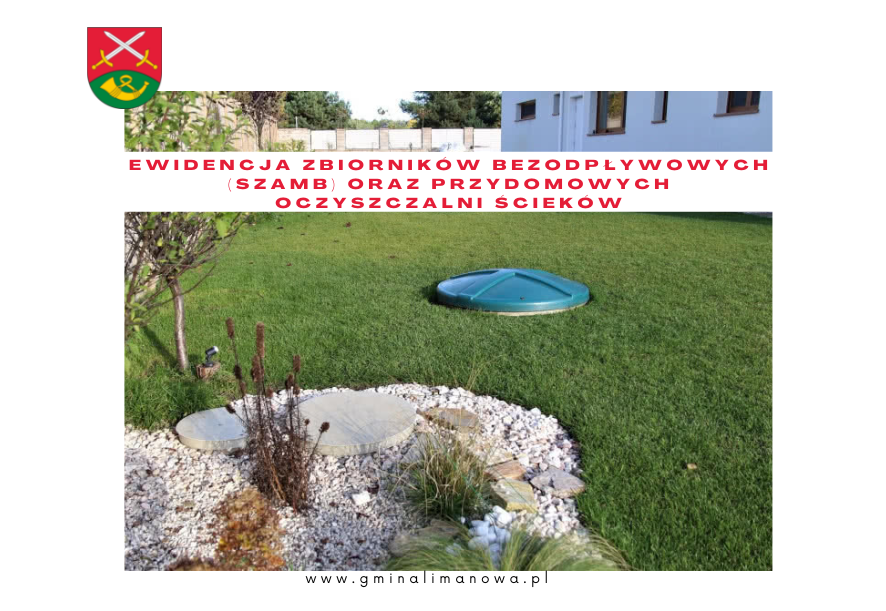 Wójt Gminy Limanowa informuje, że zgodnie z ustawą o utrzymaniu czystości i porządku w gminie (art.3 ust. 3 pkt 1 i 2) nałożono na wszystkie gminy w Polsce obowiązek prowadzenia ewidencji zbiorników bezodpływowych (szamb) oraz przydomowych oczyszczalni ścieków. W związku z tym każdy właściciel nieruchomości zlokalizowanej na terenie gminy Limanowa, wyposażonej w przydomową oczyszczalnie ścieków lub zbiornik bezodpływowy ma obowiązek złożyć aktualne zgłoszenie do wyżej wymienionej ewidencji.
