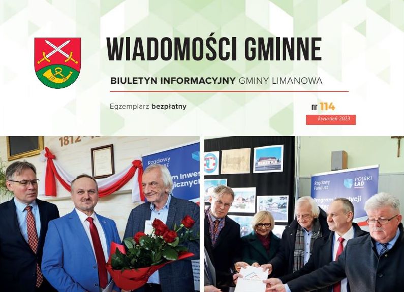 Zapraszamy Państwa do lektury świątecznego numeru Biuletynu Informacyjnego "Wiadomości Gminne". W najnowszym numerze m.in. informacje o najważniejszych inwestycjach realizowanych na terenie gminy Limanowa oraz wydarzeniach, które miały miejsce w ostatnim czasie.