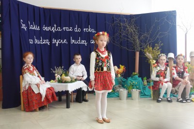 Nie obyło się też bez obrzędowych tańców. Scenografia przykuwała uwagę bogactwem i różnorodnością, gdyż stanowiły ją, nieodłącznie związane ze Świętem Paschy, pisanki, kraszanki, baby wielkanocne, cukrowy baranek, palmy, zajączki, wiosenne kwiaty oraz bazie. Mali aktorzy, ubrani w barwne, regionalne stroje, przedstawili zapomniane zwyczaje związane z celebrowaniem świąt, takie jak np. chodzenie po domach z gaikiem, czy oblewanie dziewczyn wodą przez dyngusiarzy. Tradycje wielkanocne są wyznacznikiem naszej przynależności kulturowej. Świadczą o dziedzictwie duchowym narodu przekazywanym z pokolenia na pokolenie, a przede wszystkim o jego tożsamości. Prezentacja bogactwa i różnorodności obyczajów nie tylko pozwala lepiej poczuć klimat Wielkanocy, ale także jest znakomitą lekcją dla najmłodszych, że rodzime zwyczaje należy pielęgnować.