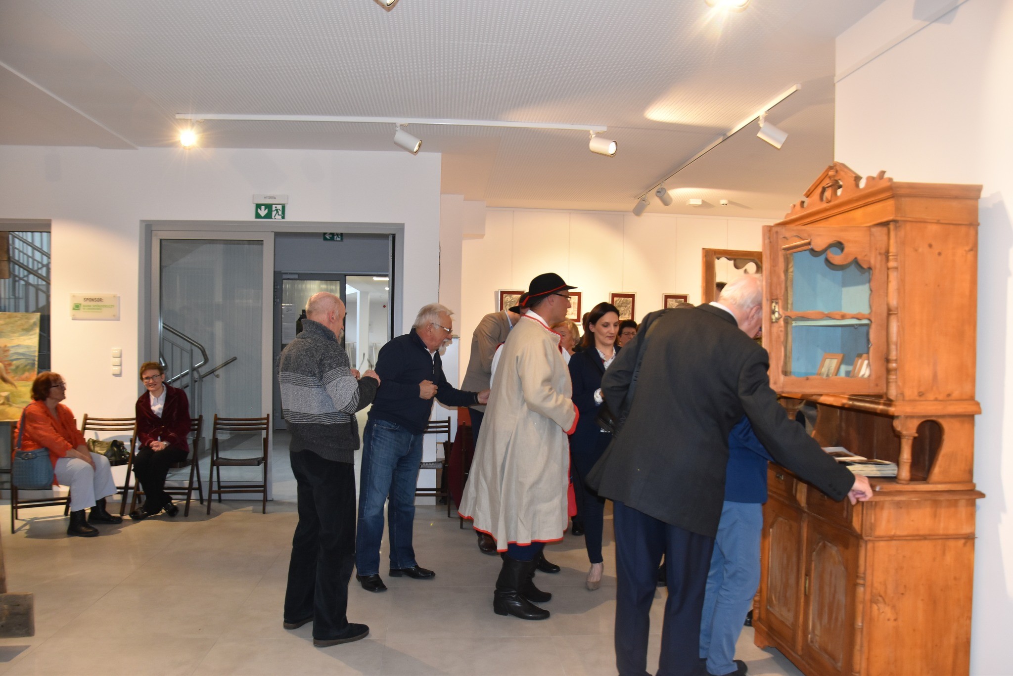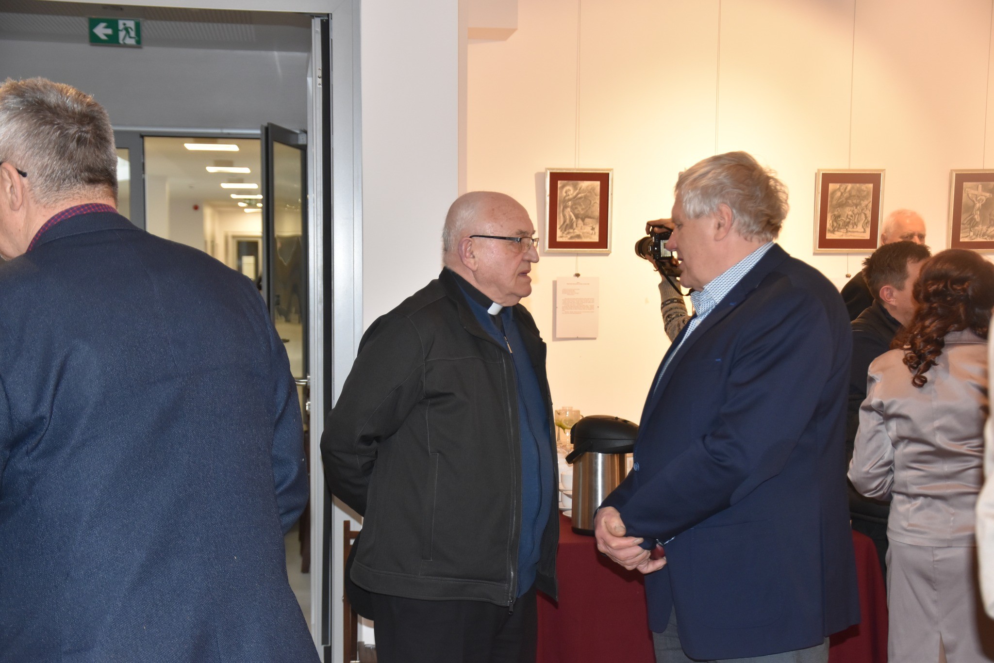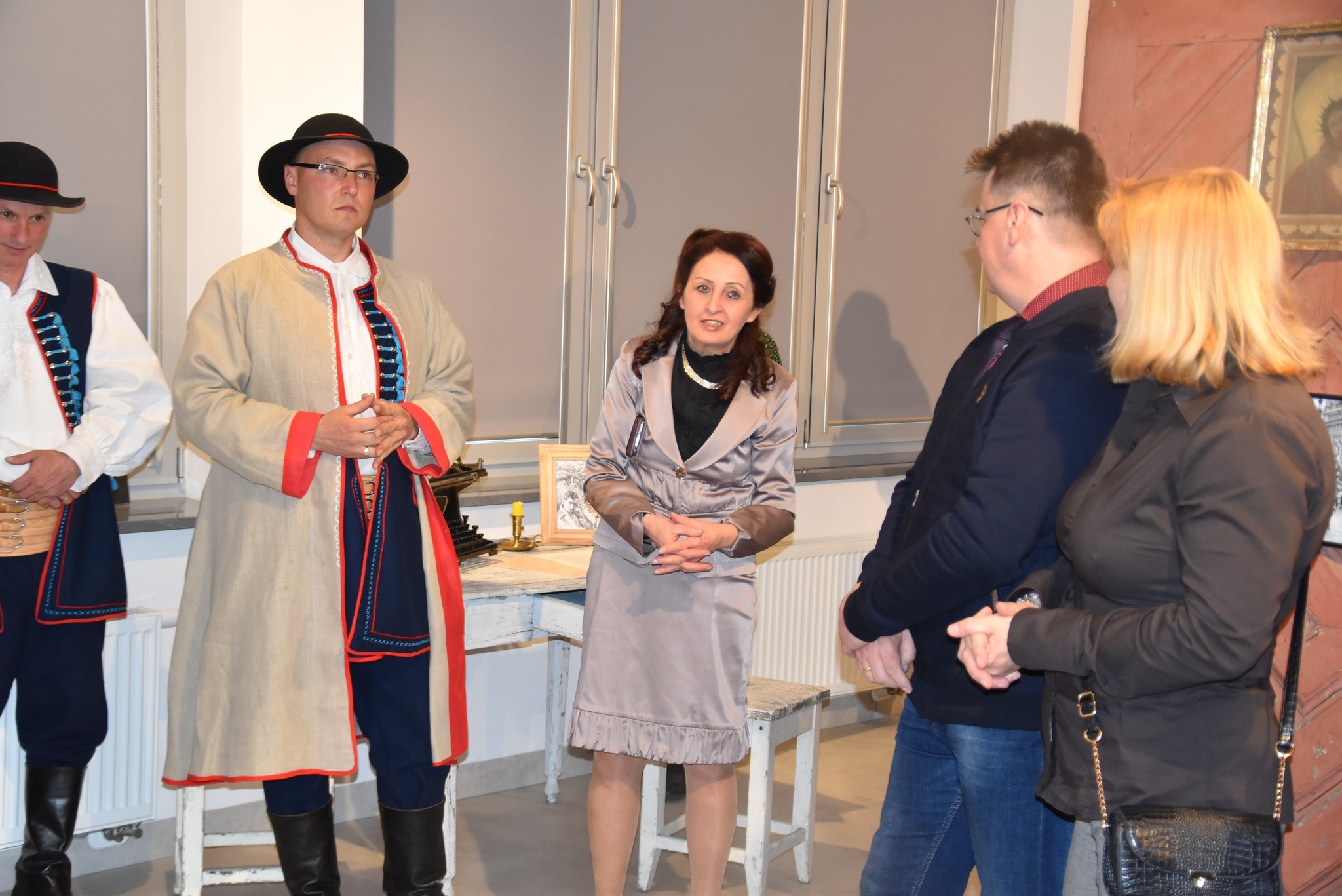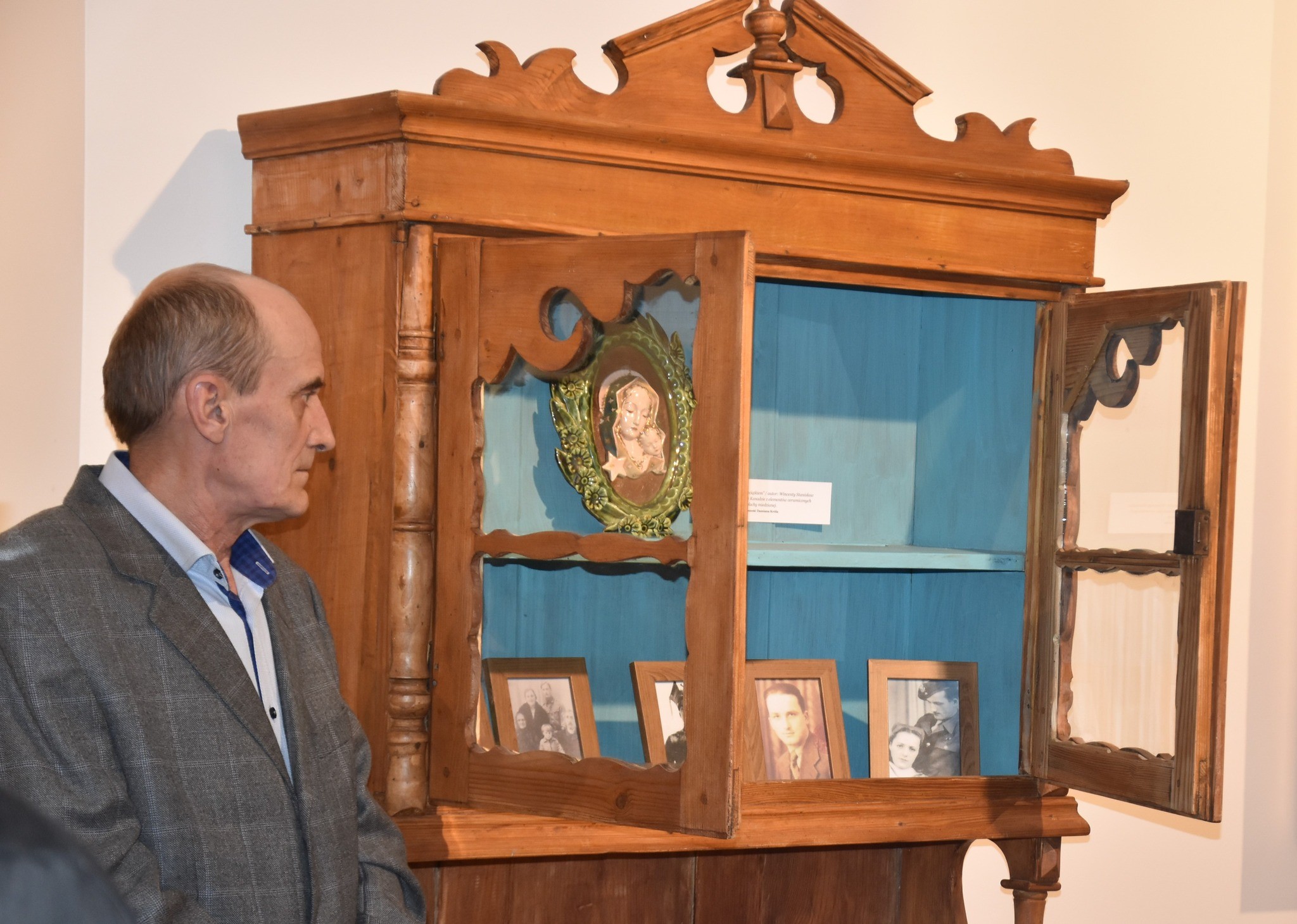 Wójt Gminy Limanowa Jan Skrzekut. Ekspozycję można oglądać do 19 maja w godzinach pracy biblioteki.