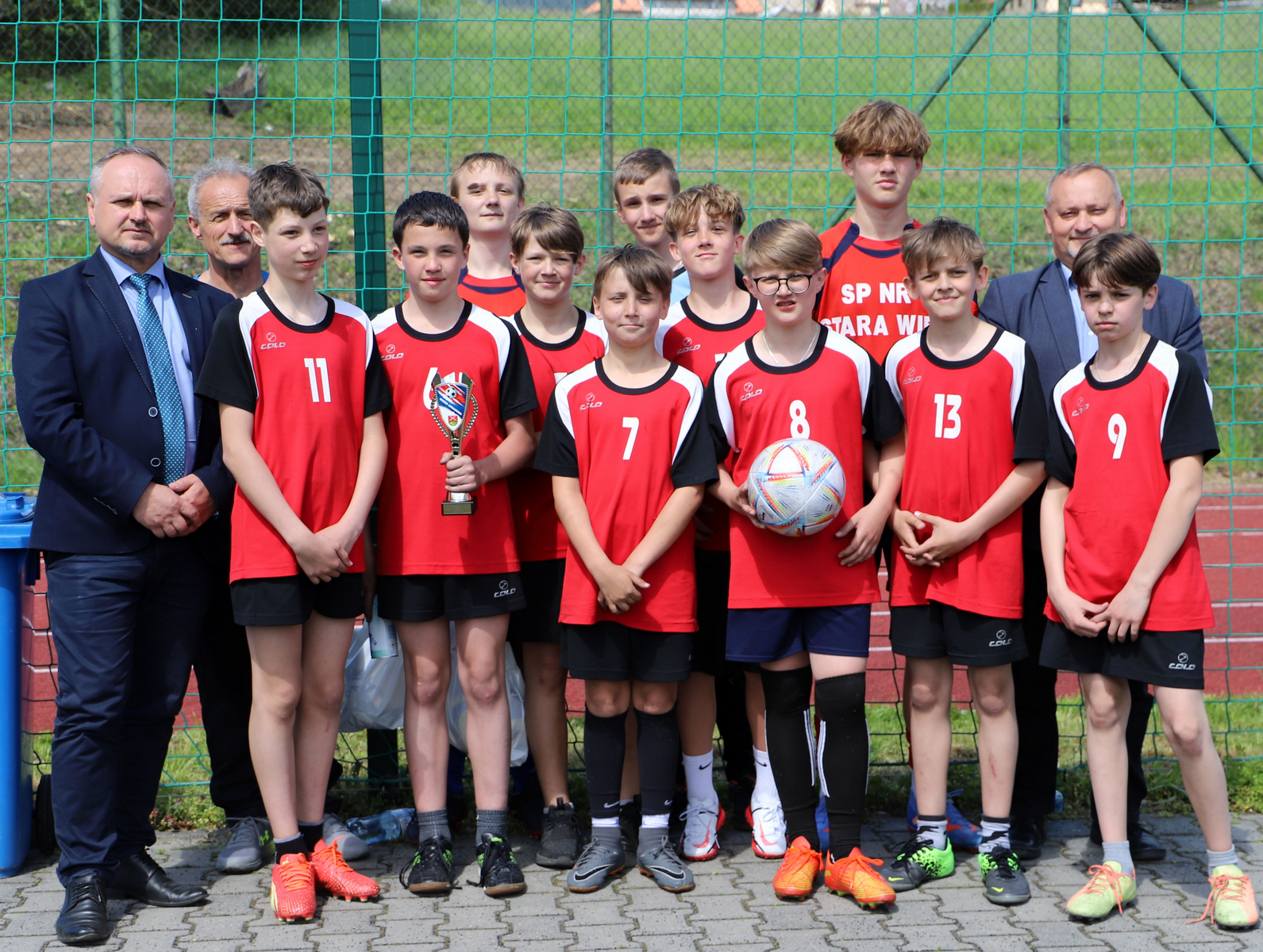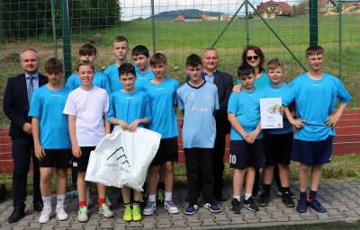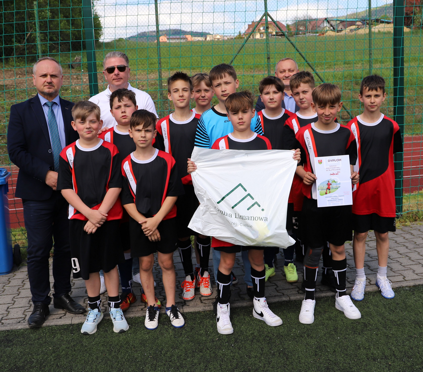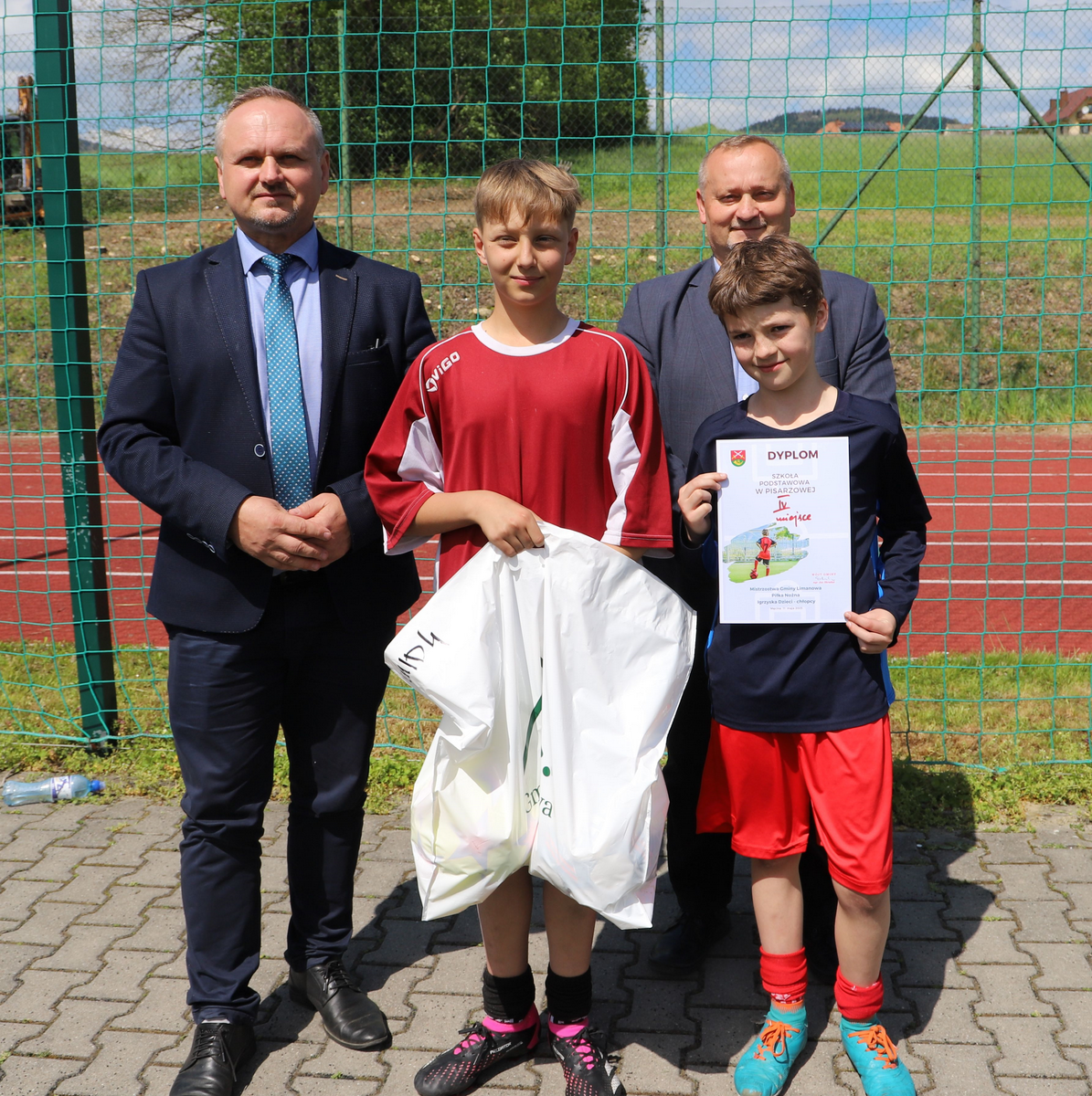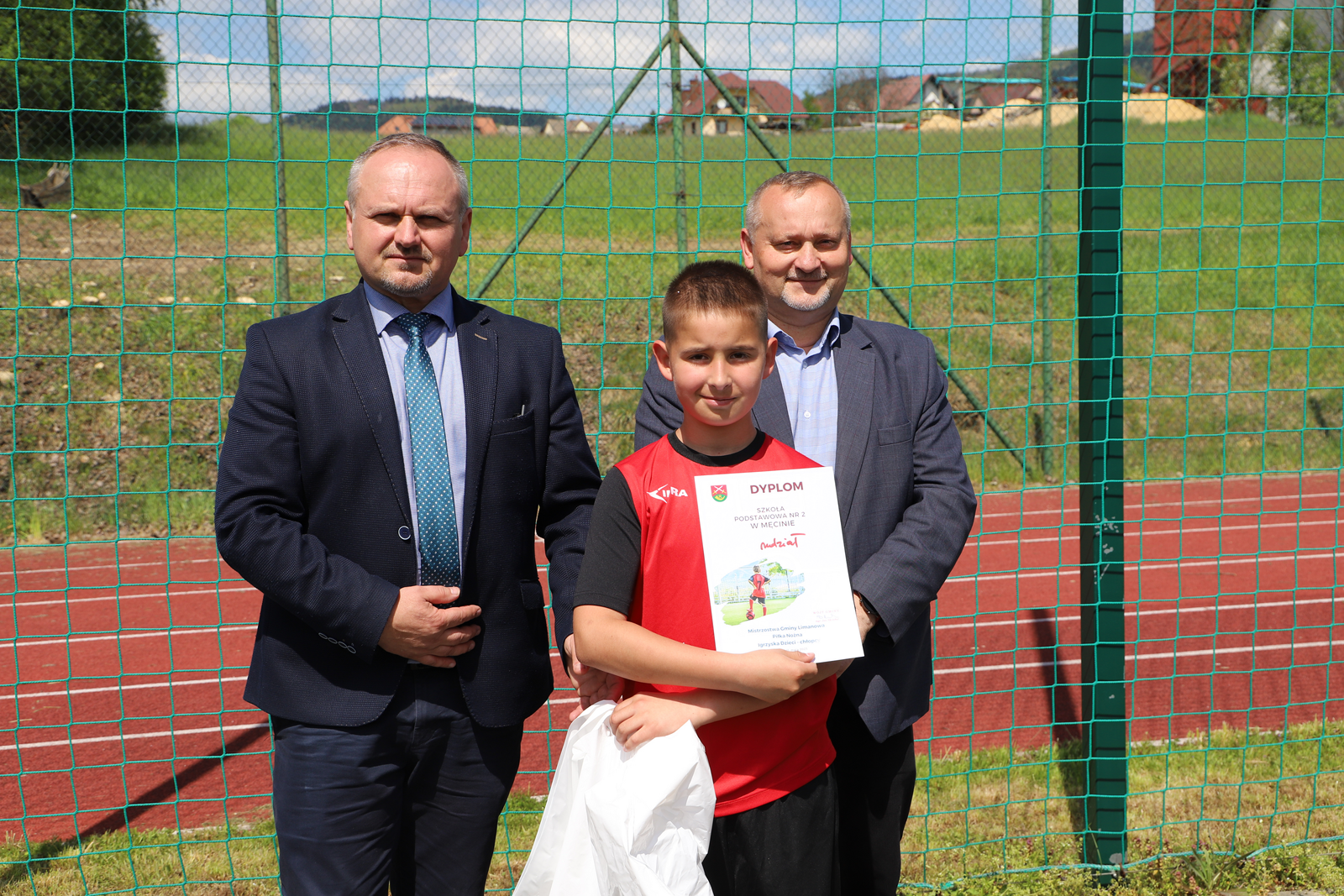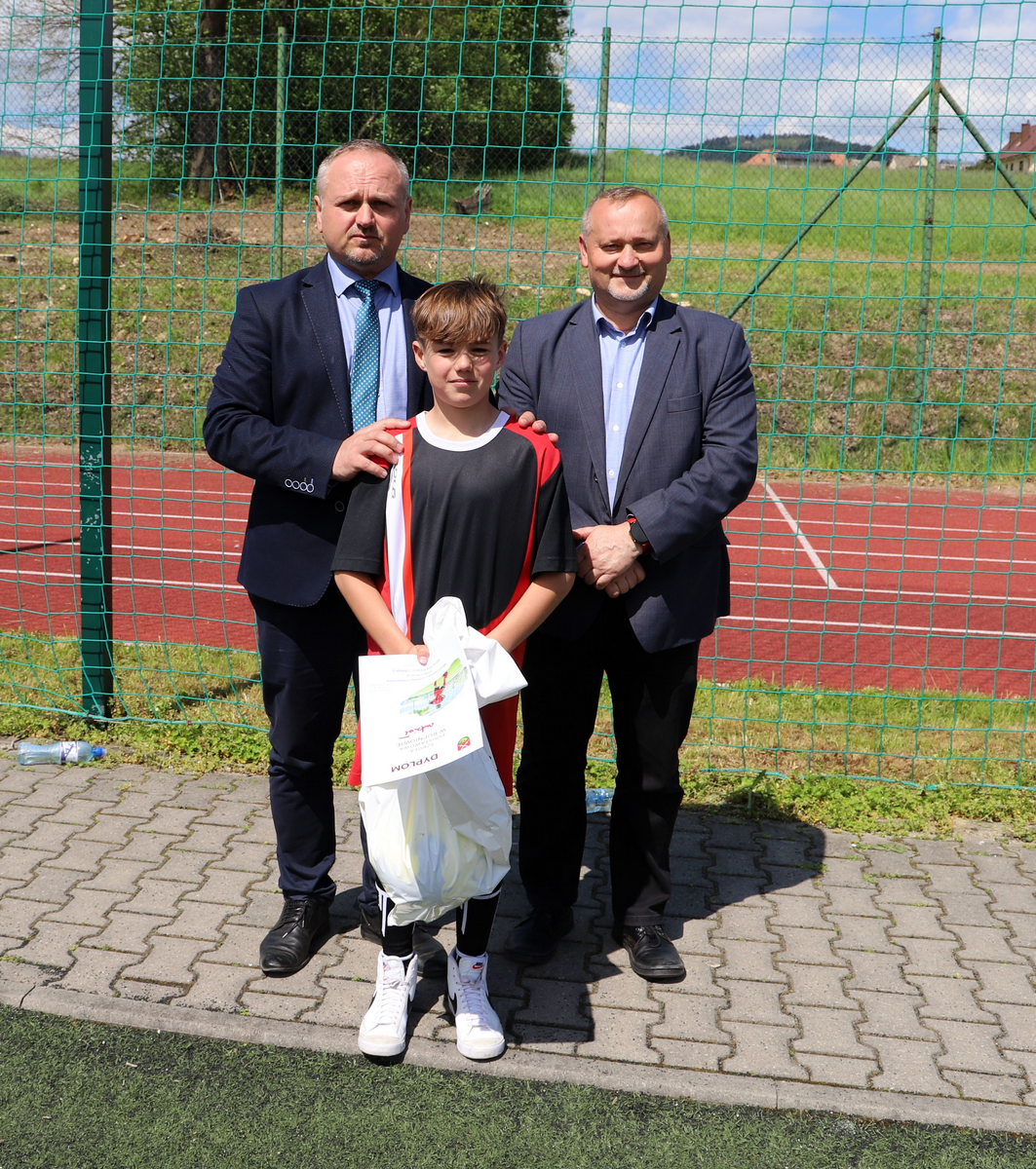 Wręczenia nagród oraz pucharów uczestnikom rozgrywek piłkarskich dokonał Wójt Gminy Limanowa Jan Skrzekut i Dyrektor Szkoły Podstawowej nr 1 w Męcinie Grzegorz Krzak.