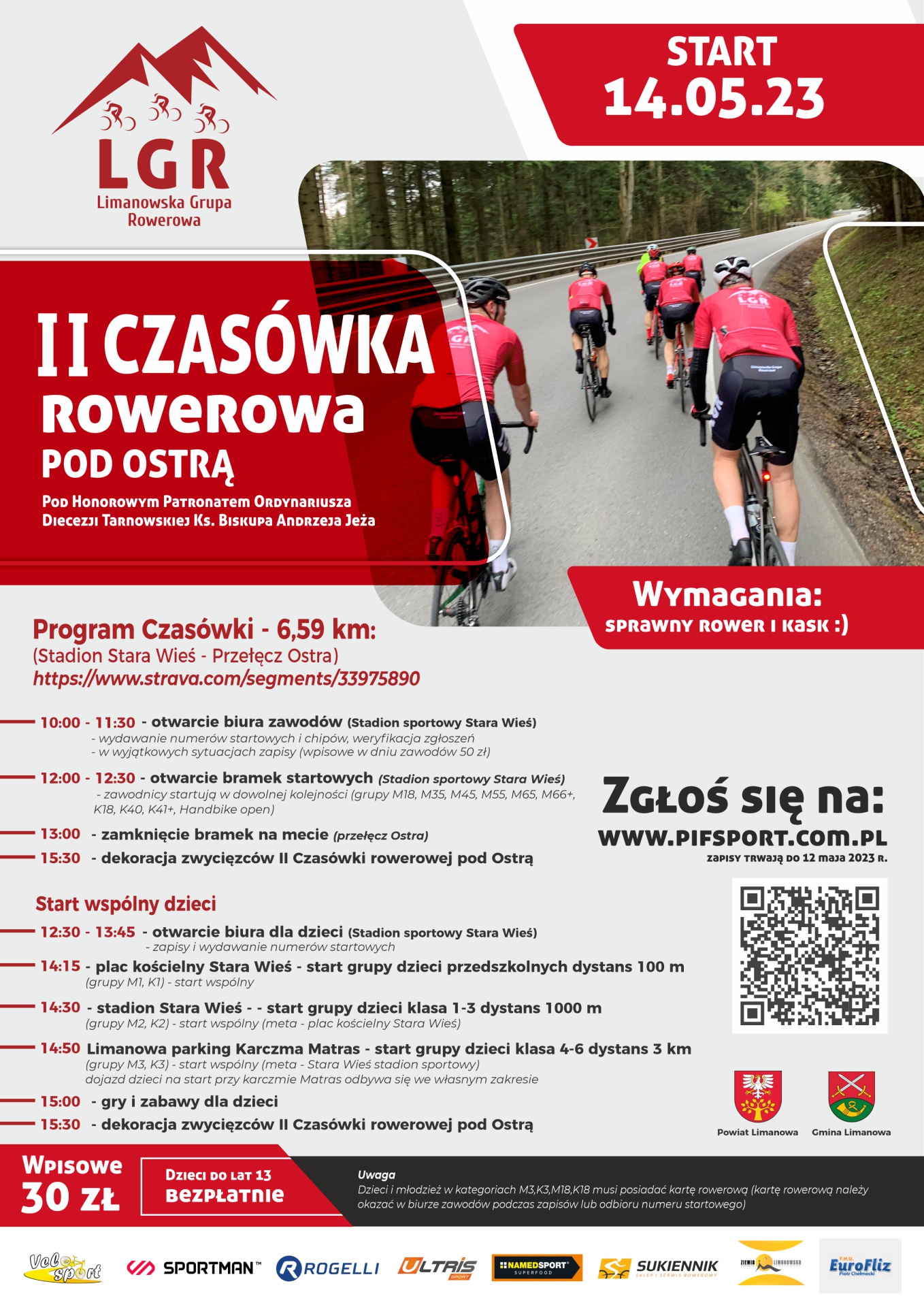 W imieniu organizatorow serdecznie zachęcamy do udziału w 11 Czasówce Rowerowej Pod Ostrą, która odbędzie się 14 maja 2023r.