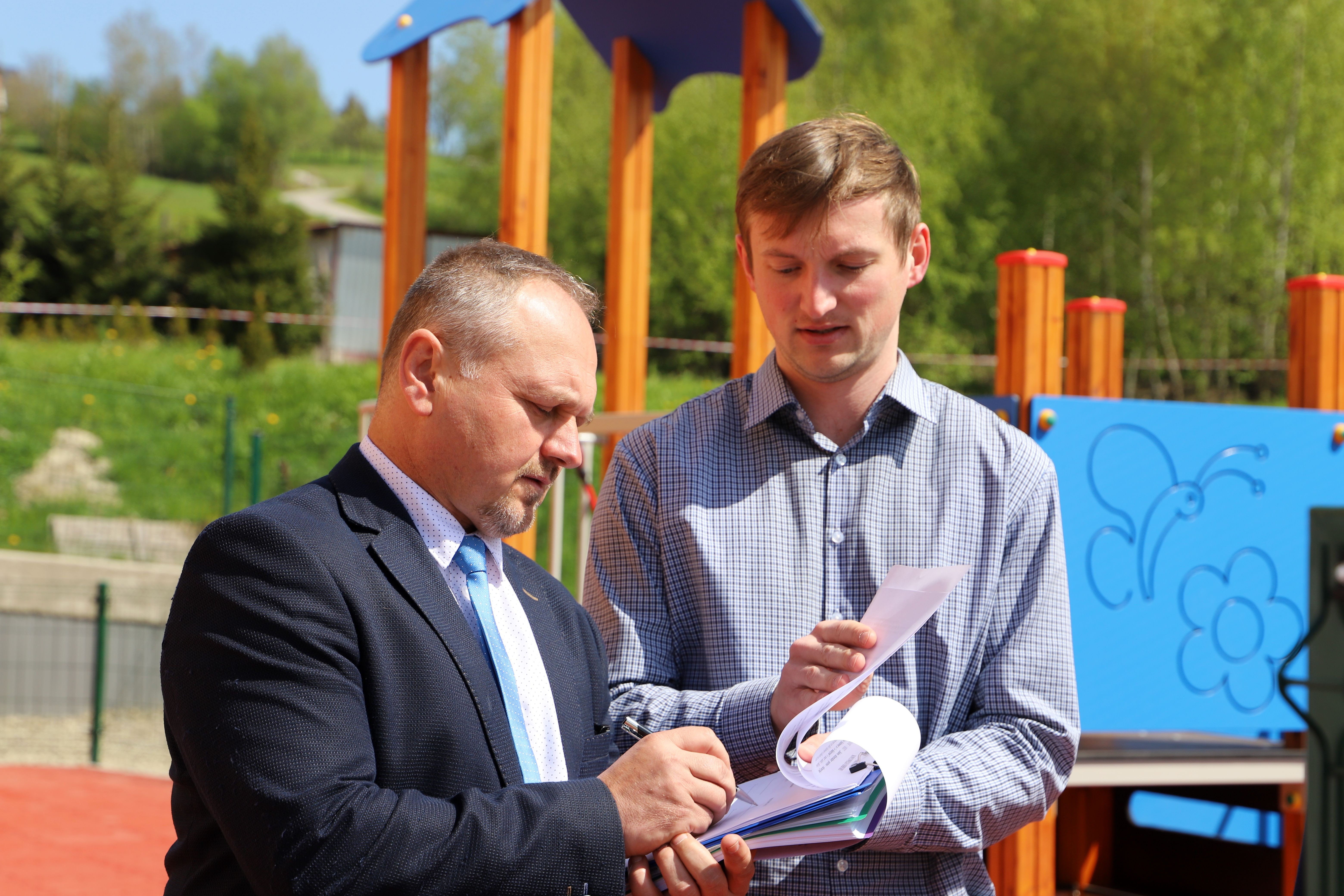 W odbiorze uczestniczyli: Wójt Gminy Limanowa Jan Skrzekut, Zastępca Wójta Gminy Wojciech Pazdan, Dyrektor GZOS Edyta Król, Dyrektor Szkoły Podstawowej nr 1 w Siekierczynie Wiesława Tudaj, sołtys Józef Hutek oraz przedstawiciele Wykonawcy zadania.