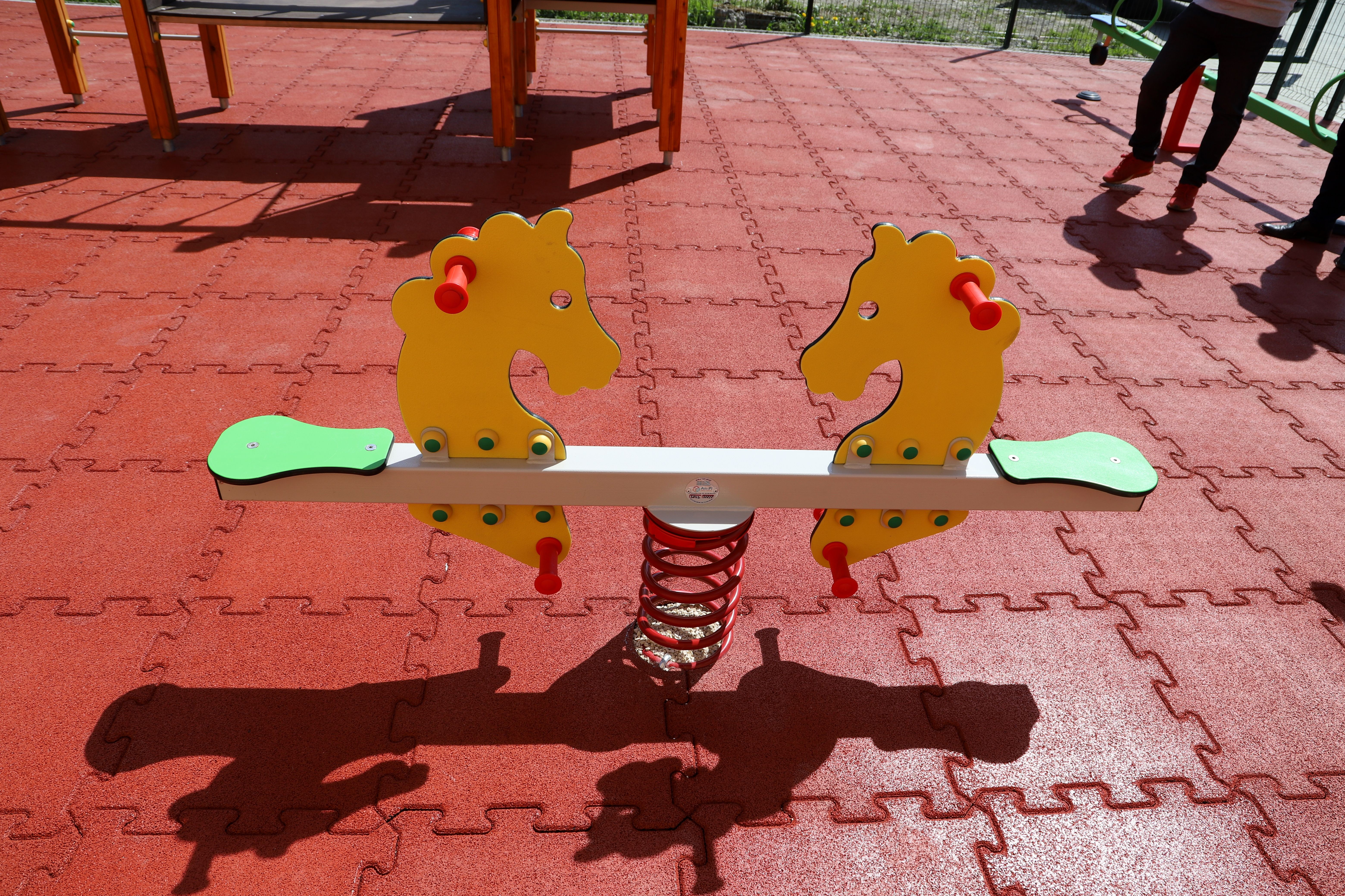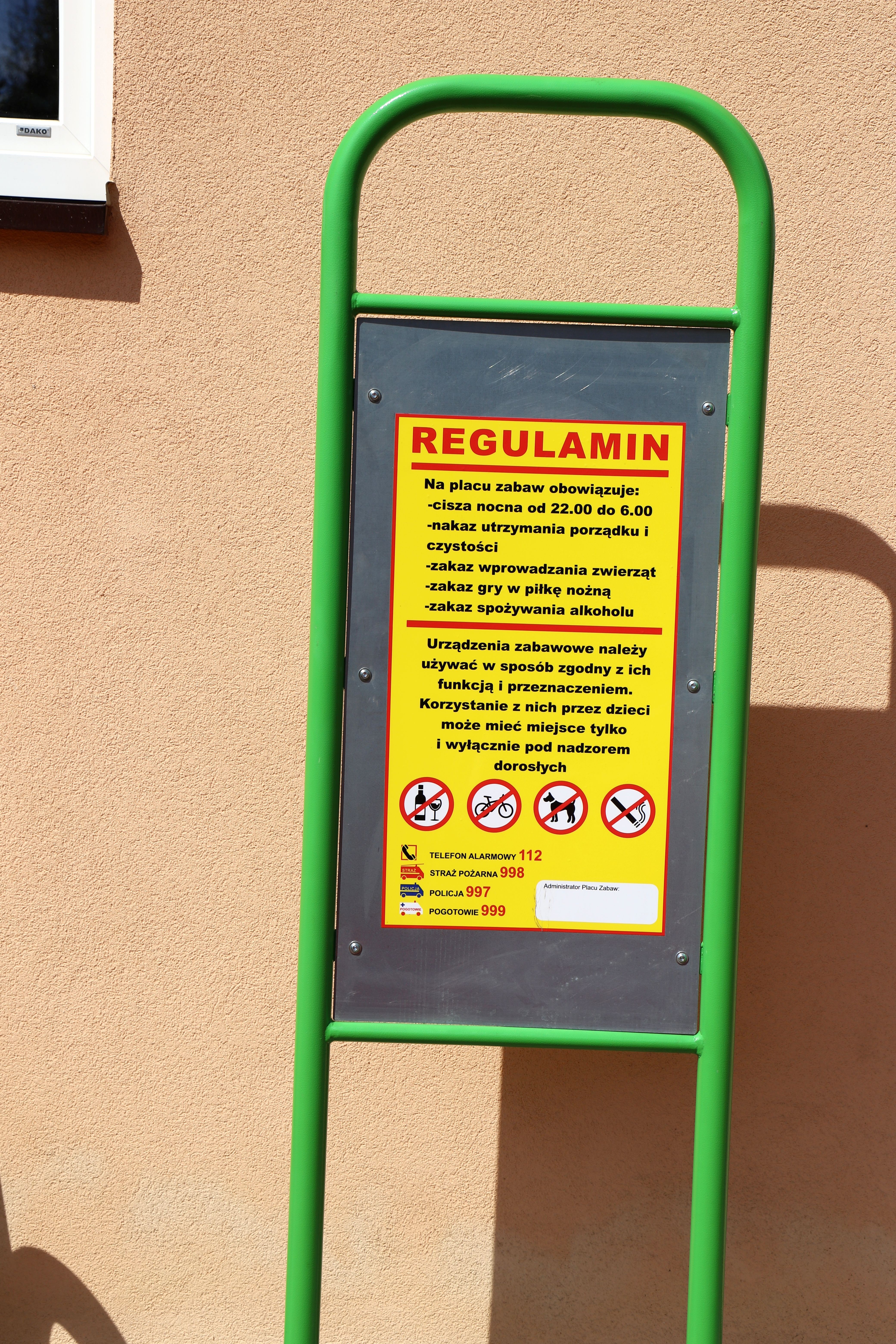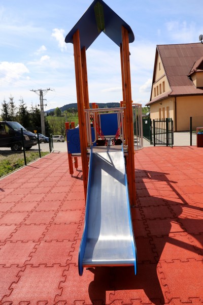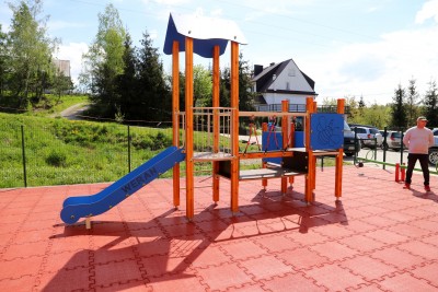 Wykonany plac zabaw został wyposażony w następujące urządzenia: karuzelę tarczową, huśtawkę "Ważkę", zestaw "Wieża", bujaki oraz obiekty małej architektury tj. ławki, tablicę informacyjną. Na istniejącej nawierzchni, wykonano warstwę wyrównawczą z grysu kamiennego, na której położono nawierzchnię bezpieczną typu 'Puzzle" w kolorze czerwonym. Plac zabaw został oddzielony od pozostałej części terenu ogrodzeniem.