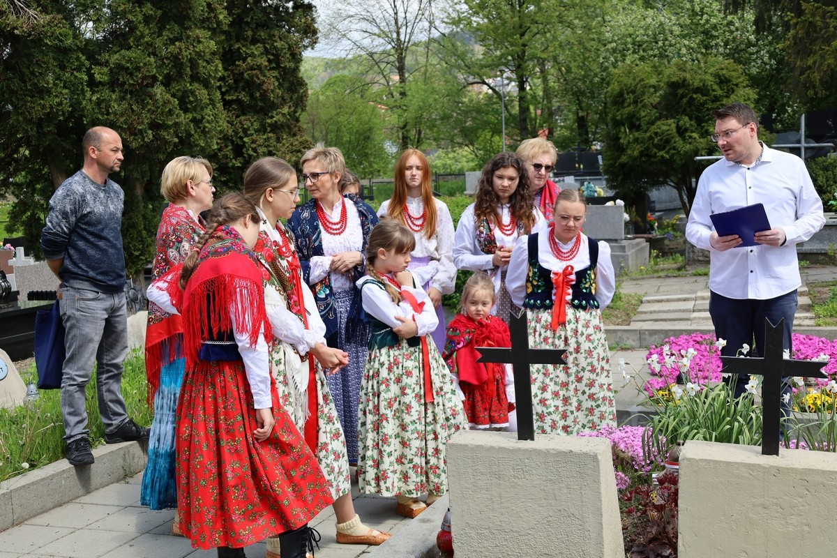 Czerwone Korale odwiedziły, także miejsce spoczynku Wincentego Gawrona na Cmentarzu w Limanowej.