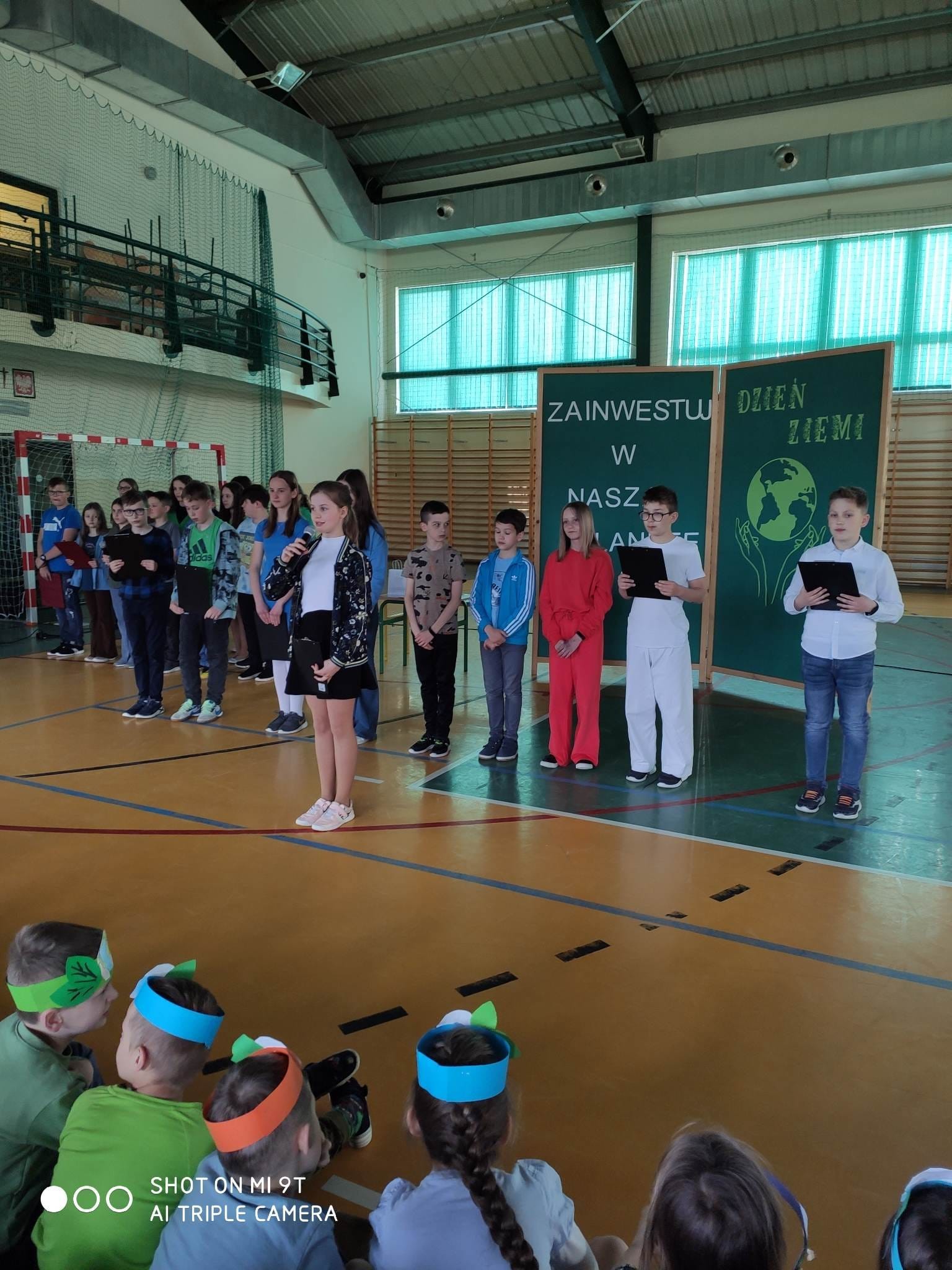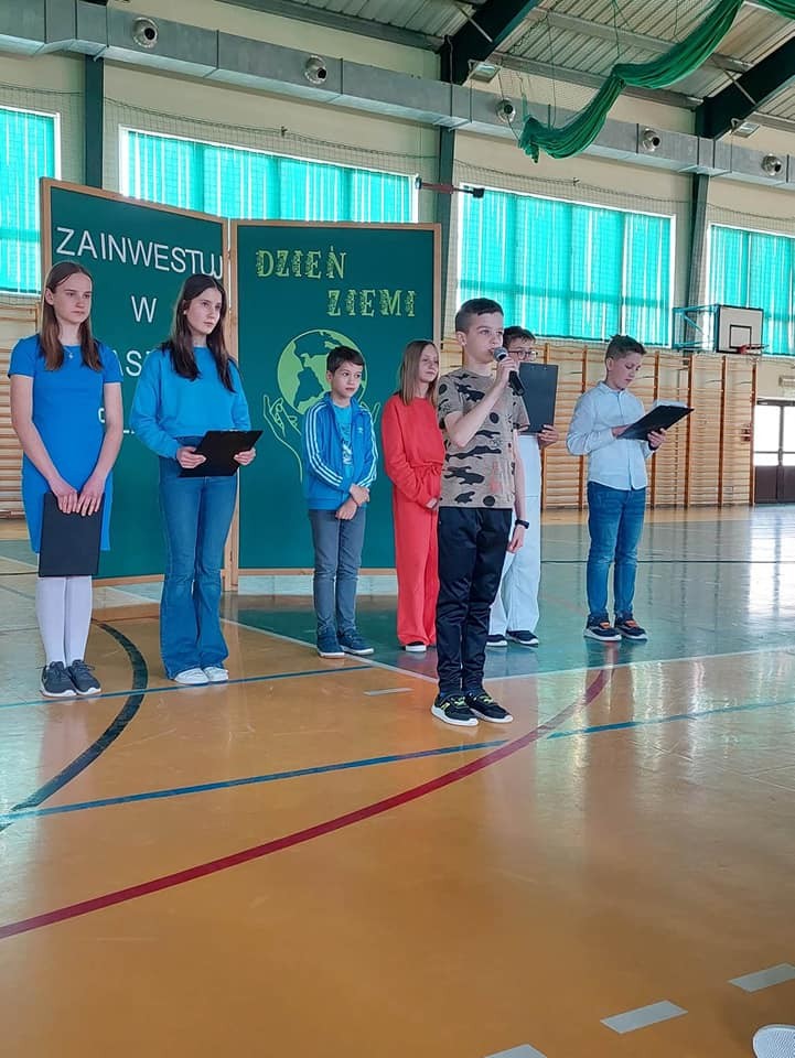 Pamiętaliśmy również o ekologii. W ramach Tygodnia Naukowego odbyła się akademia z okazji Dnia Ziemi. Tegorocznym motywem przewodnim było hasło: „Zainwestuj w naszą planetę”. Uczniowie klasy V b przypomnieli nam, że każdy z nas może dbać o środowisko, a odpowiednimi działaniami, postawami możemy zapobiegać jego zanieczyszczeniu. W tym dniu cała społeczność szkolna ubrana była w kolorach Ziemi (niebieski i zielony).