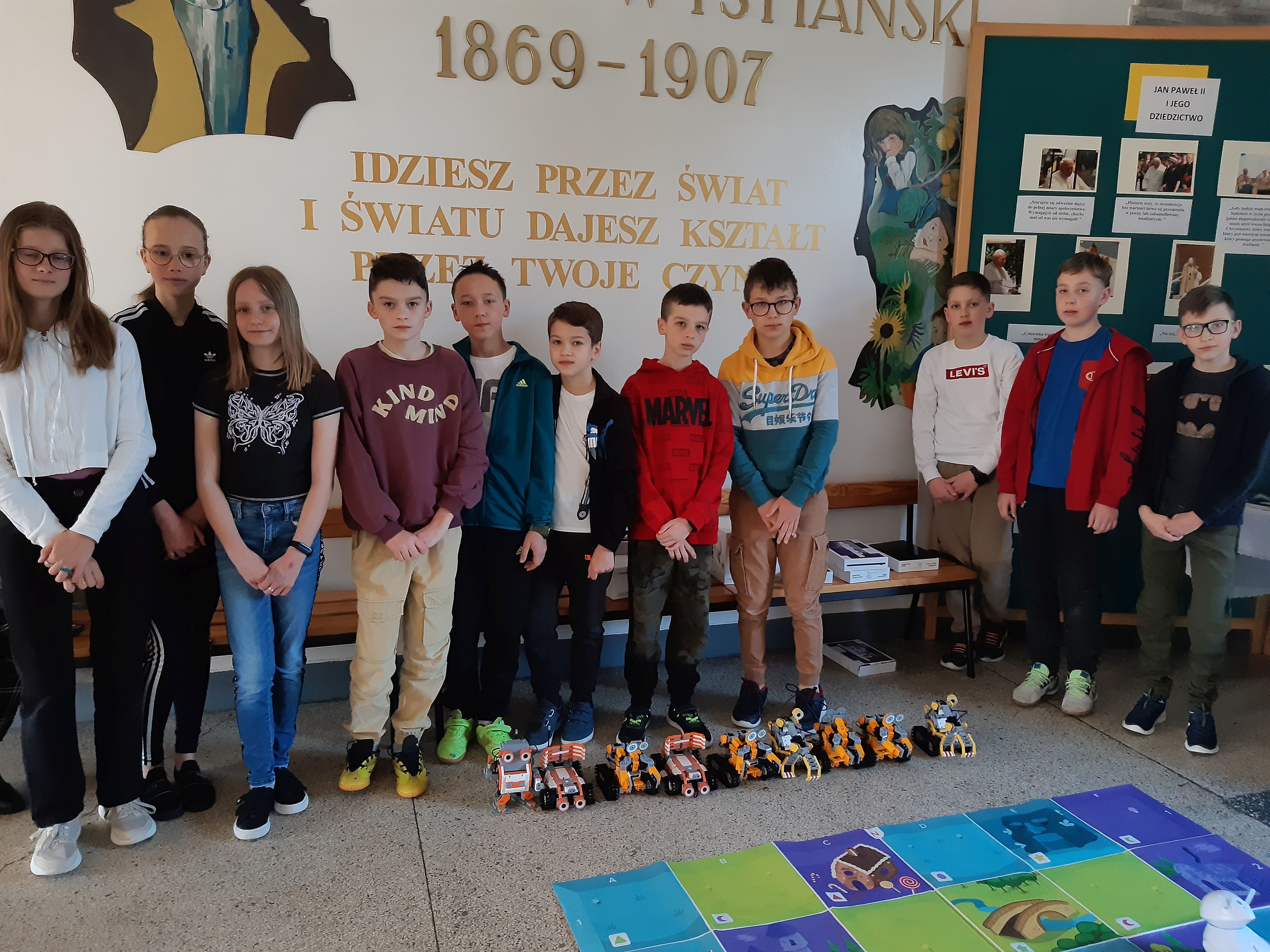 Podczas tego tygodnia nie zabrakło również nowych technologii. Uczniowie klas piątych nauczyli swoich młodszych kolegów z klas trzecich jak sterować robotami. Uczestnicy dowiedzieli się, jak uruchomić aplikację do sterowania robotami oraz jak ją sparować z robotem. Następnie był czas na sterowanie za pomocą prostych komend i zabawę robotami. Część uczniów pod okiem starszych kolegów programowała dla robotów własne ruchy. Zajęcia dostarczyły uczniom wiele frajdy, a także możliwość realizowania własnych pomysłów. Uczniowie klas VIII w ramach zajęć dodatkowych uczyli się podstaw programowania w języku C/C++ na platformie Arduino, dzięki której w łatwy sposób można tworzyć oprogramowania na gotowe systemy. Uczniowie programowali w obrębie grafiki i tworzenia muzyki. Lekcje programowania prowadził z uczniami absolwent naszej szkoły Olaf Ciuła. W tygodniu naukowym częściej wykorzystywano również drukarkę 3D do druku różnych gadżetów i pomocy dydaktycznych. Uczniowie programując rozwijali umiejętność analitycznego i logicznego myślenia, uczyli się współpracy i kreatywności.