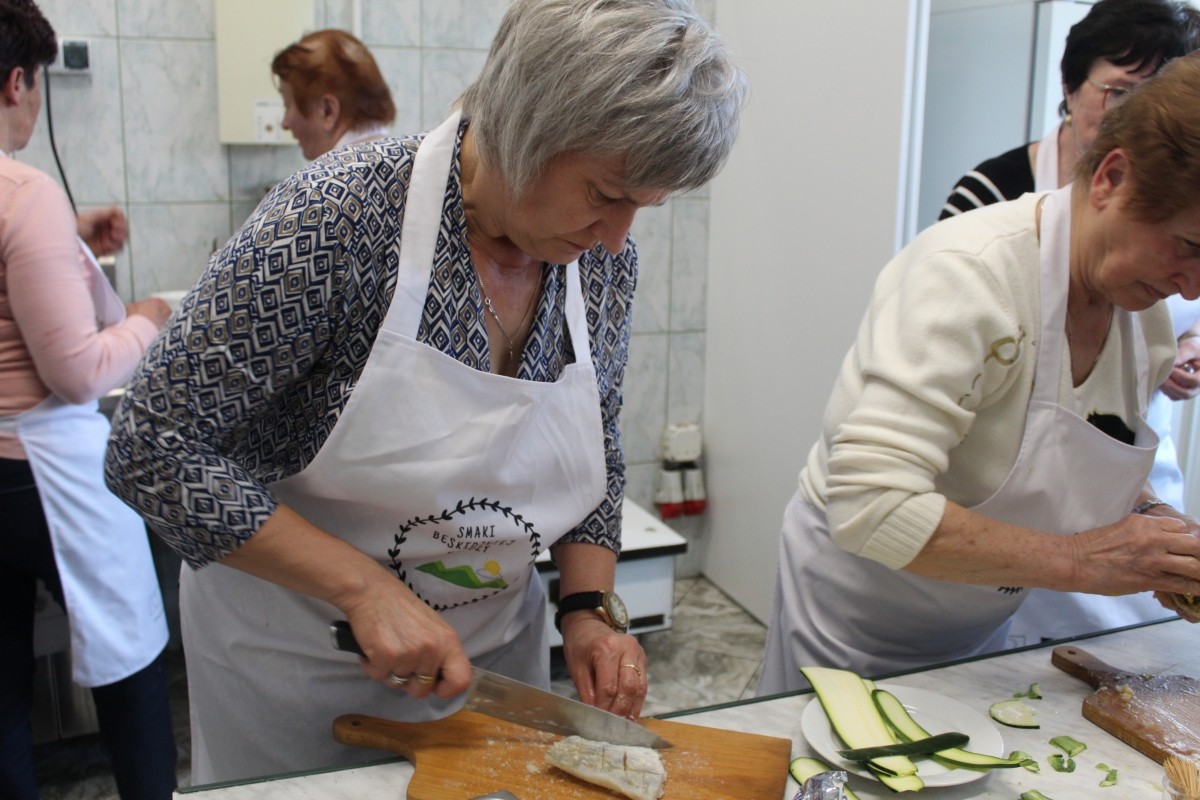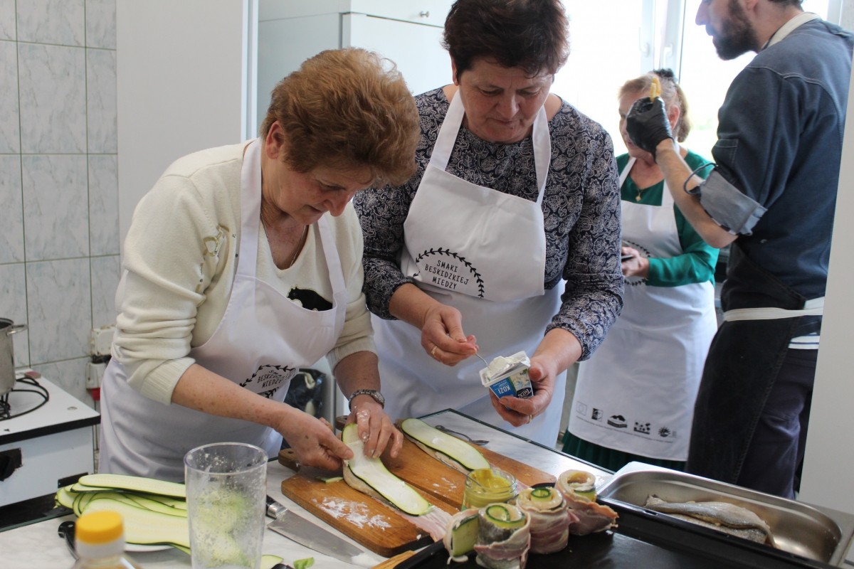Podczas warsztatu uczestnicy mieli możliwość poznania tradycji kulinarnych związanych z tematyką warsztatu, oraz wspólnie z kucharzem przygotowali dania z ryby wraz z dodatkami tj. sandacz w sosie kurkowym, roladka z pstrąga z porem i szpinakiem w śmietance, kasza jaglana, sałatka z selera naciowego z jabłkiem, surówka z białej kapusty, panierowane pieczarki oraz krążki cebulowe.
