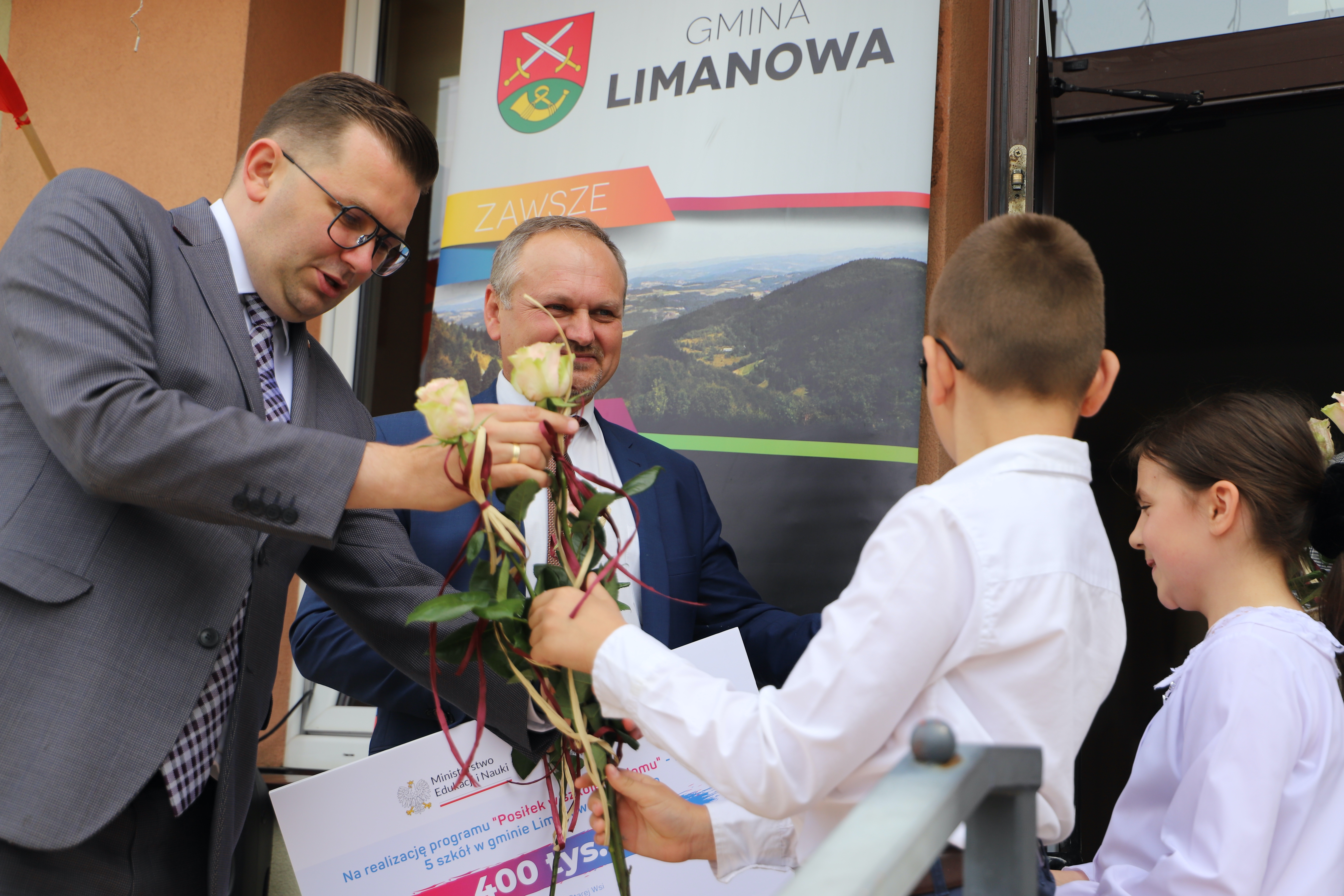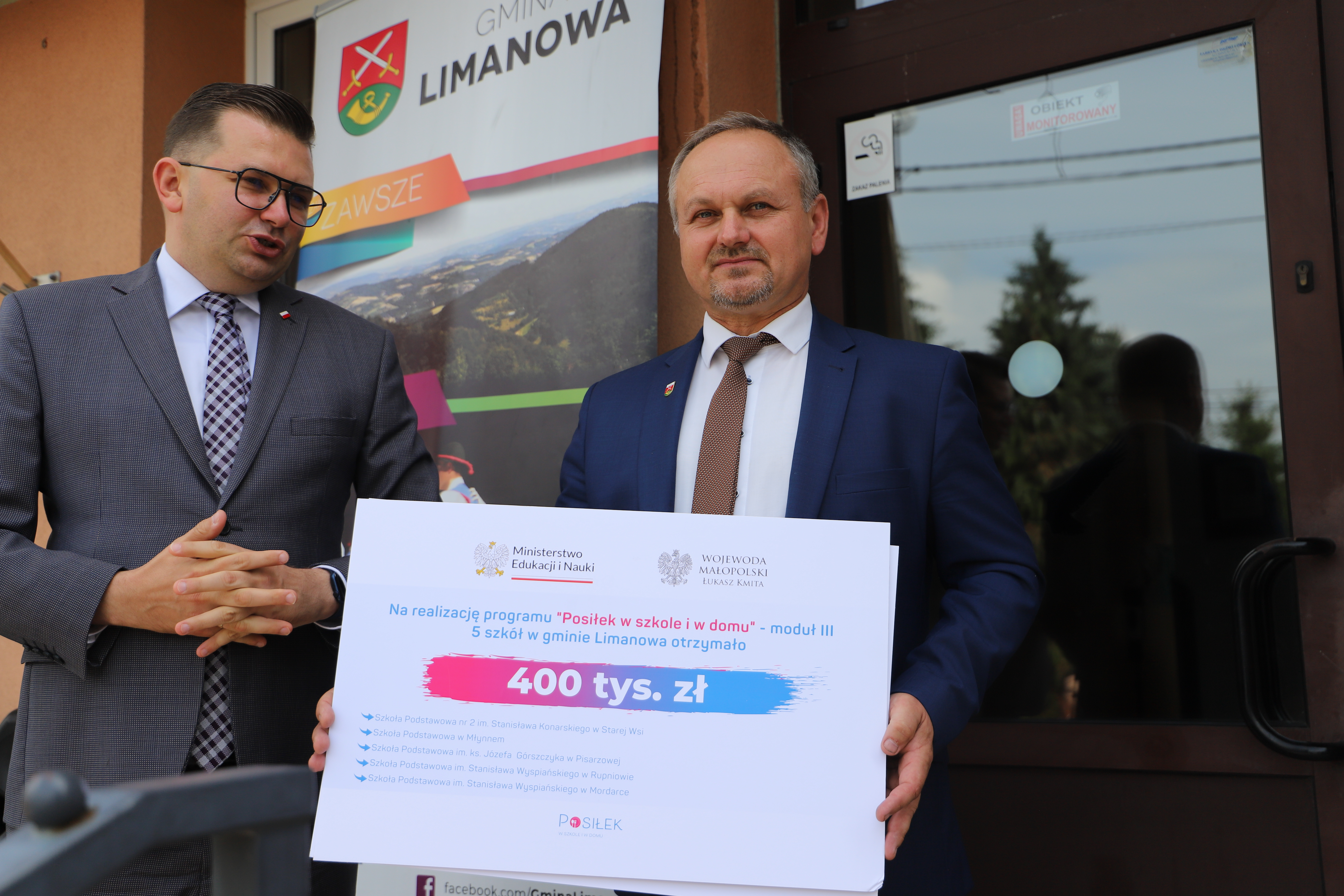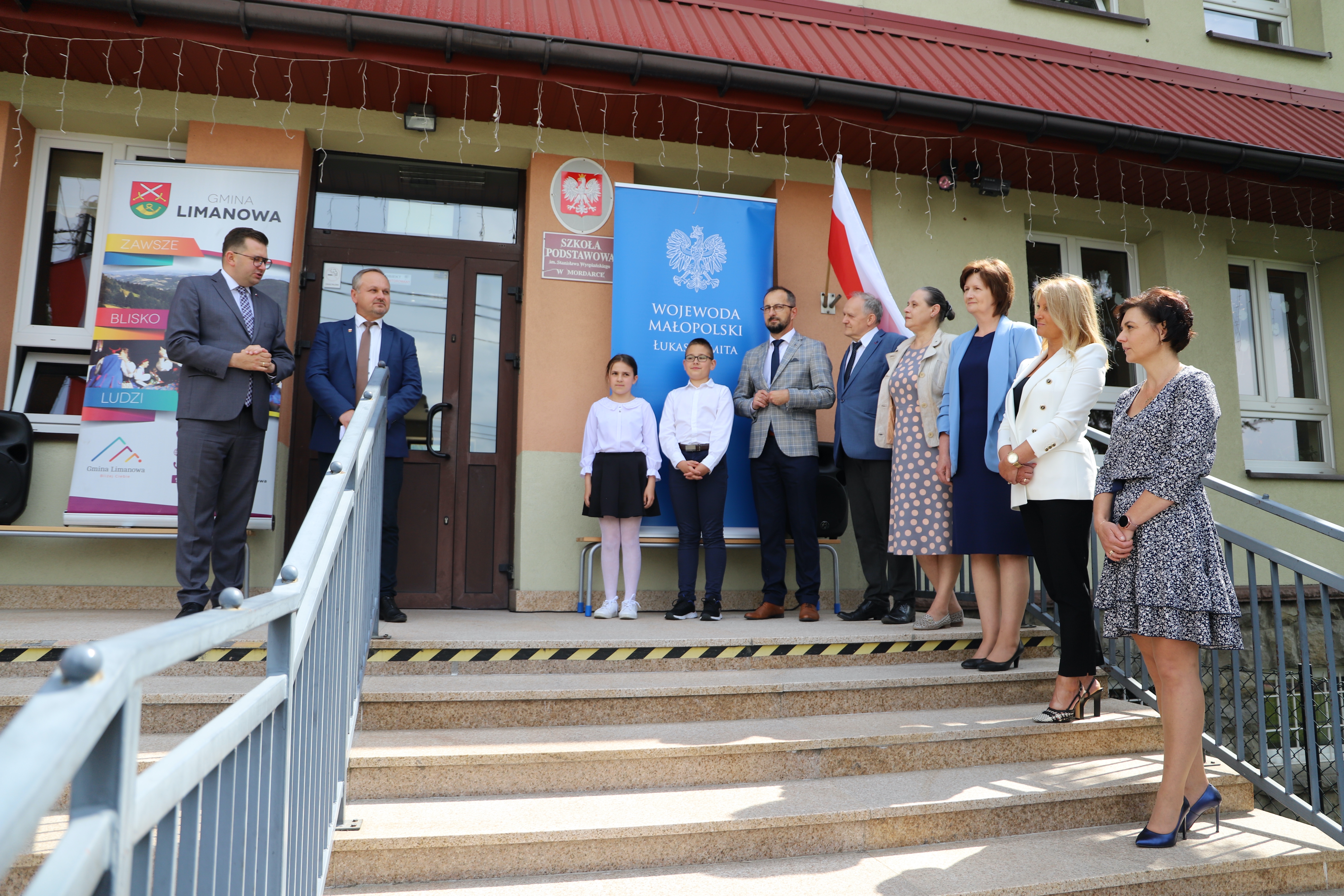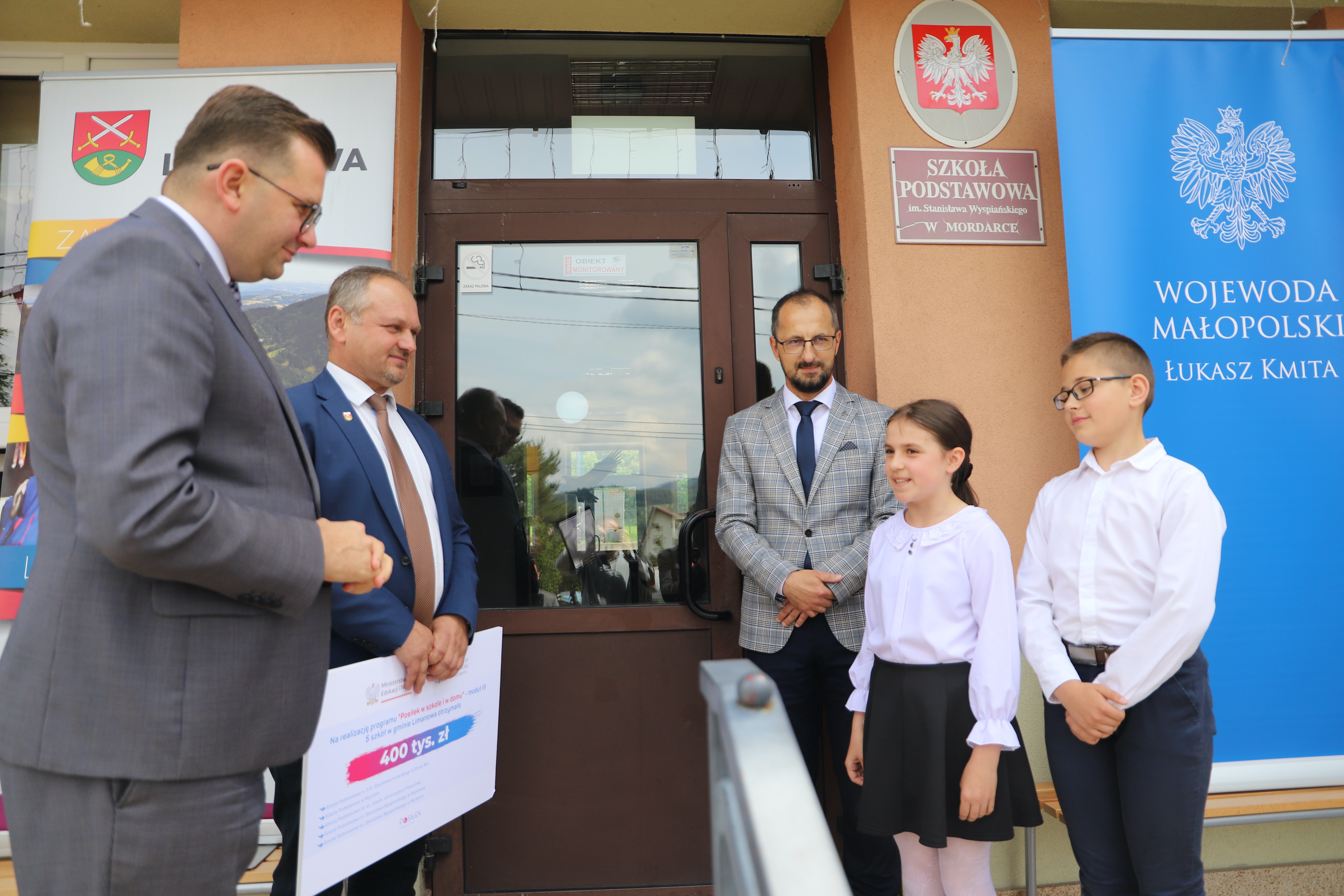 Dzisiaj tj. 16 czerwca 2023r. w Szkole Podstawowej w Mordarce odbyło się uroczyste przekazanie informacji o dofinansowaaniu w ramach programu " Posiłek w szkole i w domu". Gmina Limanowa otrzymała dofinansowanie na pięć złożonych wniosków - 80 tysięcy na każdy. Tę wiadomość przyjechał przekazać osobiście wojewoda małopolski Łuksz Kmita, podkreślając, że to największe dofinansowanie dla jednego samorządu w całej Małopolsce jednocześnie doceniając i komplementując jakość i poprawność złożonych wniosków. Zadowolenie nie mógł kryć wójt gminy Limanowa Jan Skrzekut, który podziękował Dyrektor Gminnego Zespołu Obsługi Szkół Edycie Król za merytoryczne przygotowanie wnisków i wojewodzie za zaangażowanie. Na spotkaniu obecni byli dyrektorzy placówek, które otrzymały dofinansowanie tj. Paweł Ciuła - Szkoła Podstawowa w Mordarce, Renata Długosz -Szkoła Podstawowa w Pisarzowej, Bożena Golonka - Szkoła Podstawowwa w Młynnem, Danuta Dębska - Szkoła Podstawowa w Rupniowie oraz Marek Twaróg - Szkoła Podstawowa nr 2 w Starej Wsi.