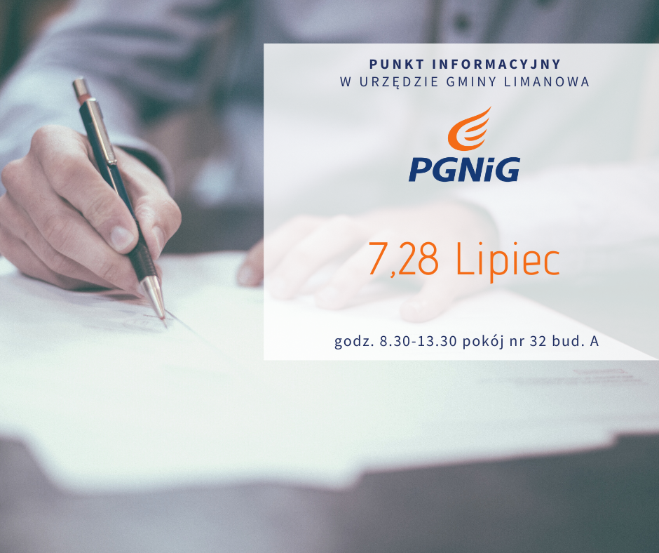 Najbliższy termin dyżuru doradcy PGNiG w Urzędzie Gminy Limanowa, tj. piątek 07 lipiec w godz. 8.30 - 13.30.