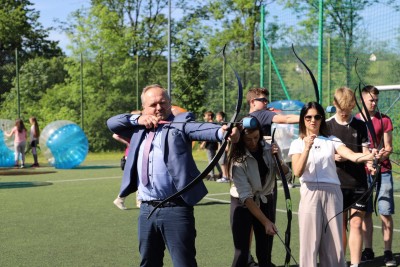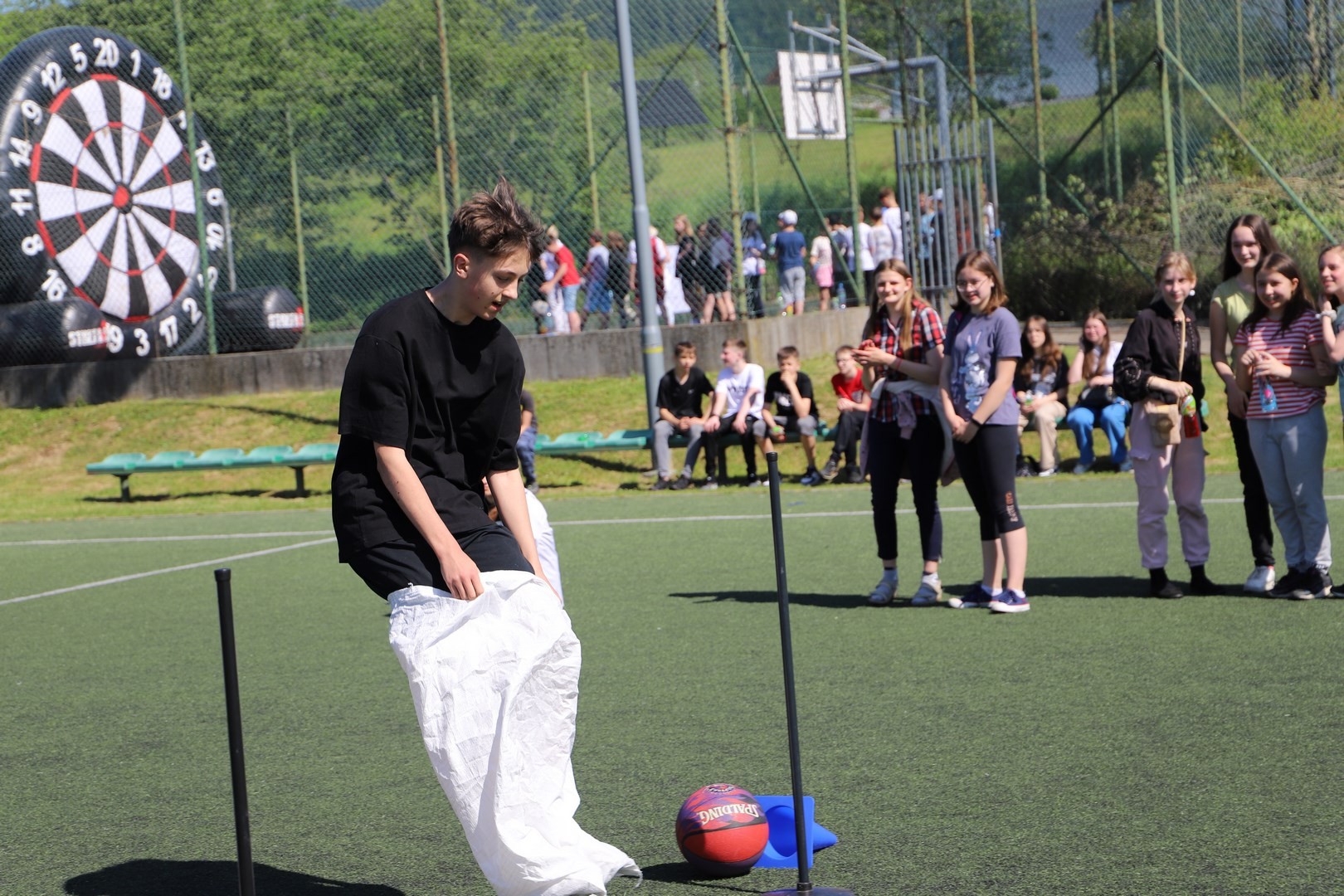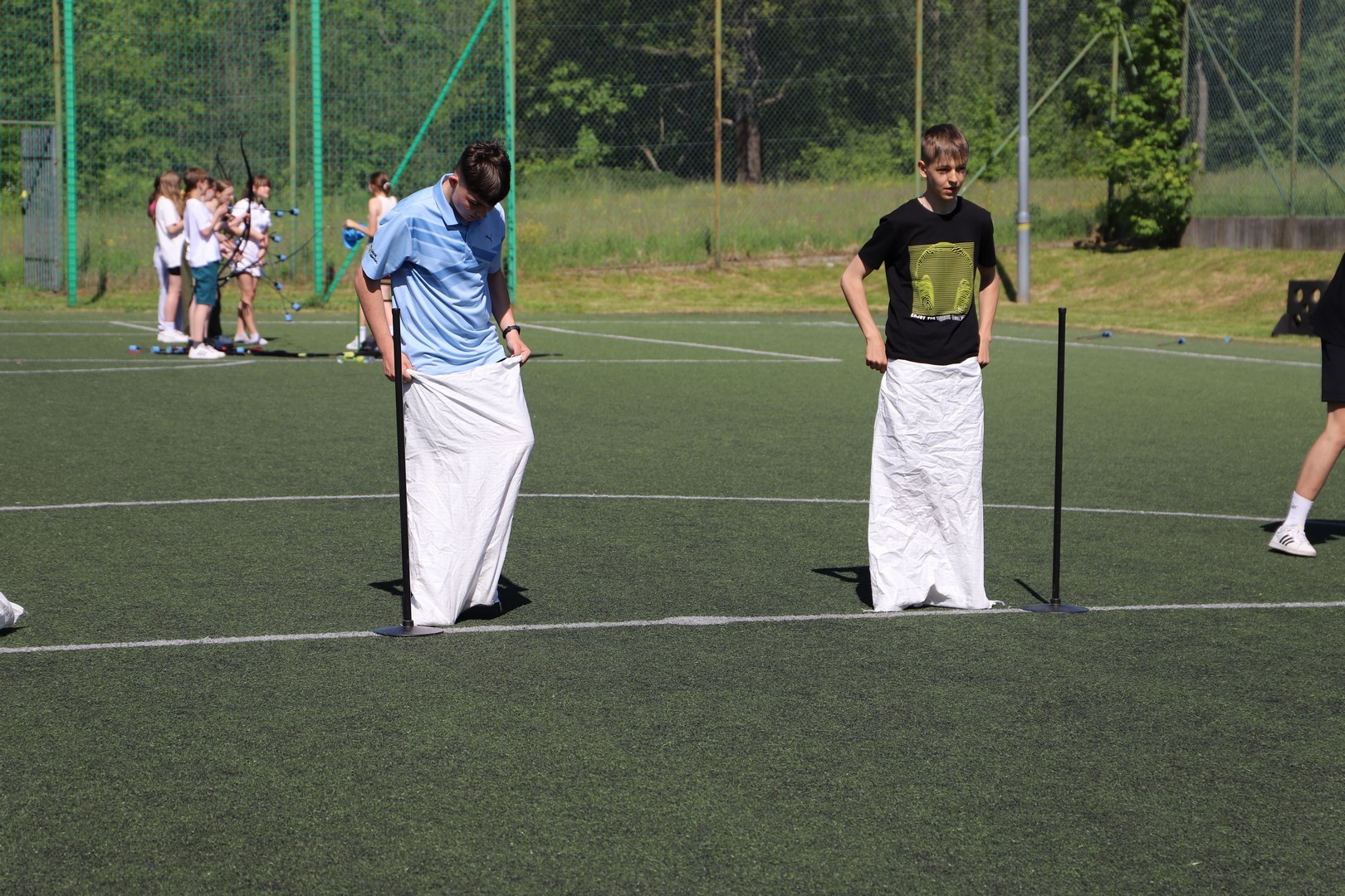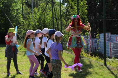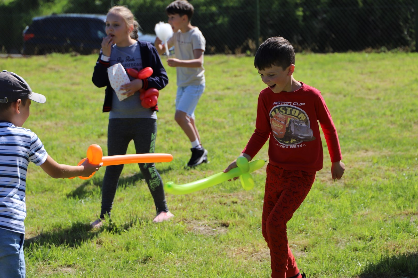 Teren koło orlika przemienił się w fantastyczną krainę zabaw, w której znalazły się dmuchana zjeżdżalnia, gigantyczna tarcza do rzutek, punkt robienia tatuaży wodnych. Dużym zainteresowaniem wśród najmłodszych cieszyły się pokazy prowadzone przez animatorów zabaw (bańki mydlane, baloniki), a wśród starszych wychowanków – rywalizacja łucznicza i zabawy z wykorzystaniem kul.