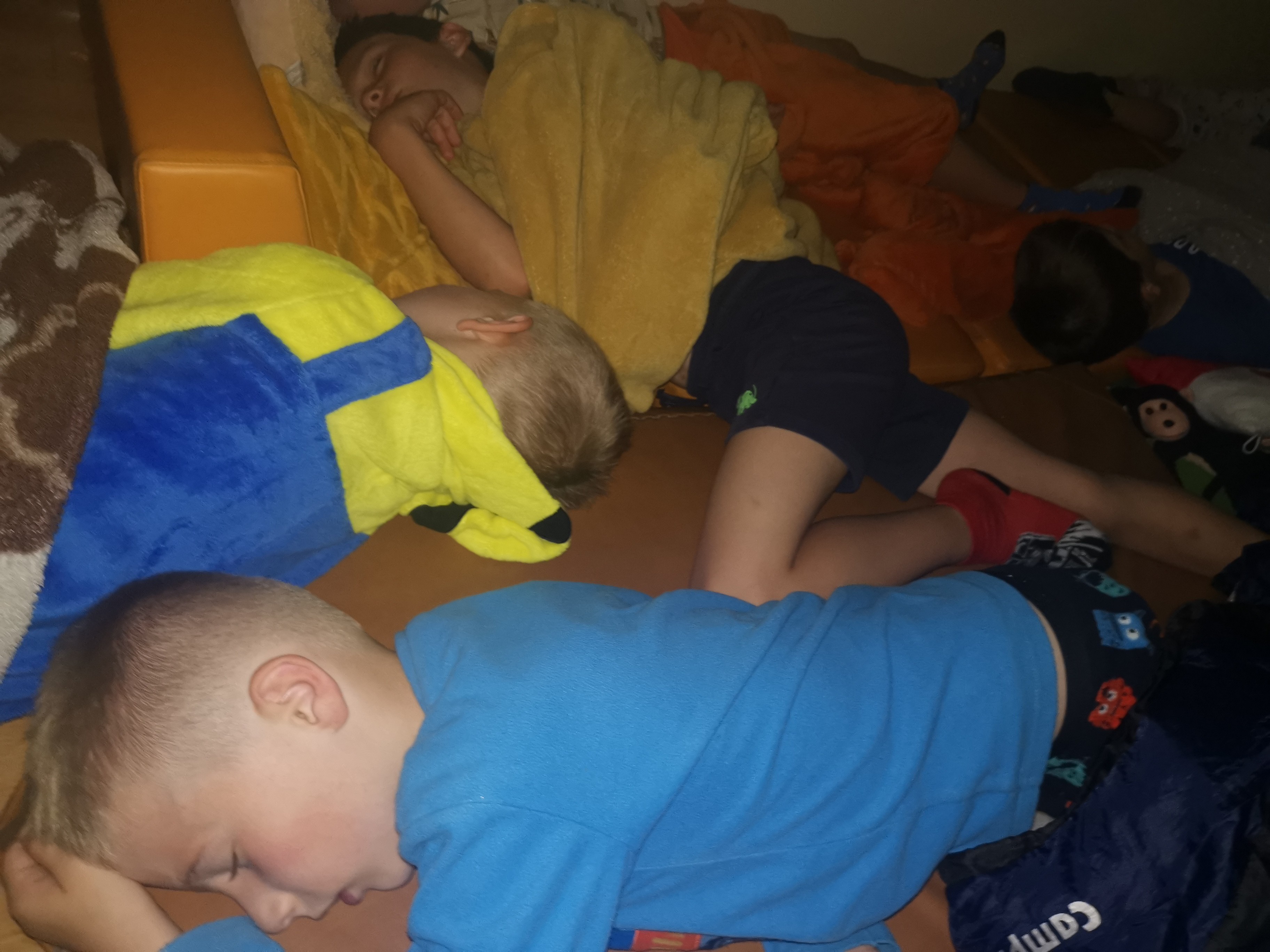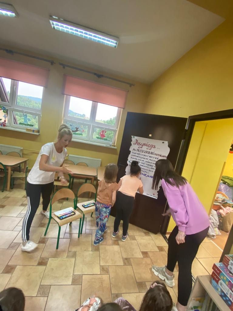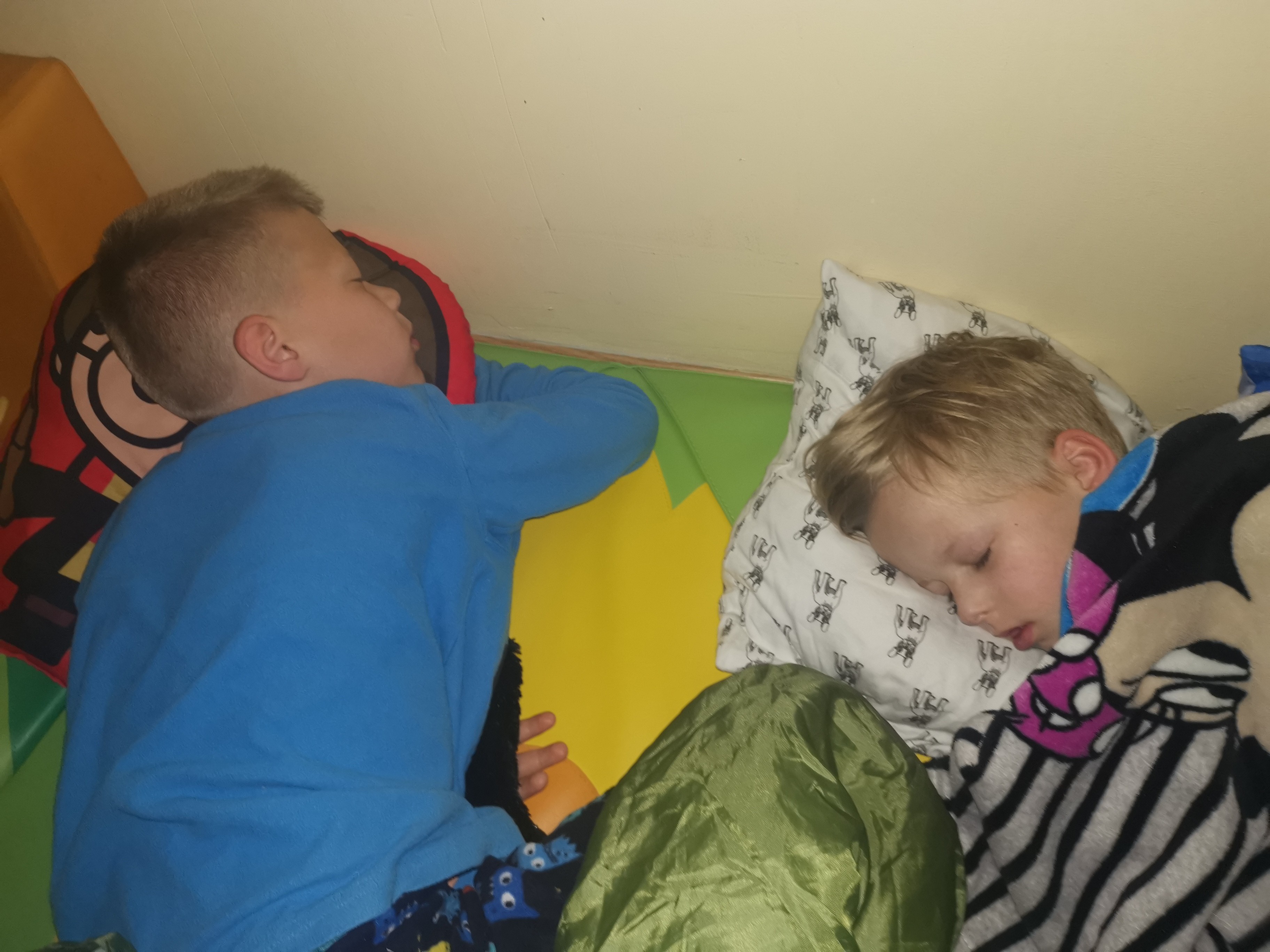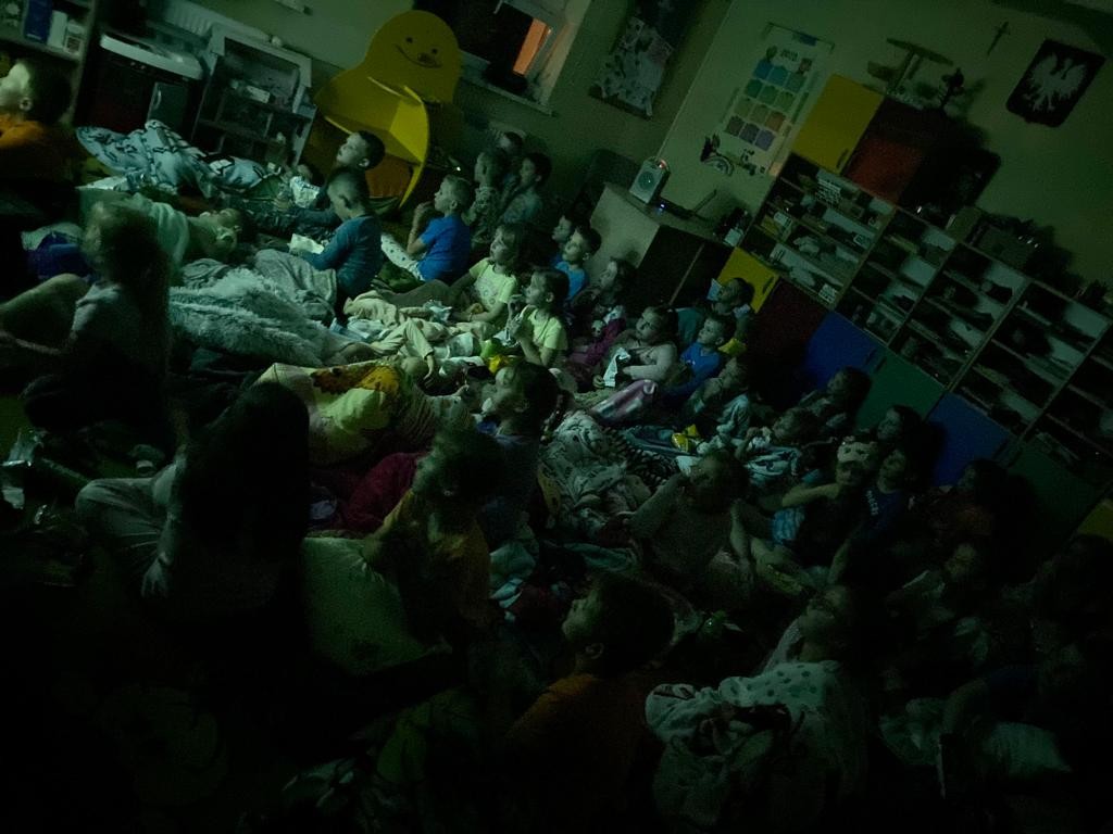 Tak więc nie czekając do końca filmu przedszkolaki rozpoczęły wieczorną toaletę, po czym ułożyły się wygodnie do spania. Ogłoszono ciszę nocną – ciemno wszędzie, głucho wszędzie, co to będzie, co to będzie... Nic nie było! Noc przebiegła bardzo spokojnie. Dzieci pod stałą opieką spały jak susły. Każdy spał rano tak długo jak chciał; nie było tradycyjnej pobudki. Dzieci wstawały według własnego zegara biologicznego, a potem budziły się nawzajem. Gdy wszyscy byli już ubrani, przyszła pora na poranne porządki, odkładanie materacy, składanie koców itp. Została jeszcze chwilka na swobodną zabawę, piękną fryzurę, a później już tylko oczekiwanie na stęsknionych Rodziców .
