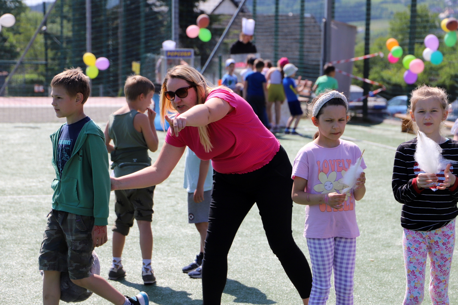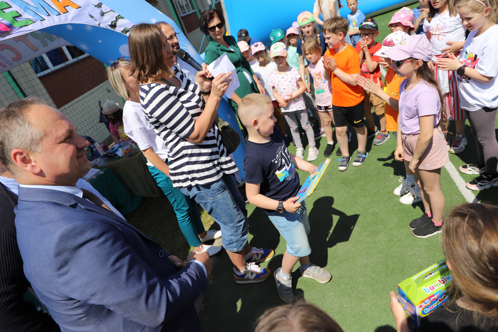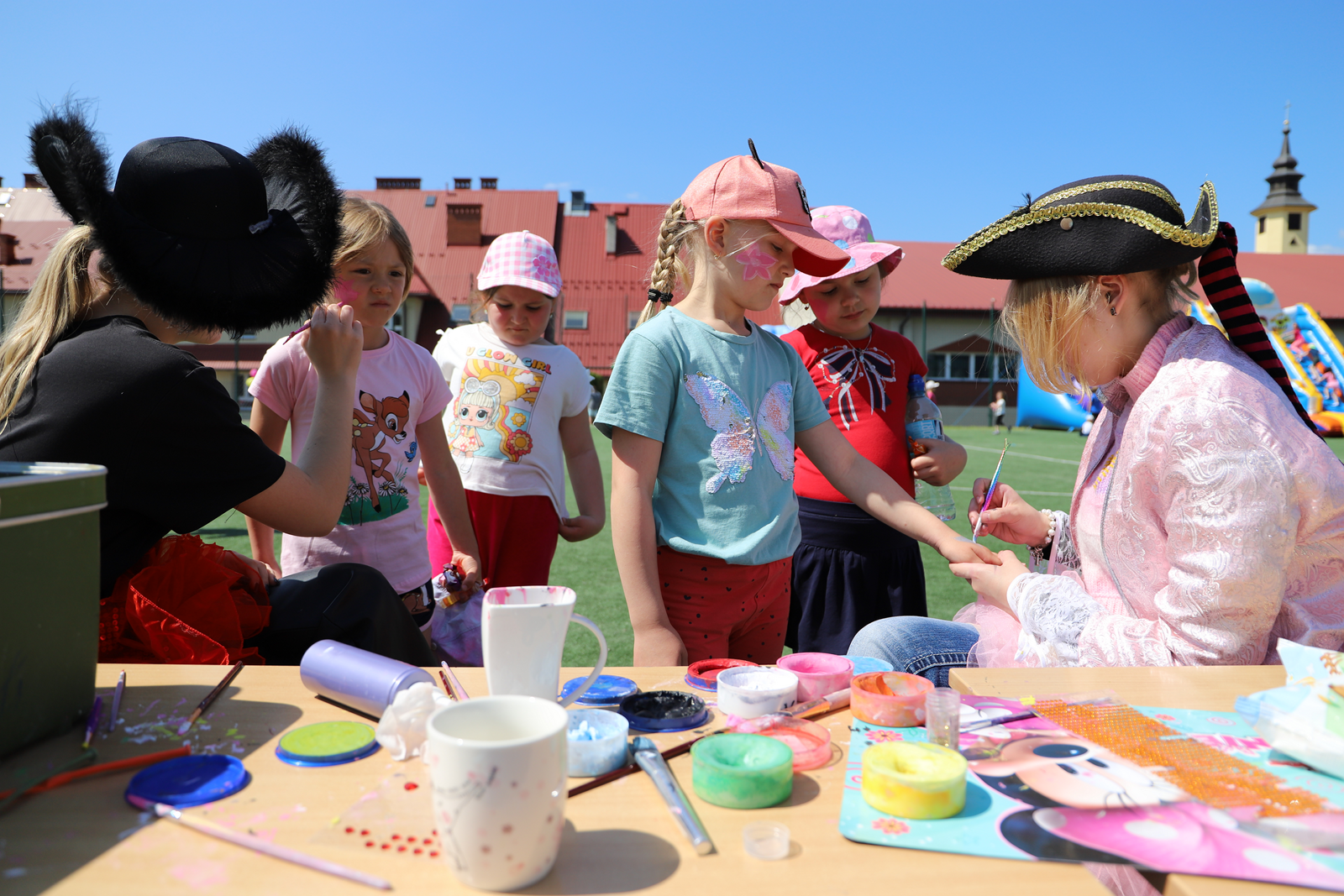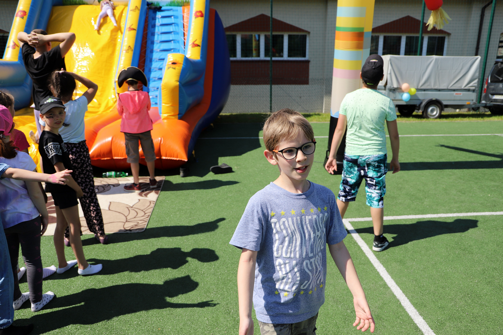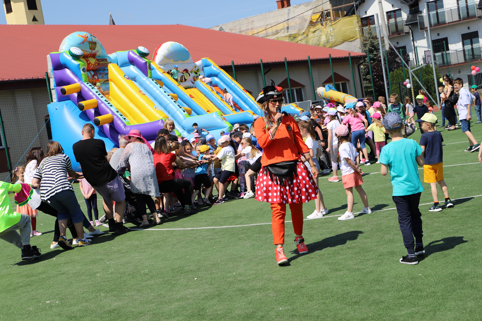 Na wszystkich uczestników czekało wiele niespodzianek, a piękna pogoda sprzyjała wspaniałej zabawie prowadzonej przez animatorów. Plac szkolny wypełniony został licznymi atrakcjami, były to m.in.: dmuchańce, malowanie twarzy, balonowe zoo, gigantyczne bańki mydlane, wata cukrowa i popcorn. Oprócz wyżej wymienionych atrakcji na dzieciaki czekały liczne konkursy z nagrodami oraz loteria upominków dla każdego uczestnika. Nie zabrakło też lodów, soczków, słodkości i kiełbasek z grilla.