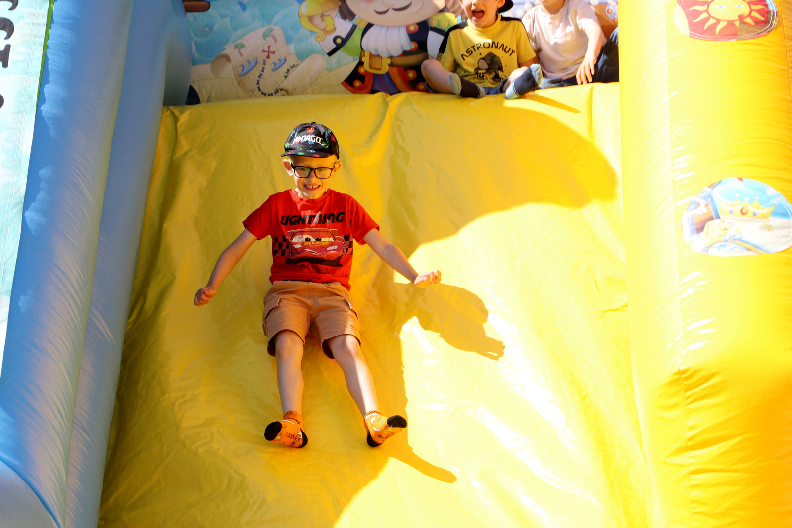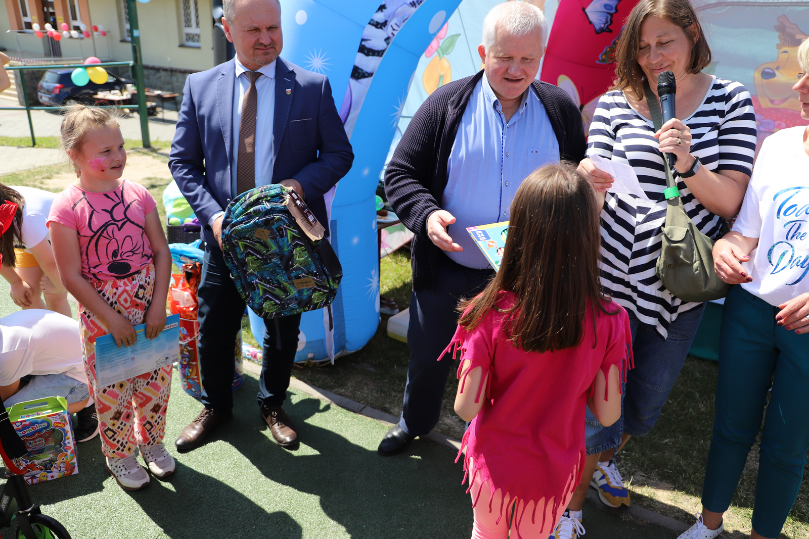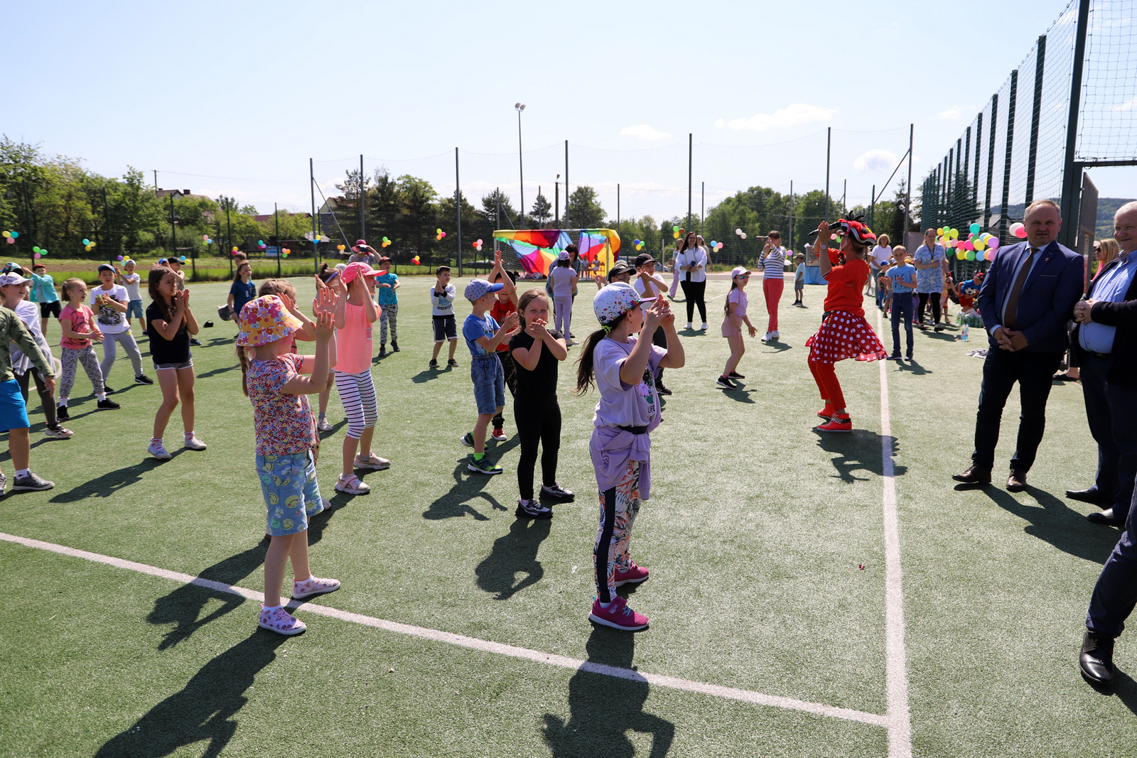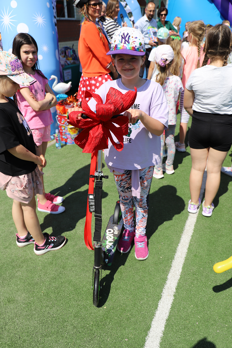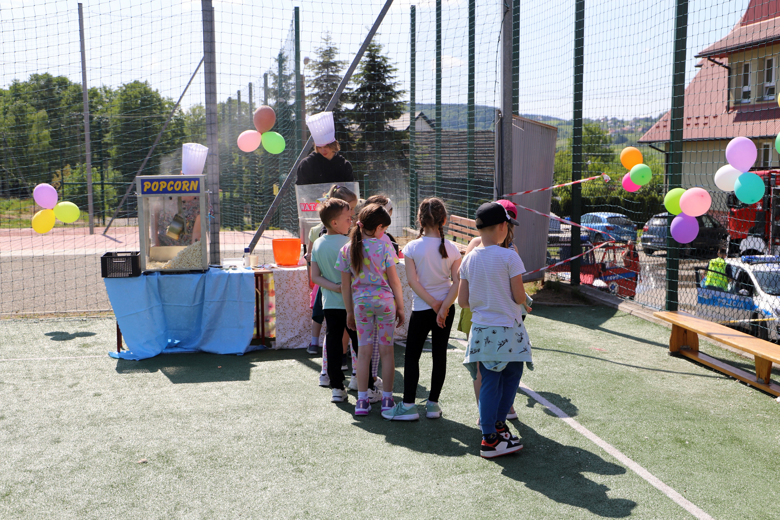 Na wszystkich uczestników czekało wiele niespodzianek, a piękna pogoda sprzyjała wspaniałej zabawie prowadzonej przez animatorów. Plac szkolny wypełniony został licznymi atrakcjami, były to m.in.: dmuchańce, malowanie twarzy, balonowe zoo, gigantyczne bańki mydlane, wata cukrowa i popcorn. Oprócz wyżej wymienionych atrakcji na dzieciaki czekały liczne konkursy z nagrodami oraz loteria upominków dla każdego uczestnika. Nie zabrakło też lodów, soczków, słodkości i kiełbasek z grilla.